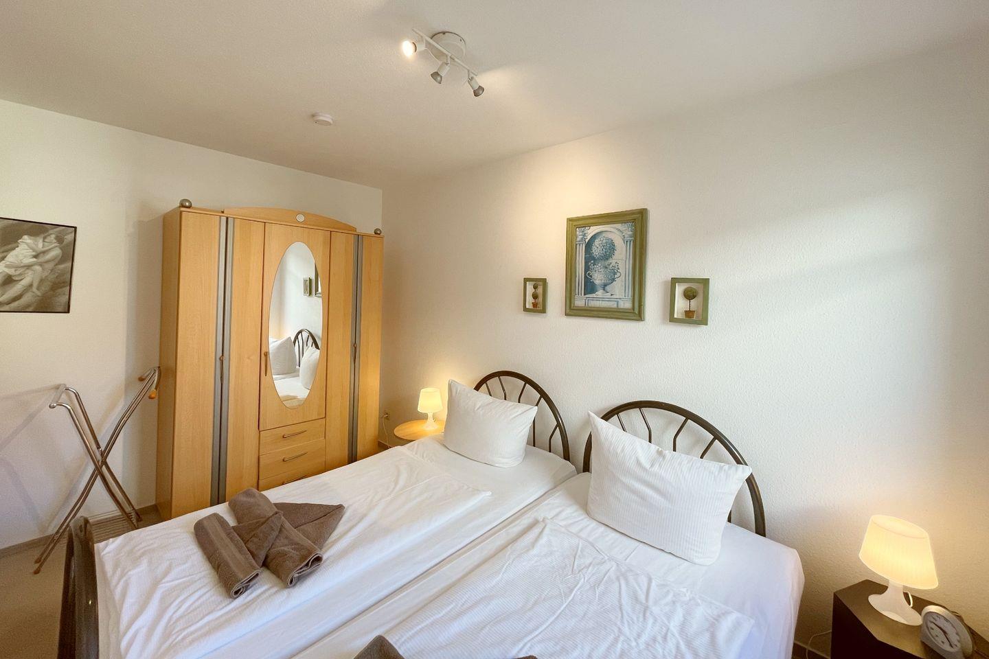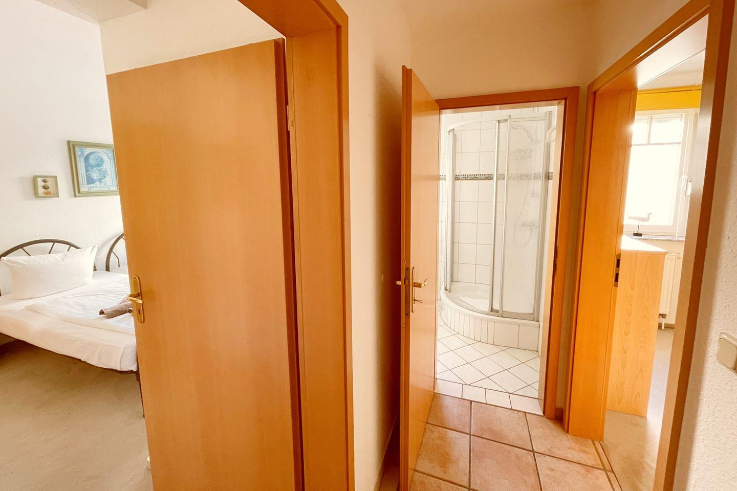 Die Wohnung liegt im ersten Stock eines gepflegten Hauses und ist über einen eigenen Eingang zugänglich. Mit zwei gemütlichen Schlafzimmern bietet sie ausreichend Raum für eine entspannte Nachtruhe. Das Badezimmer ist mit einer Dusche ausgestattet.