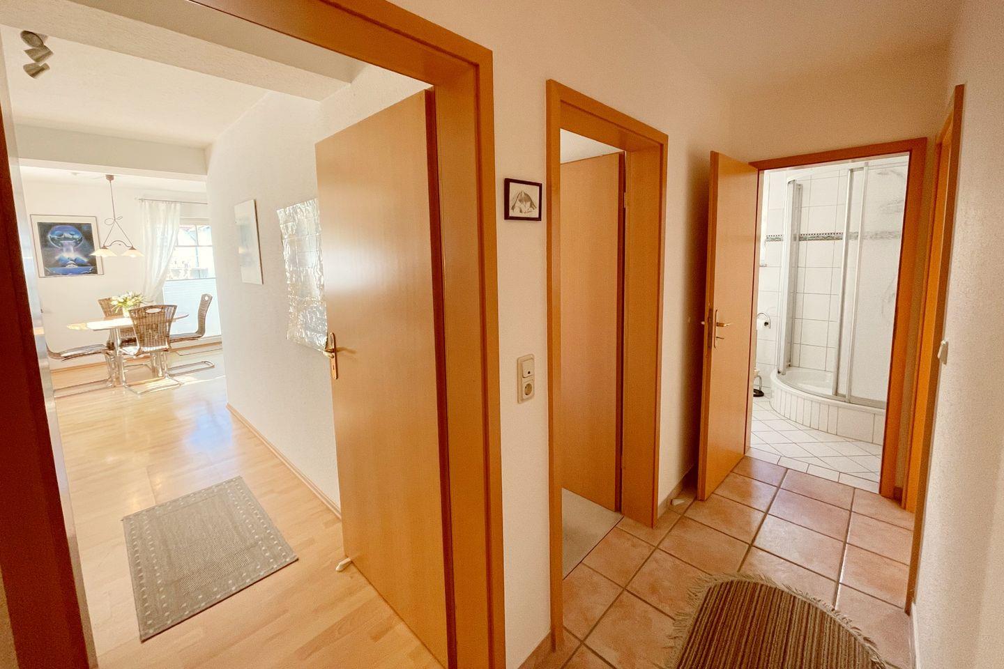 Ein absolutes Highlight der Wohnung ist der Balkon, von dem aus Sie den Blick in den Garten genießen können. Die ruhige Lage ermuntert zu entspannten Stunden im Freien, während die kinderfreundlichen Einrichtungen der Wohnung sicherstellen, dass sich auch die kleinen Gäste wohlfühlen. Hier kann gespielt, gelacht und die frische Luft genossen werden.