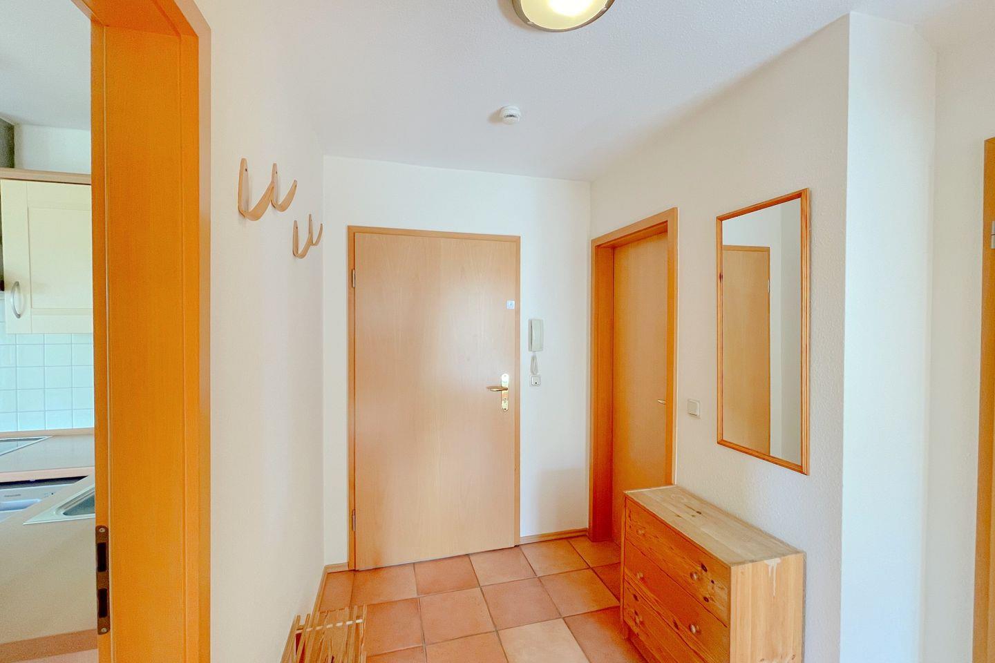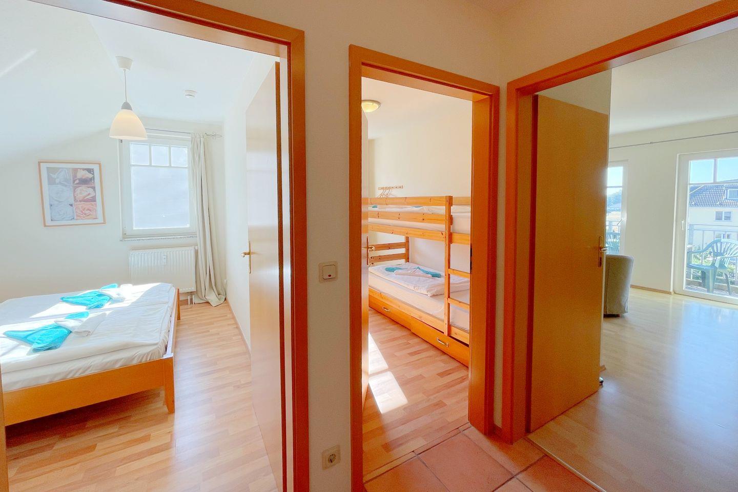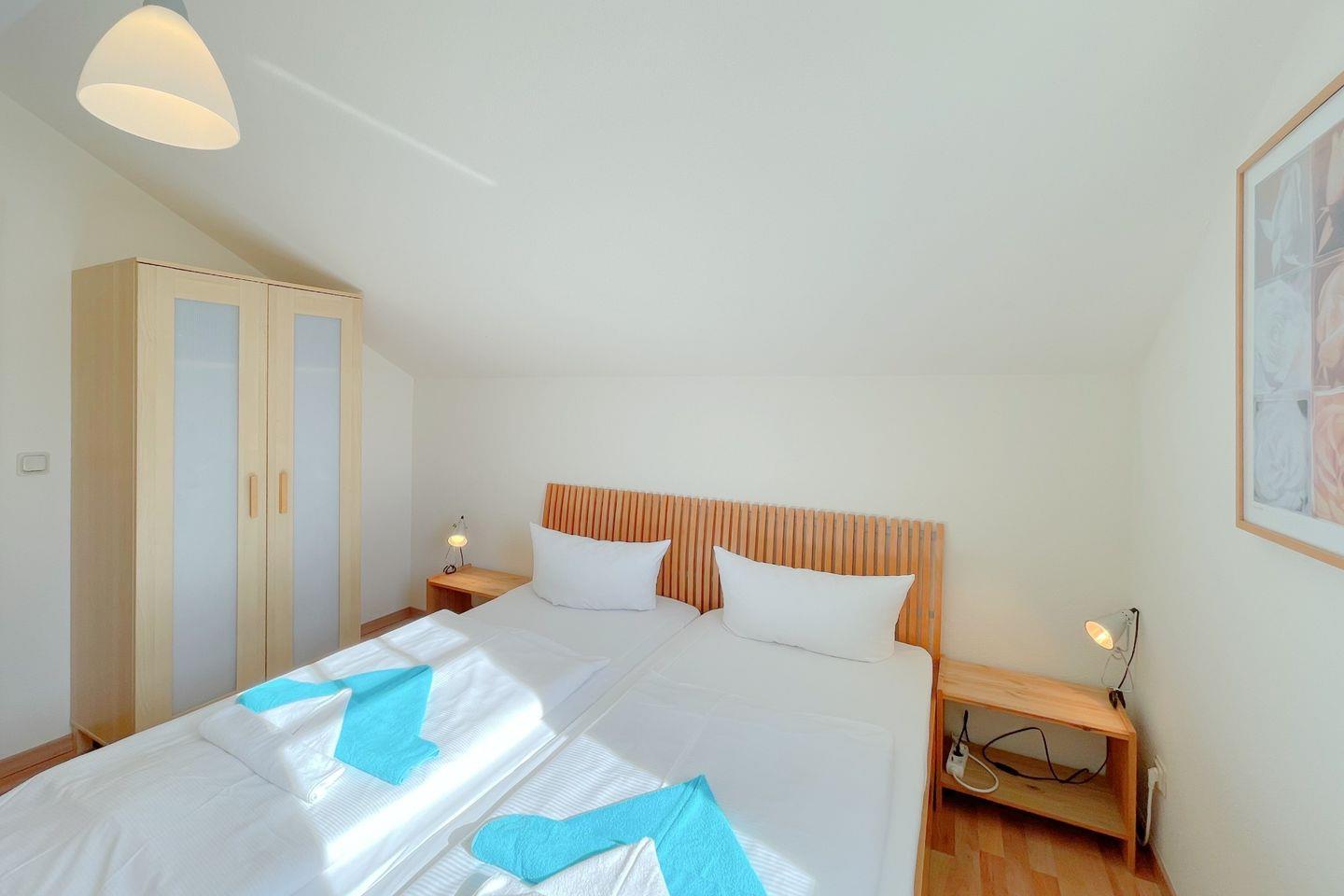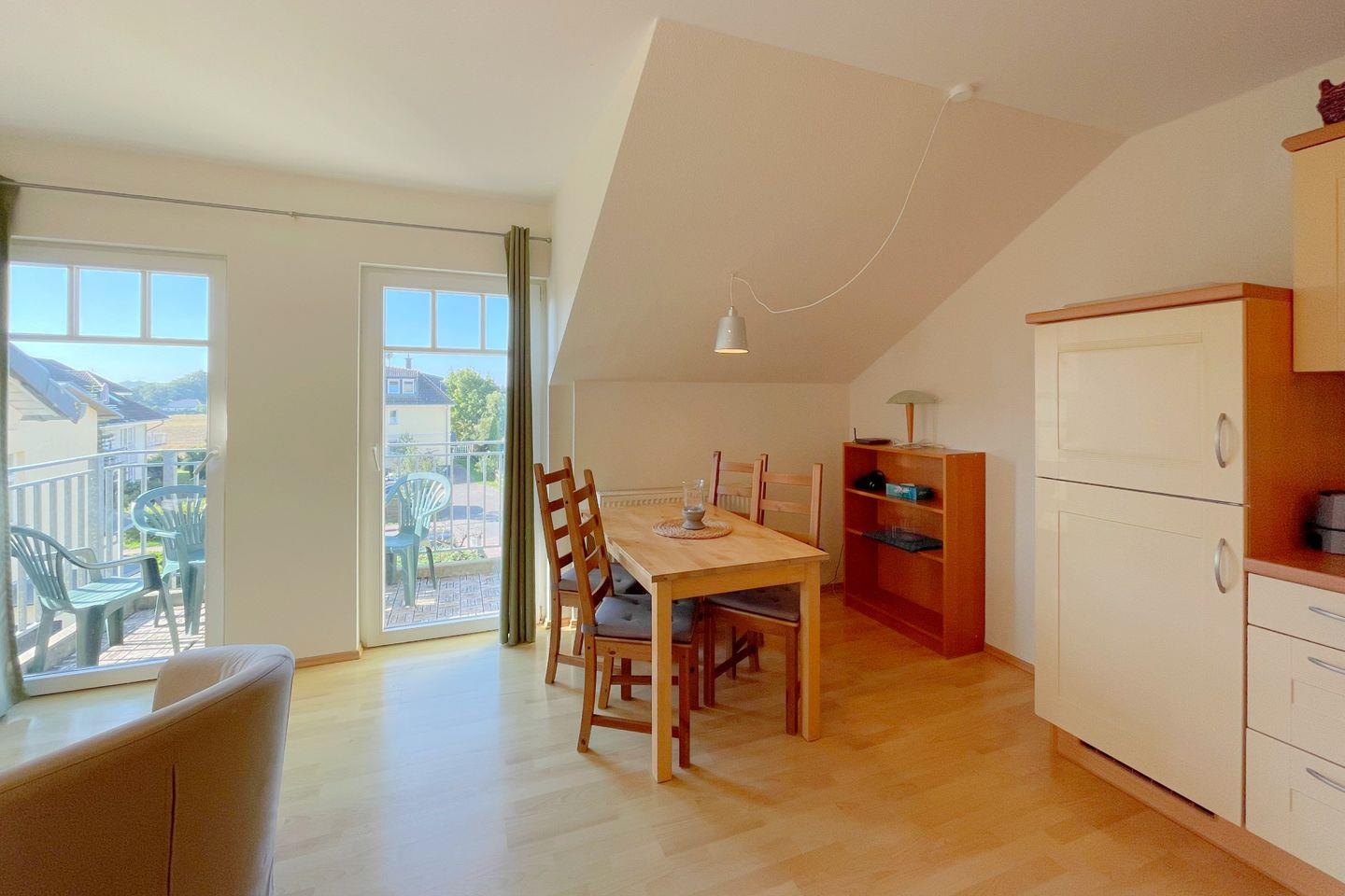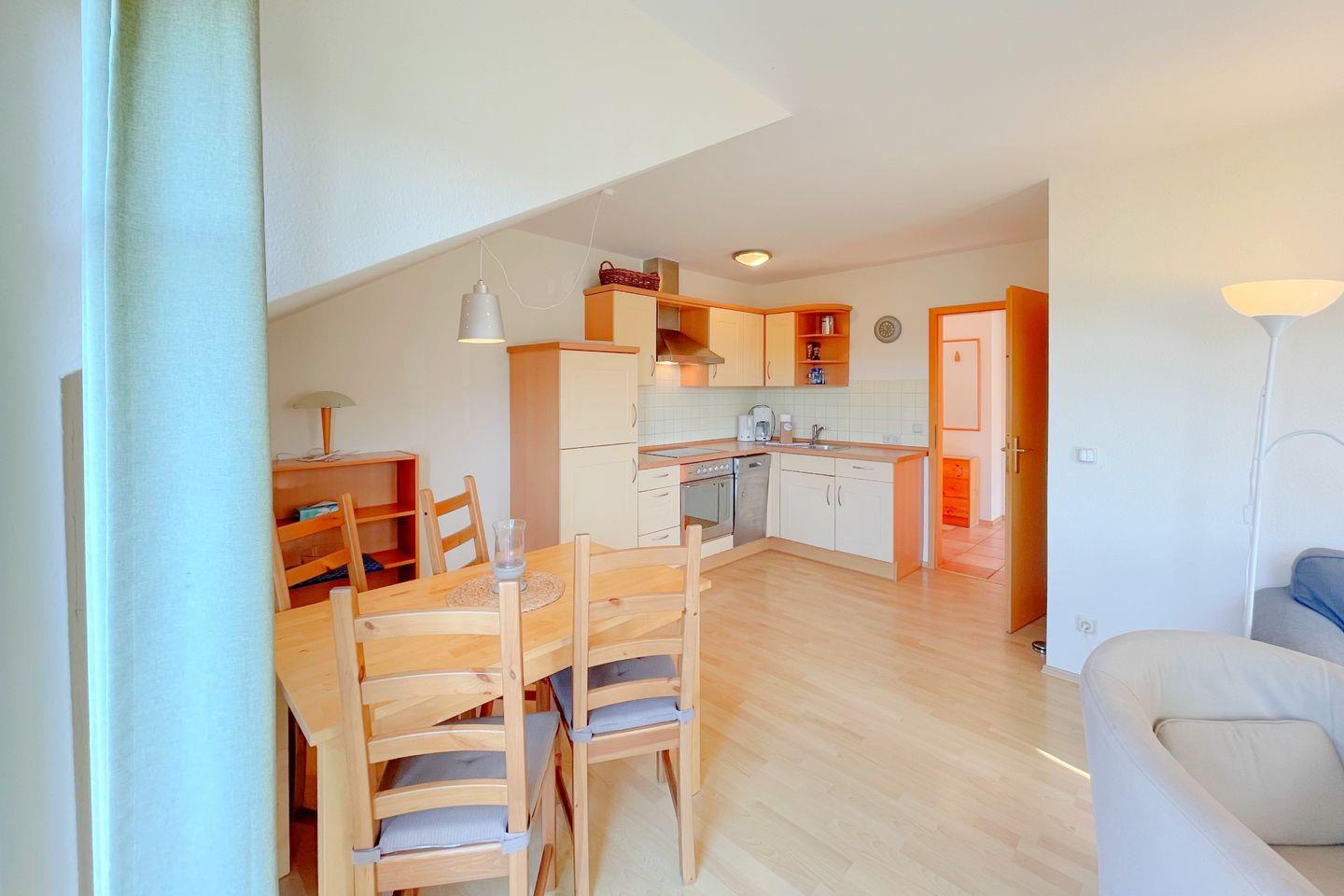Die Wohnung besticht durch eine moderne und gemütliche Einrichtung, die sowohl Komfort als auch Funktionalität vereint. Sie verfügt über zwei einladende Schlafzimmer, in denen Sie nach einem erlebnisreichen Tag erholsamen Schlaf finden können. Das lichtdurchflutete Wohnzimmer ist der perfekte Ort, um nach einem langen Strandtag zu entspannen. Es lädt mit einer bequemen Sofaecke zu geselligen Abenden ein, während Sie den digitalen TV-Anschluss für unterhaltsame Filmabende nutzen können.