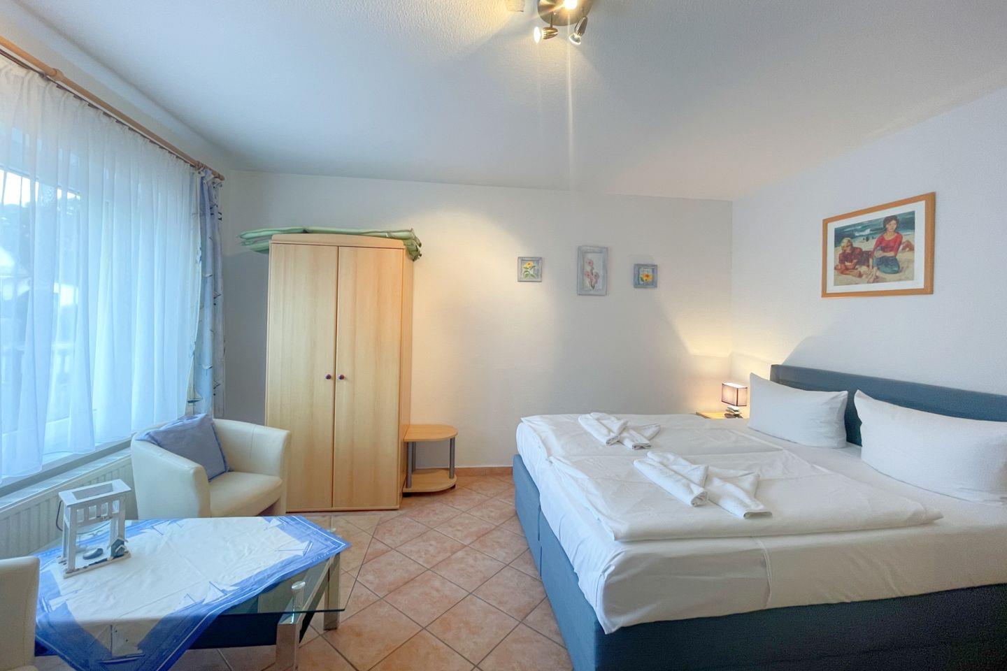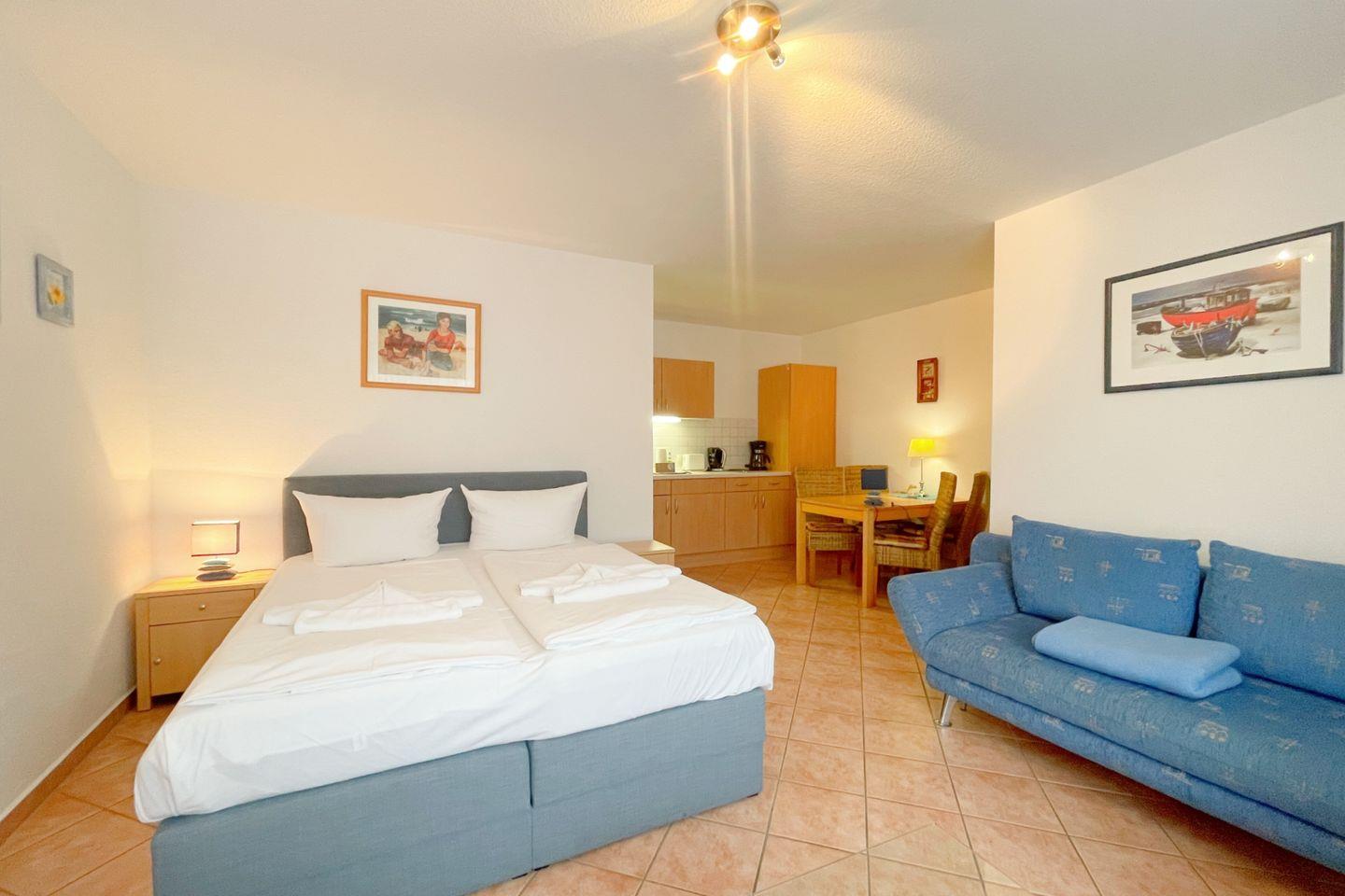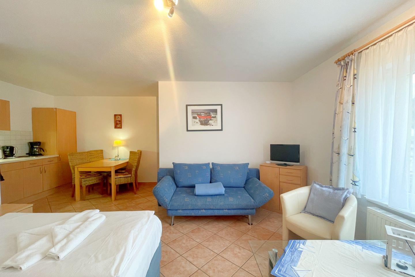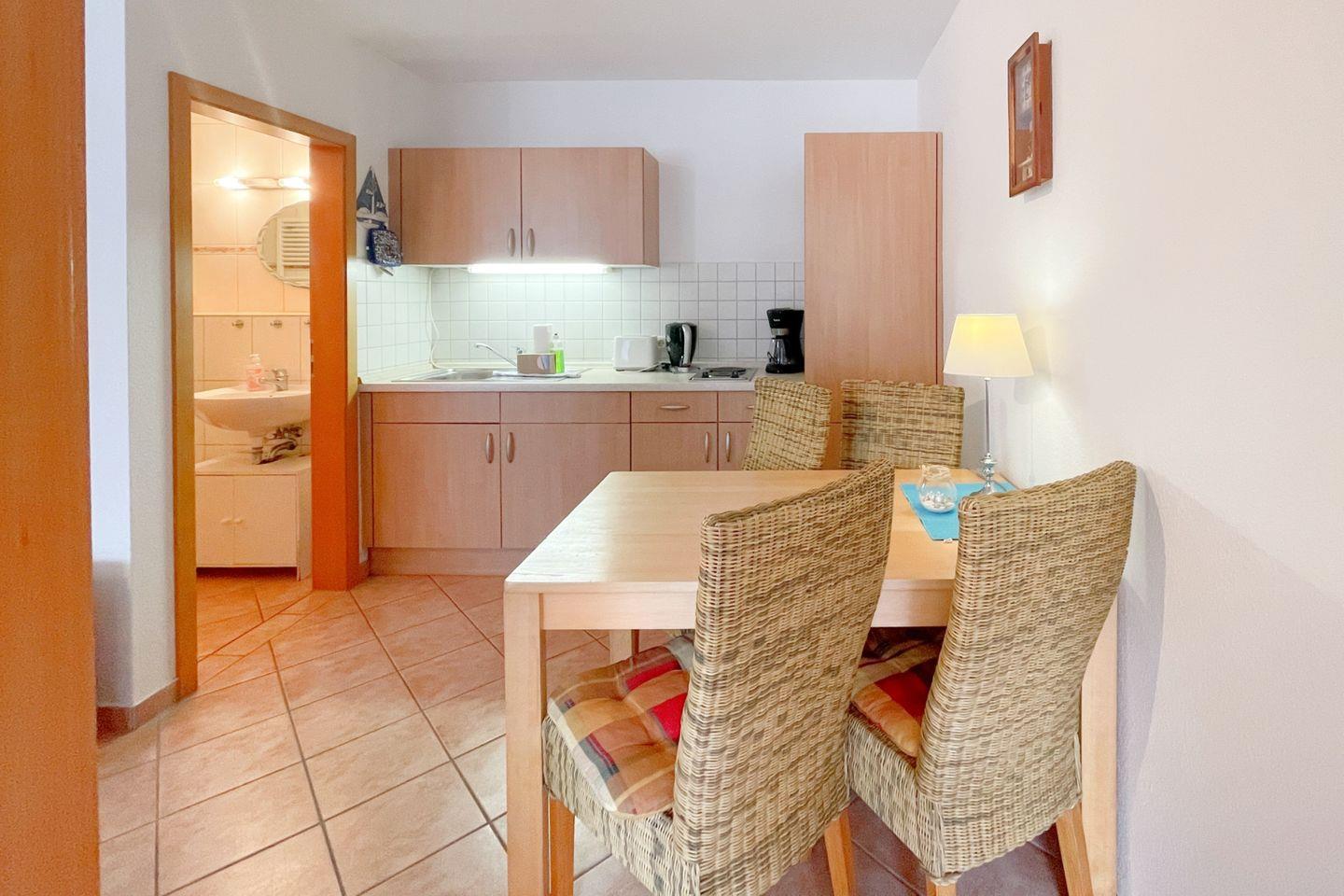 Entdecken Sie die charmante Ferienwohnung im Haus Antje, die den idealen Rückzugsort für Paare, Familien und Abenteuerlustige bietet. Mit ihren 30 m², verteilt auf ein gemütliches Zimmer mit kombiniertem Schlaf- und Wohnbereich und einem komfortablen Badezimmer, ist diese liebevoll gestaltete Ferienwohnung ideal für einen unvergesslichen Aufenthalt an der malerischen Ostsee. Der großzügige Wohnbereich ist offen zur modernen Küche gestaltet, die mit sämtlichen Annehmlichkeiten ausgestattet ist – vom Herd bis zur Kaffeemaschine, hier bleiben keine Wünsche offen.
