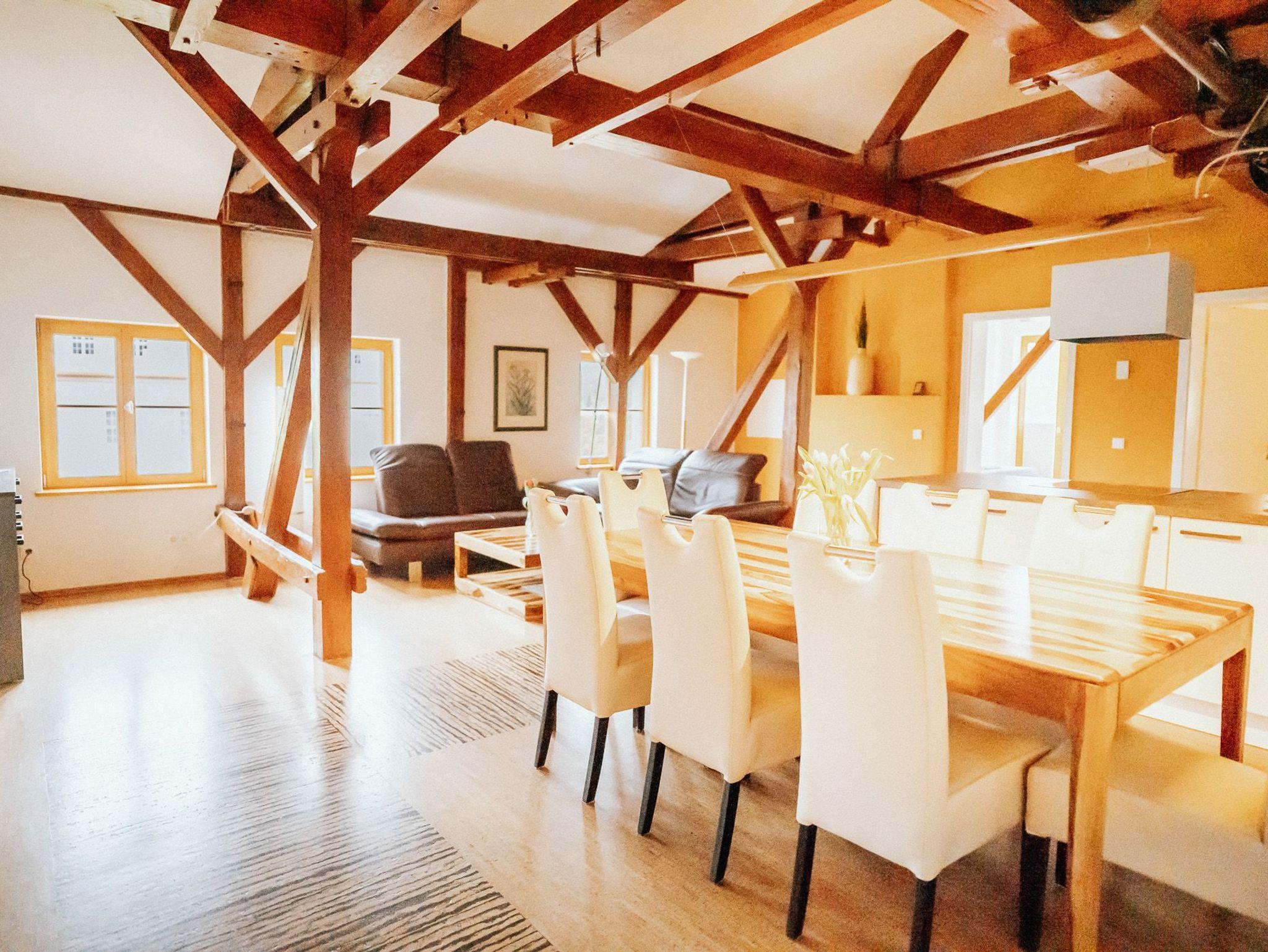 Die Wassermühle am Schloss im Zentrum von Königs Wusterhausen mit Blick auf das Schloss beherbergt zwei exklusive Ferienwohnungen. Das historische Gebäude wurde vollständig rekonstruiert und verbindet technische Baudenkmalelemente der alten Mühle mit modernen Elementen.