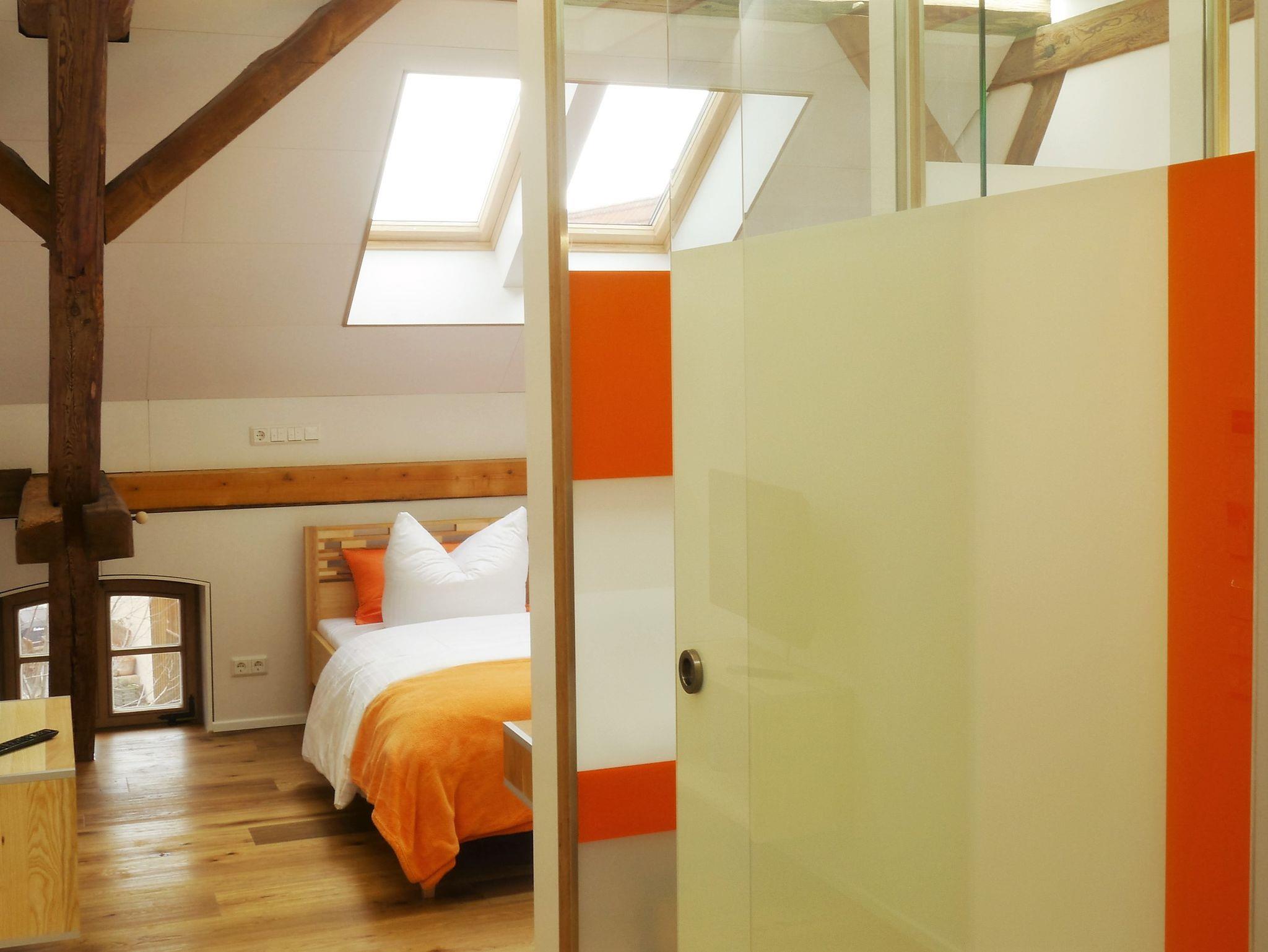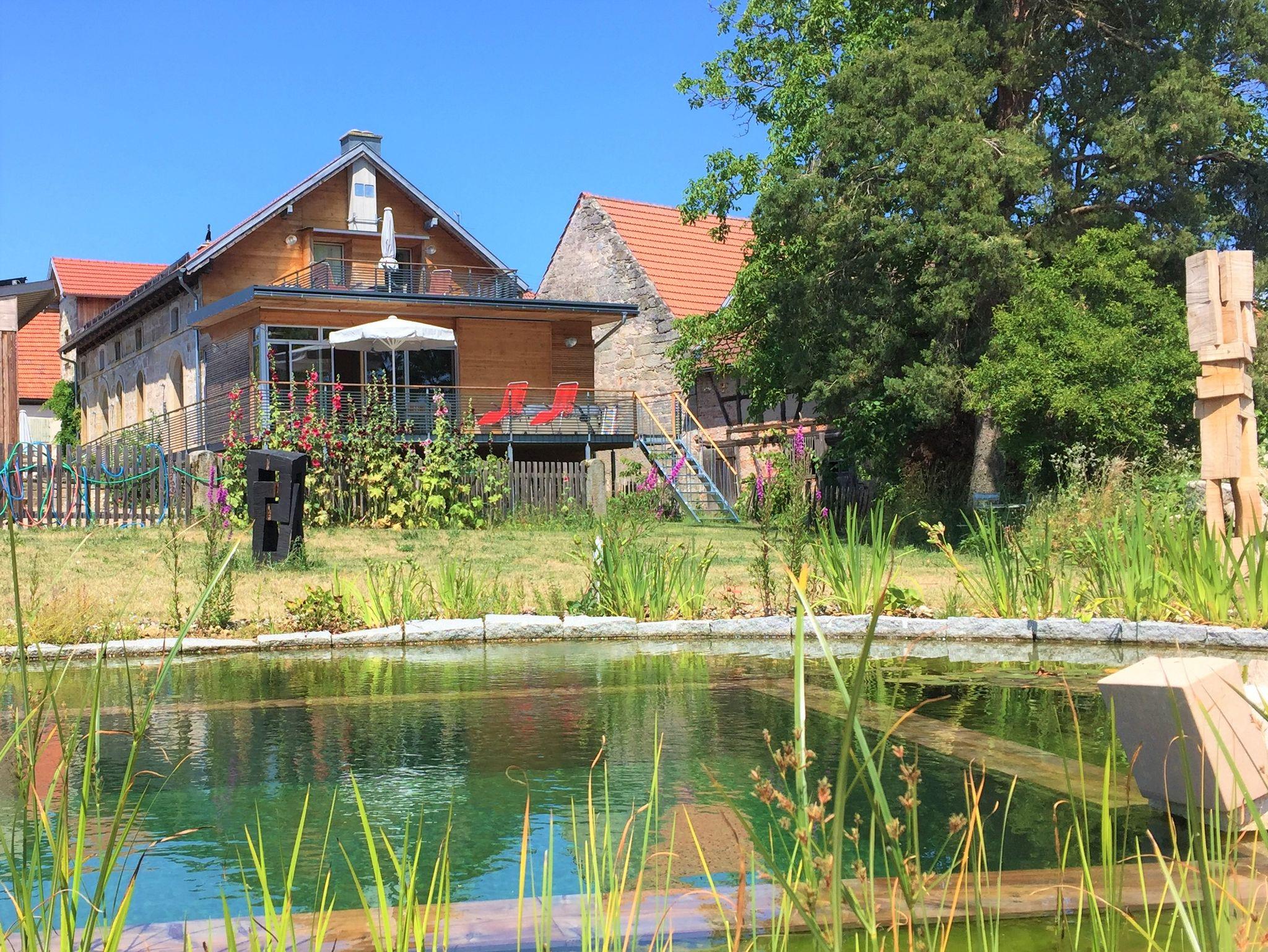 Ganz ruhig und mitten im Naturpark Haßberge, direkt am historischen Rennweg gelegenes, früheres Brauhaus unter Denkmalschutz. Die Einrichtung für das Doppelzimmer und die drei Wohnungen im Haus kommt maßgeschneidert aus der eigenen Schreinerei in natürlichen, edelsten Materialien und mit Möbeln der Marke Eichenfrau. Nachhaltigkeit, Ökologie und Made-in-Germany werden hier groß geschrieben. Wohlfühlambiente ist somit garantiert. Schöner Garten hinter dem Brauhaus mit maximaler Privatsphäre, Sauna und Schwimmteich-Biotop.