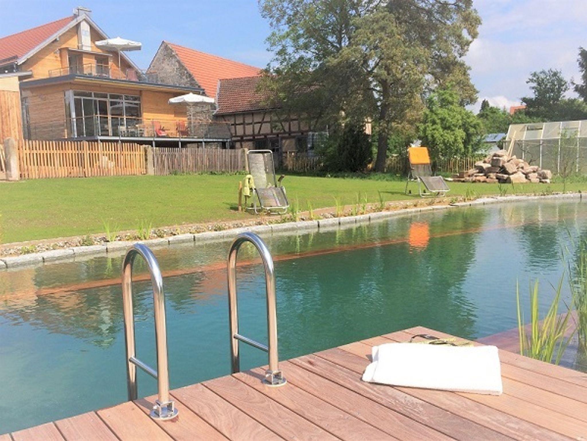 Ganz ruhig und mitten im Naturpark Haßberge, direkt am historischen Rennweg gelegenes, früheres Brauhaus unter Denkmalschutz. Die drei neu ausgebauten, exklusiven Wohnungen und das Doppelzimmer verwöhnen mit vielen Extras zum wohnen und relaxen. Die Einrichtung kommt maßgeschneidert aus der eigenen Schreinerei in natürlichen, edelsten Materialien und Möbeln der Marke Eichenfrau. Nachhaltigkeit, Ökologie und Made-in-Germany werden hier groß geschrieben. Wohlfühlambiente ist somit garantiert. Schöner Garten hinter dem Brauhaus mit maximaler Privatsphäre und Schwimmteich-Biotop. Nur für Erwachsene, keine Haustiere. Freu Dich auf: FEWO Quelle: Liebst Du Ruhe und modernen Komfort, natürliche Oberflächen, großzügiges Wohngefühl? Schätzt Du den direkten Kontakt mit frischer Luft und die freie Sicht auf unverbaute Natur, viel Platz für Dich alleine auch auf der Terrasse? Du magst auch Deinen eigenen Whirlpool mit niemandem teilen - ausser mit deinem Lieblingsmenschen? Egal ob Du gut zu Fuß bist oder nicht, das großzügige und barrierefreie Ambiente der QUELLE wird Dich begeistern. - Apartment Malz: Hier hast Du einen großen Balkon zum Sonnenaufgang und mit weitem Blick in den Garten mit Naturteich, in die grünen fränkischen Hügel, Wälder und Felder. Wenn Du Deine Privatsphäre schätzt und das sonnige Frühstück im Freien mit Vogelgezwitscher nicht missen möchtest, wirst Du Dich hier wohl fühlen und wunderbar erholen.- Apartment Hopfen: Genau richtig bist Du hier, wenn Du tagsüber viel draußen im fränkischen Land unterwegs bist und den Tag gerne gemütlich beginnen und ausklingen lassen möchtest. Oder wenn Du ganz einfach das Gefühl von natürlichen, gewachsenen Materialien unter den Händen liebst und staunend in der ehemaligen Darre unter der großes Regendusche stehen möchtest. Oder Du die wohlige Wärme auf der Haut spüren willst, in Deiner eigenen Infrarotsauna. Willkommen! - Doppelzimmer Gerste: Genau zwischen Hopfen und Malz liegend, kannst Du es dazu buchen. Für eine 3. oder 4. Person oder wenn jeder von Euch sein eigenes Zimmer zum schlafen braucht. Unser Beitrag zum Thema Nachhaltigkeit: Made in Germany, für uns als Schreinerfamilie eine Lebenseinstellung. Die Möbel sind - wo immer möglich - aus heimischen Hölzern und Naturmaterialien von uns selbst entworfen und hergestellt. Kunststoffe versuchen wir so gut es geht zu vermeiden. Auch die allgemeine Ausstattung der Wohnungen ist aus regionaler oder deutscher Produktion mit hohem Qualitätsanspruch und langer Haltbarkeit. Ja, es gibt im Brauhaus 3 auch Klimaanlagen in allen drei Wohnungen! Es klingt wie ein Widerspruch, ist es aber nicht. Denn zu jenen Zeiten, in denen die Klimaanlage gebraucht wird, haben wir ganz viel fränkische Sonne und... unsere Photovoltaikanlagen liefern dann mehr als genug Strom direkt dafür! Wir produzieren und speichern hier rund ums Jahr inzwischen fast doppelt so viel Strom wie wir selbst verbrauchen. Natürlich gibt es noch viel mehr, was wir bereits tun. Dies können Sie auf unserer Website nachlesen: /nachhaltigkeit/