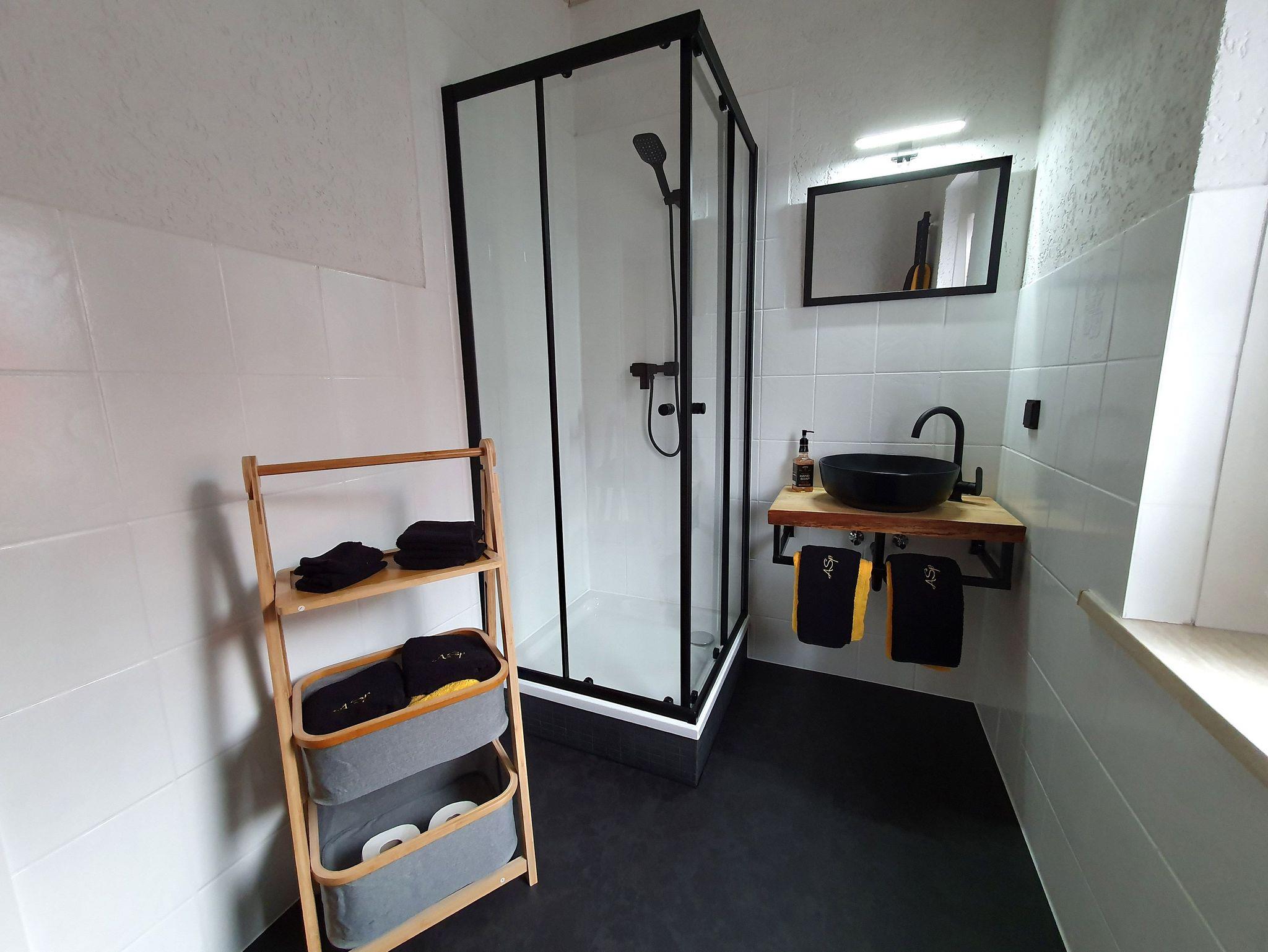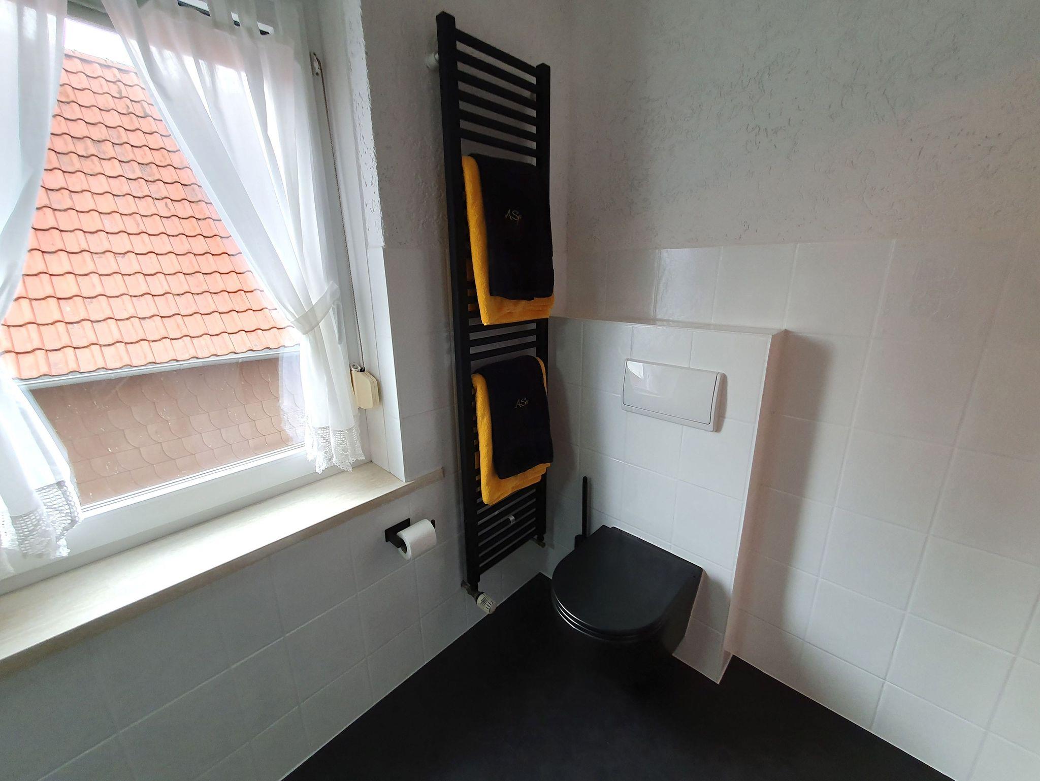 Das Bad wurde komplett neu saniert und bietet eine Dusche, einen Waschtisch und ein WC.