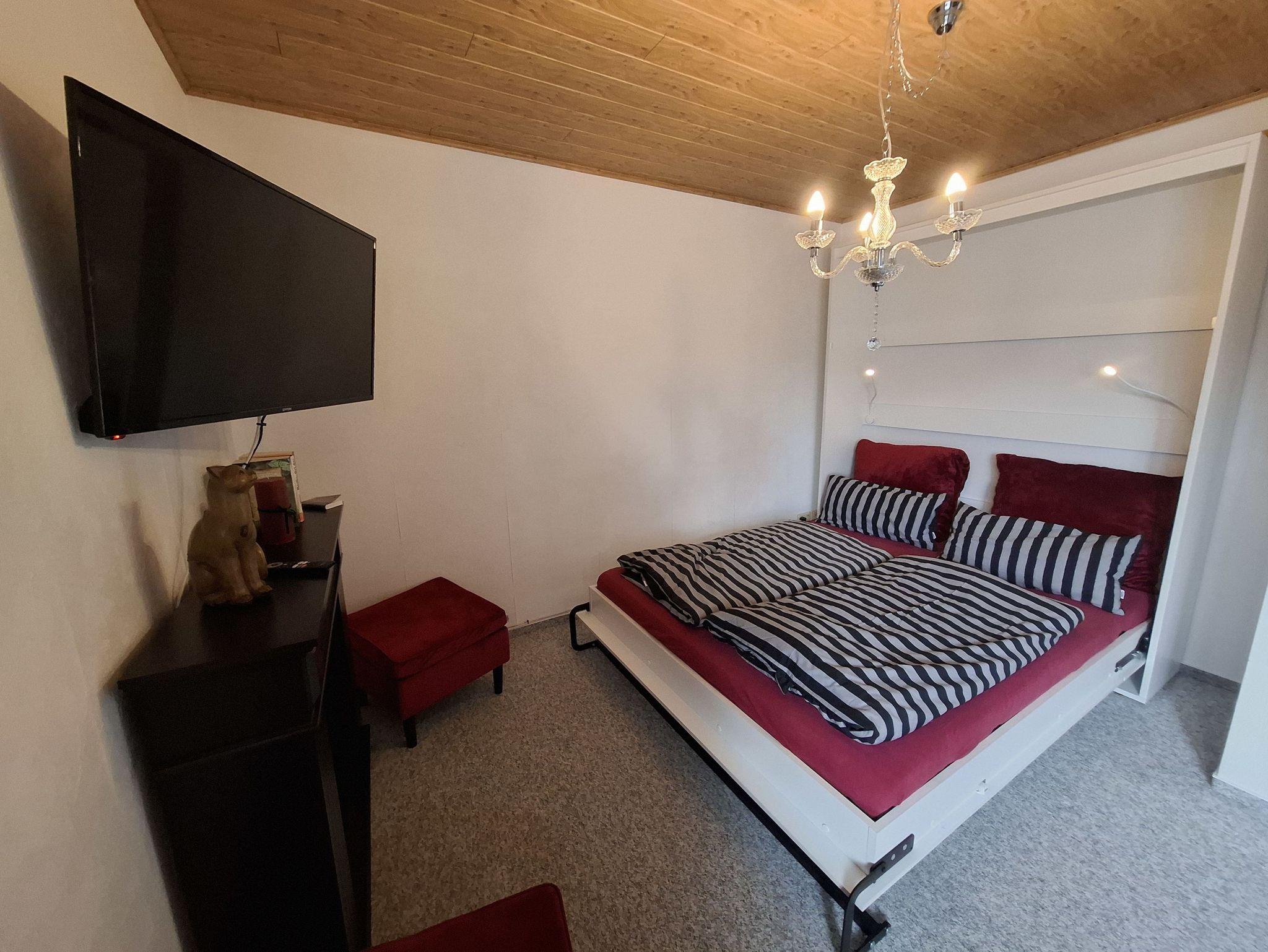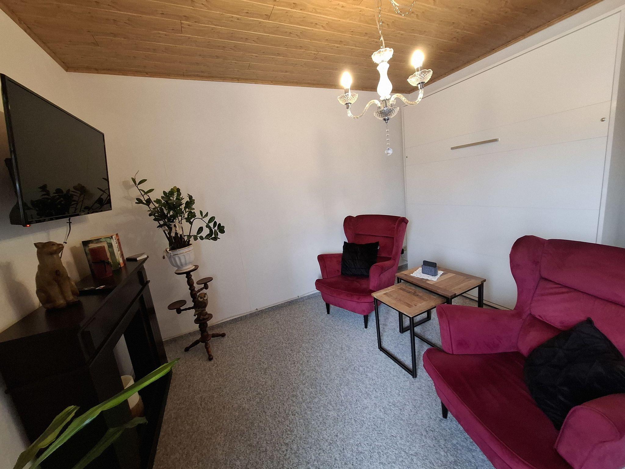 Das Wohnzimmer mit Kleiderschrank ist geräumig und bietet weiteren Platz für 2 Personen durch ein komfortables Schrankbett.