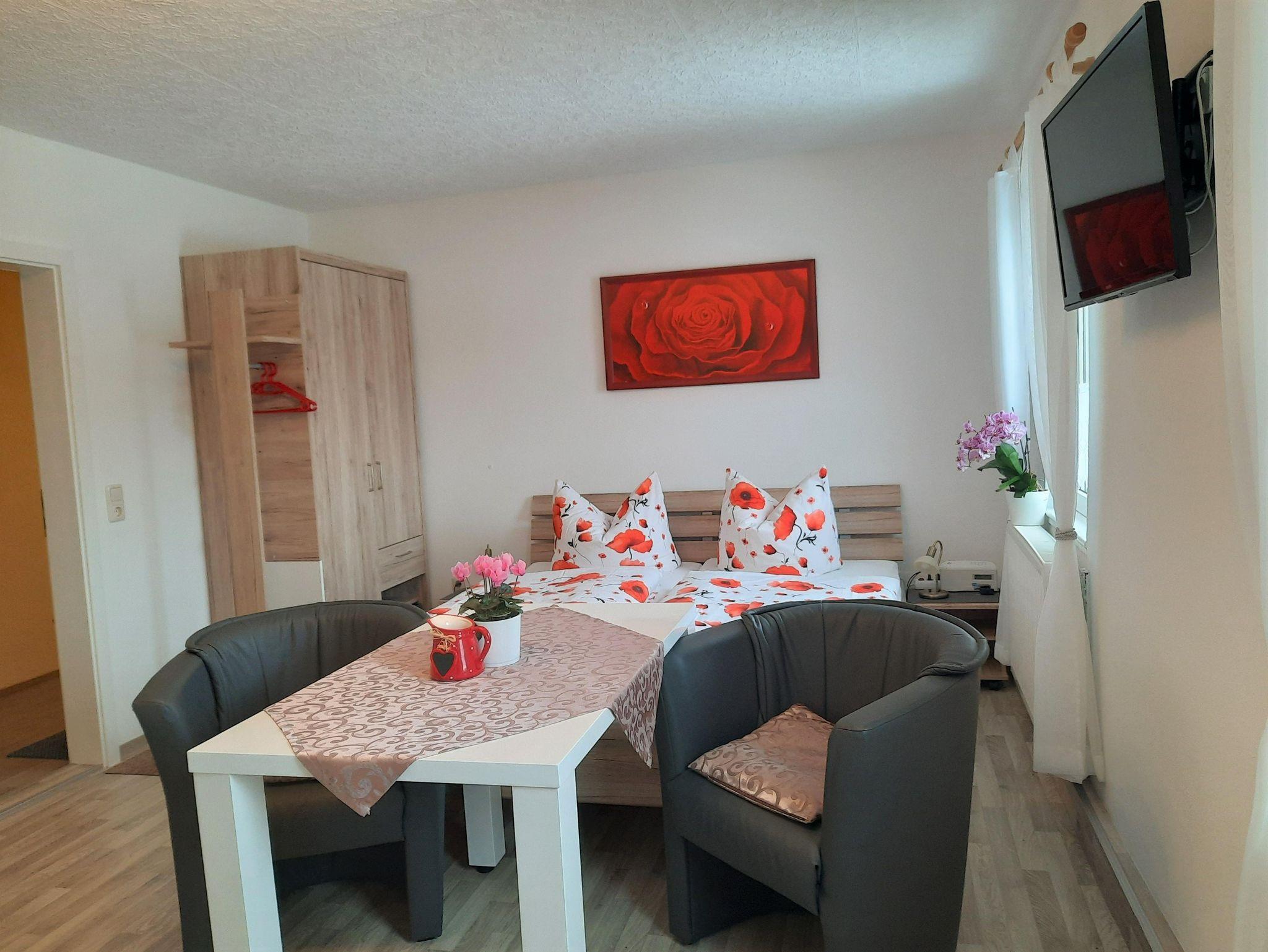 Großes, gemütliches Appartement mit Doppelbett (180 cm x 200 cm), Dusche/WC, großen Flachbild TV, Radio und moderne komplette Küchenzeile.( alle Möbel neu, da 2021 komplette Modernisierung)