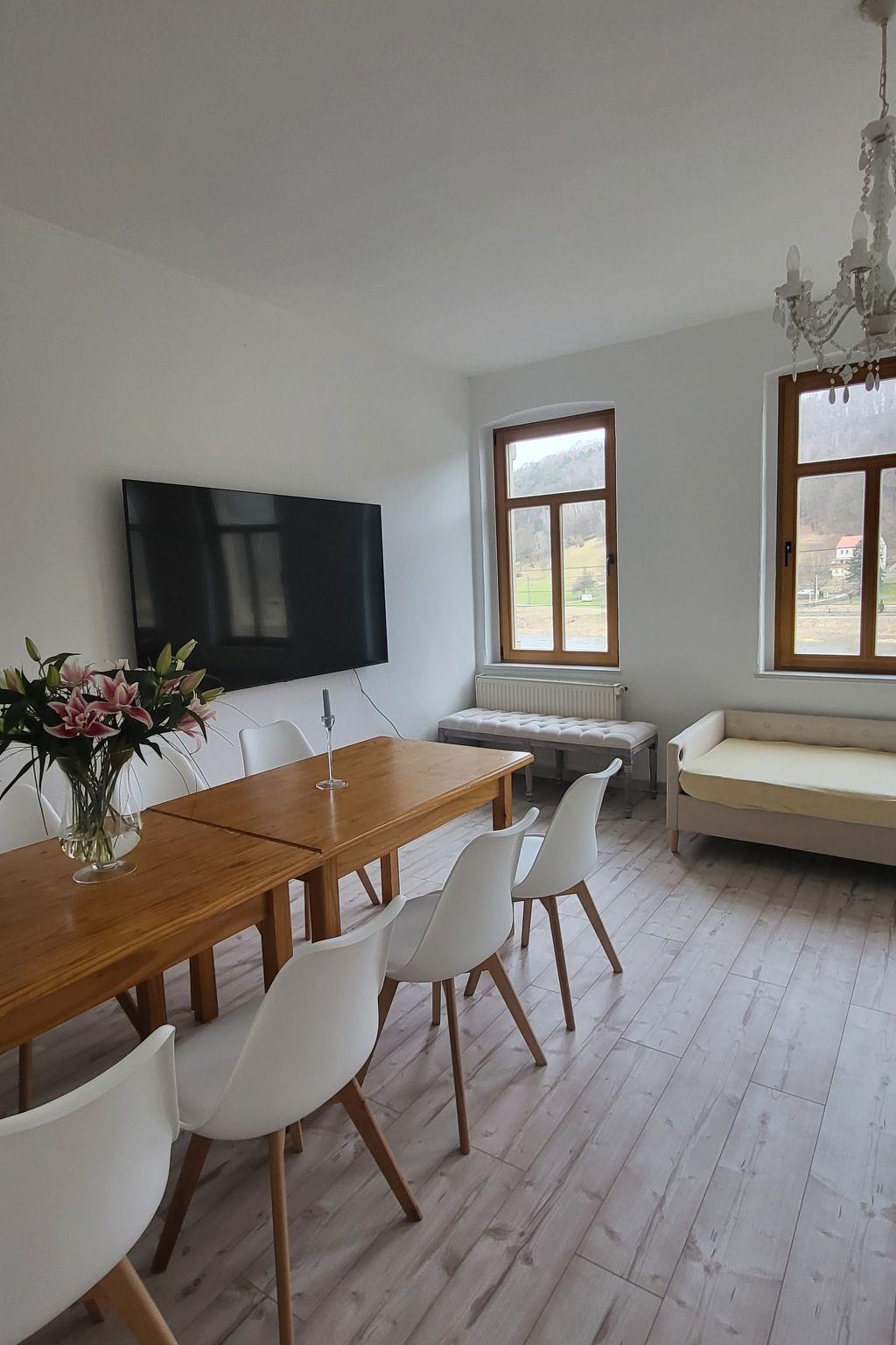 Discover a dream holiday home in the impressive Elbe Sandstone Mountains: our newly renovated holiday flat in Königstein awaits you and up to 11 other guests for an unforgettable stay. The perfect choice for families and friends who want to explore the beauty of Saxony together. Thanks to its central location in the heart of Königstein, you can enjoy close proximity to all major attractions and the immediate vicinity of the Elbe.