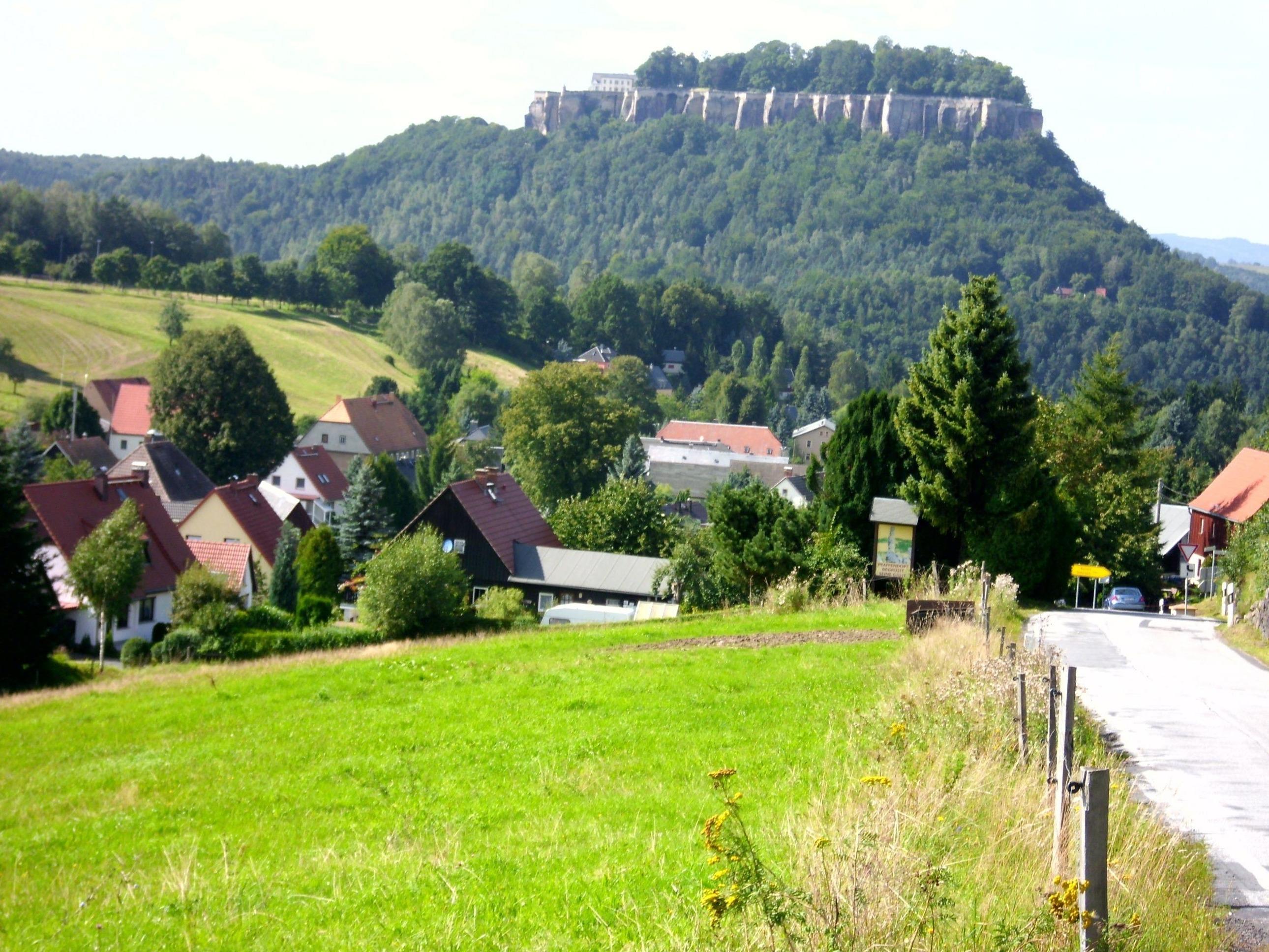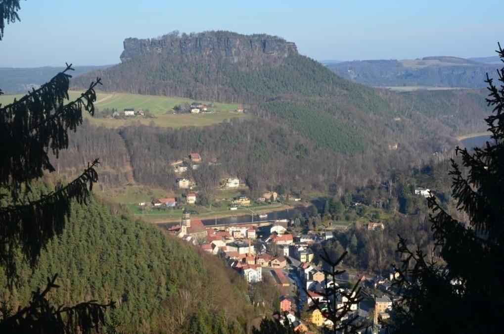 1241 erstmalig erwähnt, bedeutendes Denkmal europäischer Festungsbaukunst, Sandsteintafelberg, über 3 Zugbrücken gelangt man auf das 245m über der Elbe liegende Felsmassiv, bis zu 40m hohe Felswände, wechselvolle Geschichte der Anlage: ursprünglich mittelalterliche Grenzburg, später Ausbau zur Festung, Staatsgefängnis, berühmtester Gefangener 1706/07 Johann Friedrich Böttger, Erfinder des europäischen Porzellans, Zufluchtsort sächsischer Kurfürsten und Könige, bewahrten Kunstschätze und Staatsschatz auf, Ausflugsziel des Hofes, Bauwerke der Spätgotik, der Renaissance, des Barock und vorjährigen Jahrhunderts, in Fels getriebener 152,5m tiefer Brunnen, kunstvolle Bronzegeschützrohre, Rundgang entlang 2,2 km langer Festungsmauer: umfassender Rundblick über große Teile der Sächsischen Schweiz