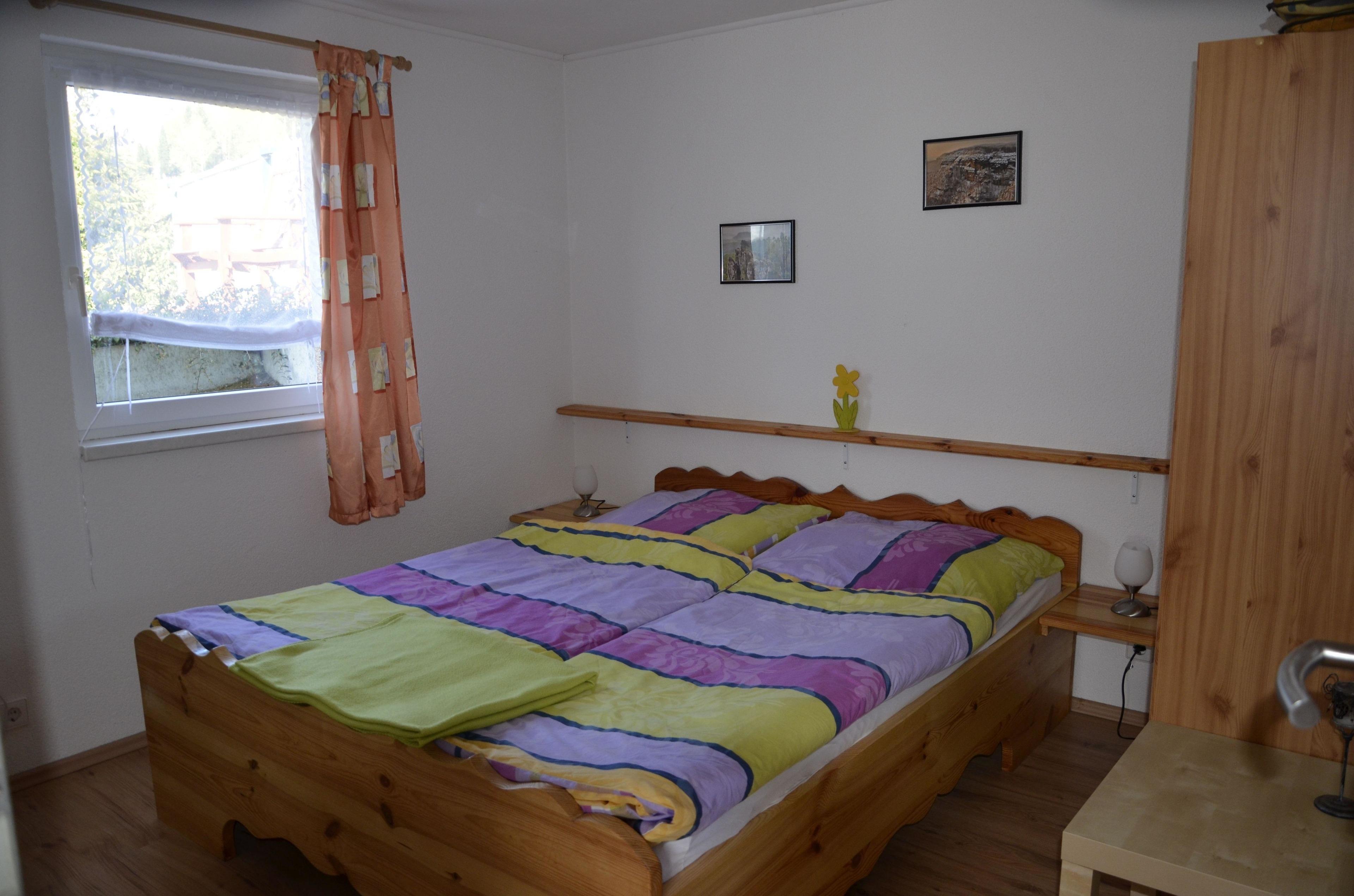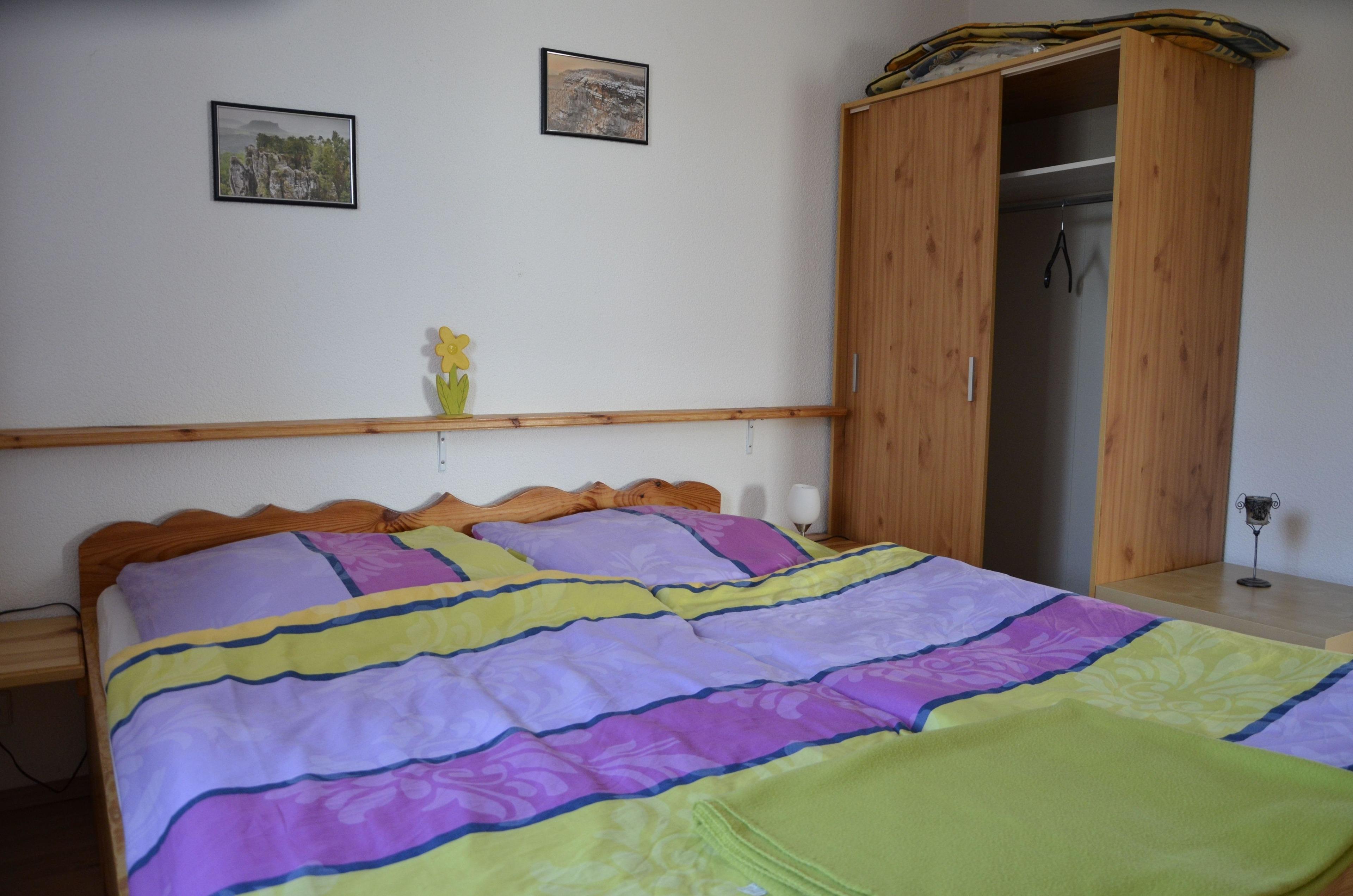 Die getrennten Schlafzimmer, mit Schränken und Ablageflächen, sind im Bauernstil eingerichtet. Kleinkinderbetten können auch noch gestellt werden. Die Sanitäreinrichtung ist mit großer Dusche IWC und fließend Kalt -Warmwasser. Zwei Stellplätze für die Autos sind im Grundstück vorhanden.