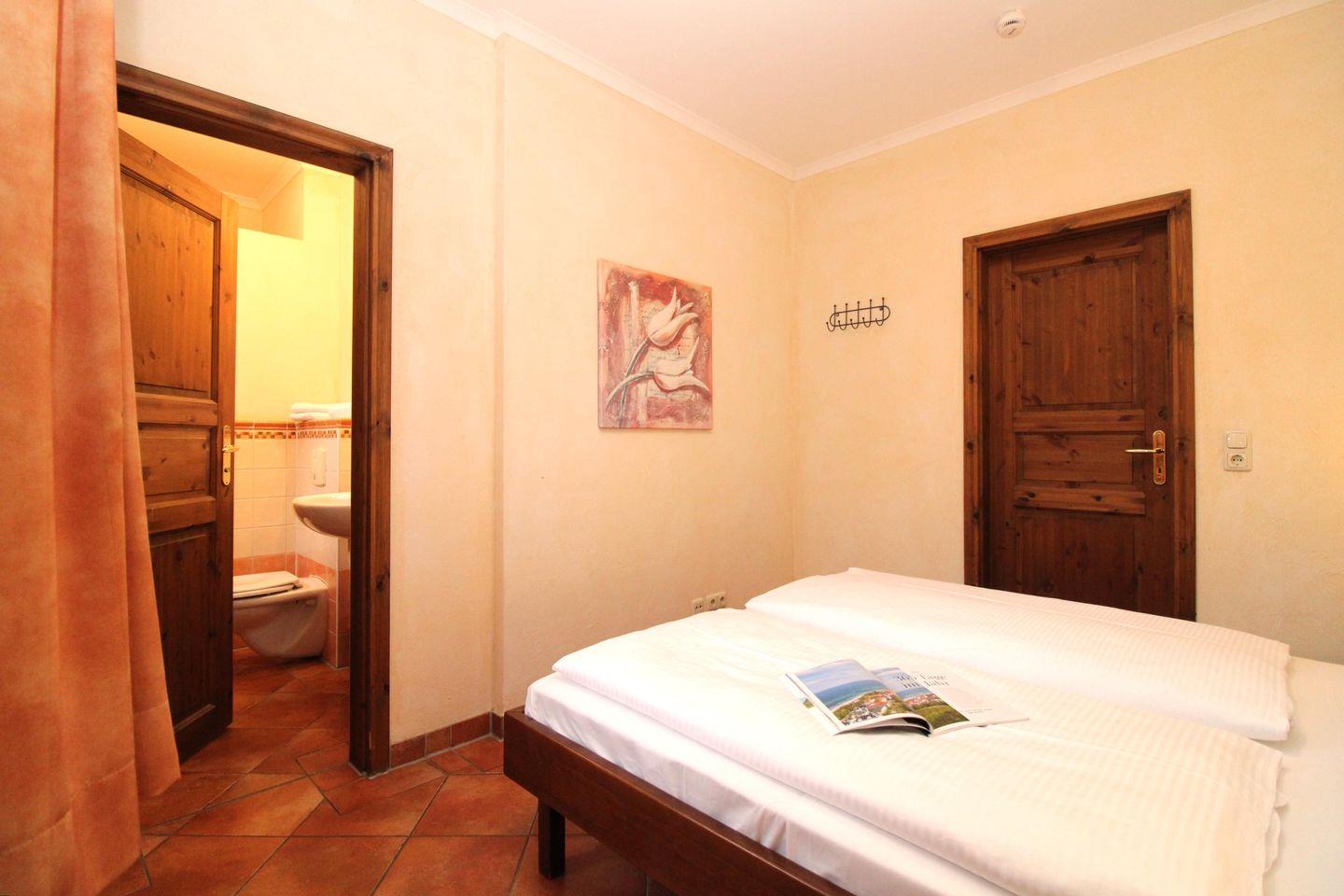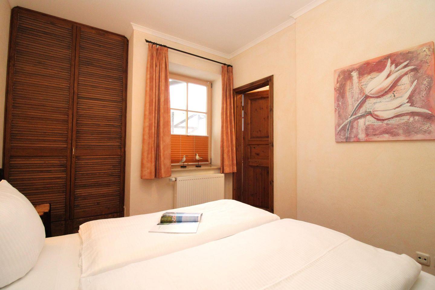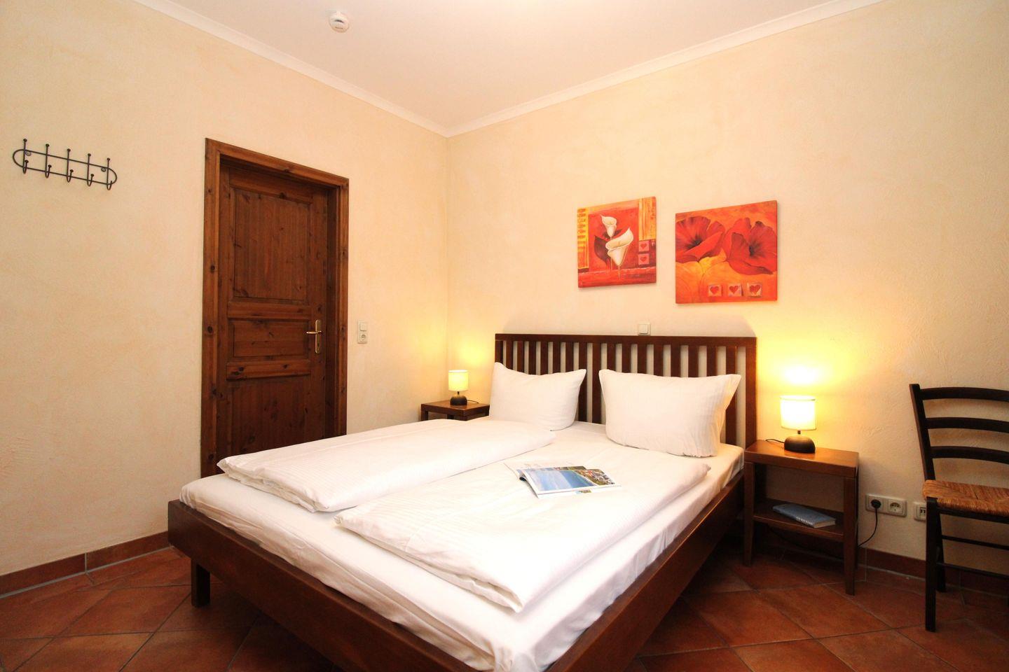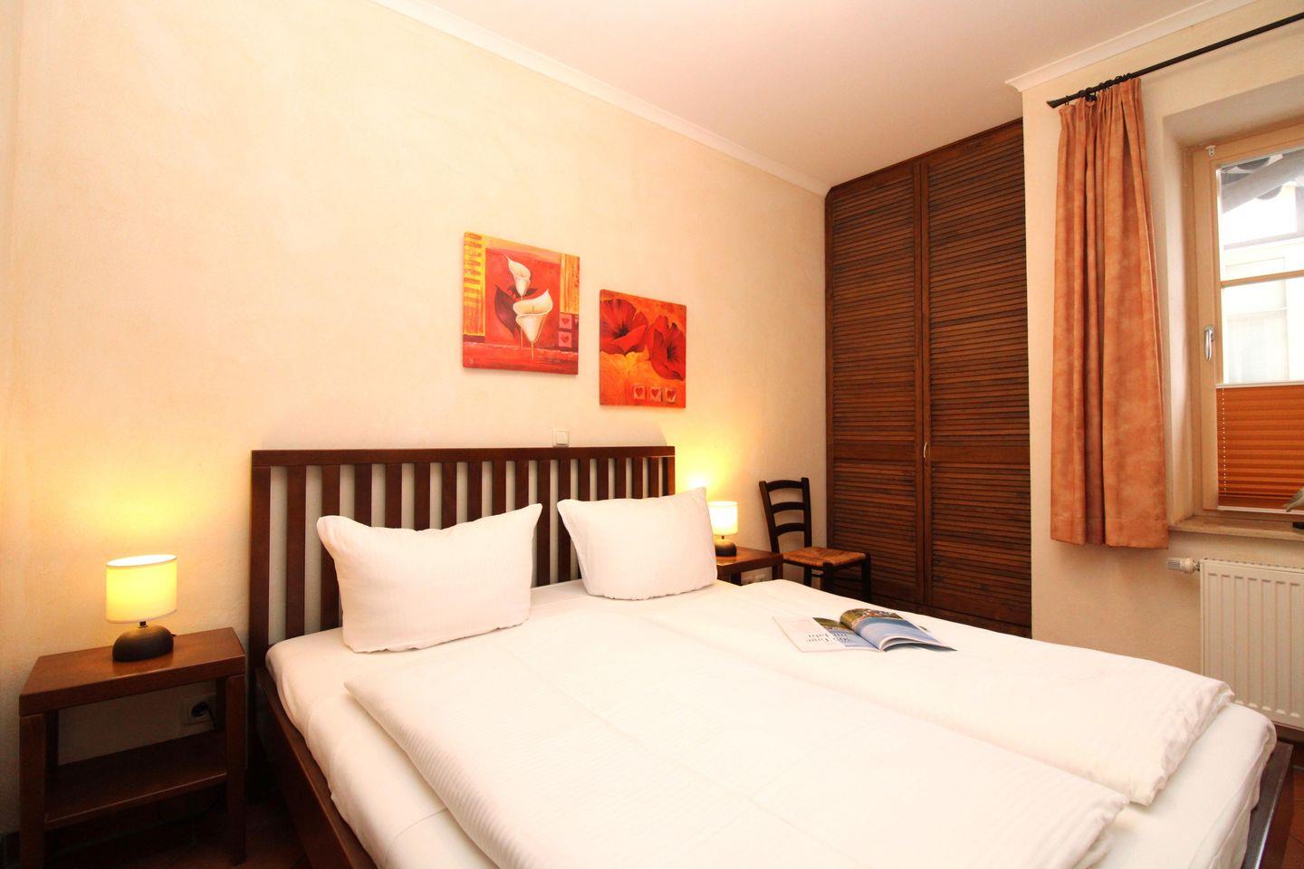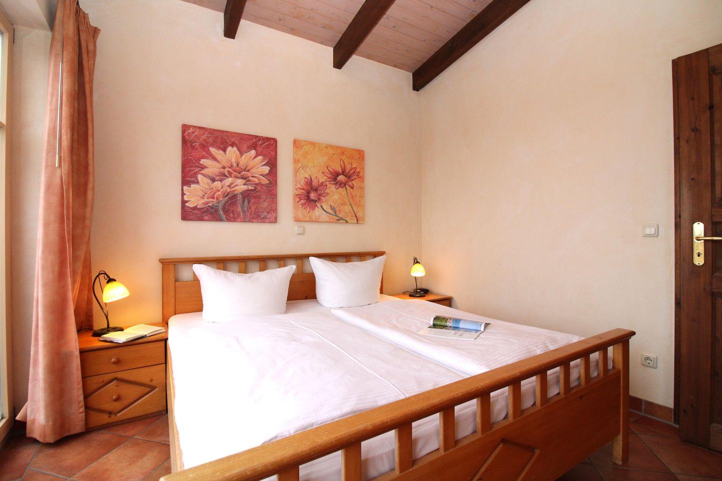 Das separate und gemütliche 2. Schlafzimmer (im 2. OG) verfügt ebenfalls über ein bequemes Doppelbett (2x80x200), Nachttische sowie einen geräumigen Einbau-Kleiderschrank.