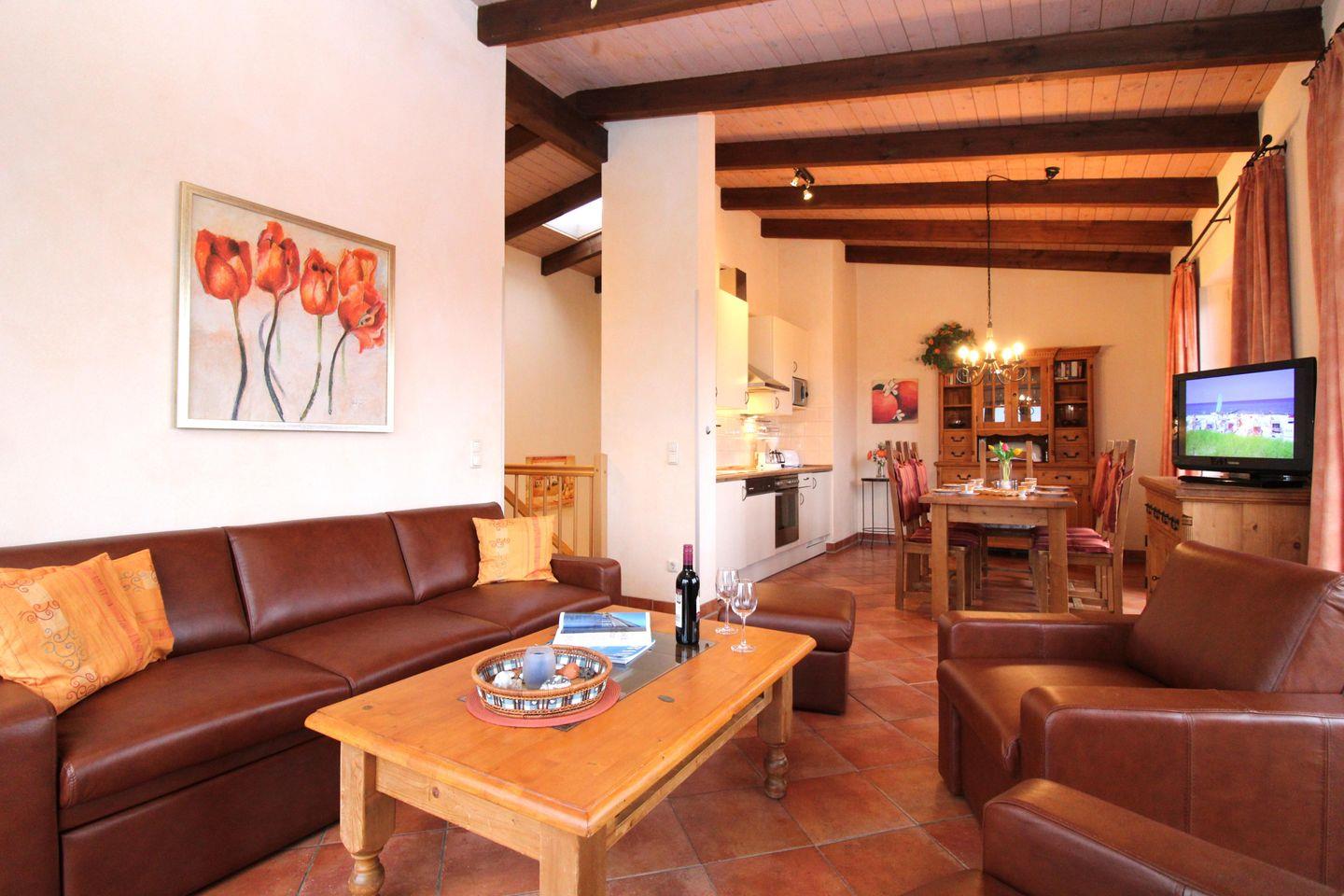 Eine zusätzliche bequeme Schlafmöglichkeit für eine weitere 5. bzw. 6. Person bietet die ausziehbare Schlafcouch im Wohnzimmer.