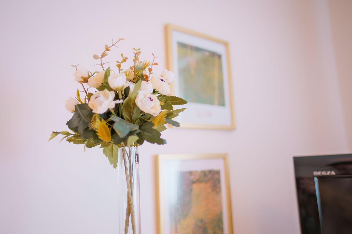 Das Wohnzimmer ist der Mittelpunkt des Apartments – hell, freundlich und mit liebevollen Details eingerichtet. Ein komfortables Schrankbett bietet hier eine praktische Schlafmöglichkeit für eine dritte Person. Im separaten Schlafzimmer lädt ein gemütliches Doppelbett zu erholsamen Nächten ein.