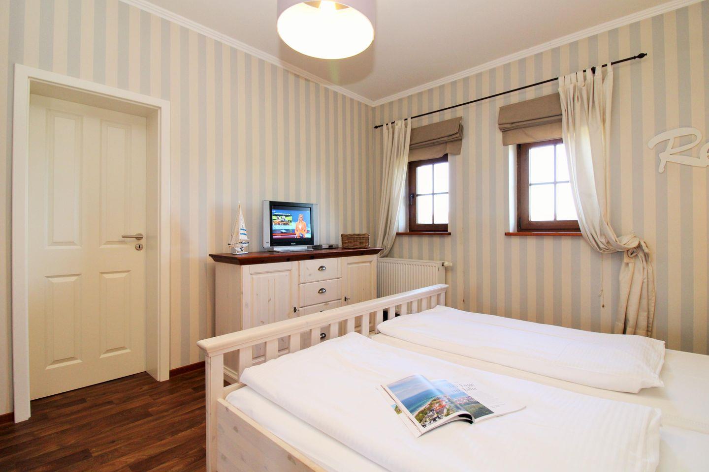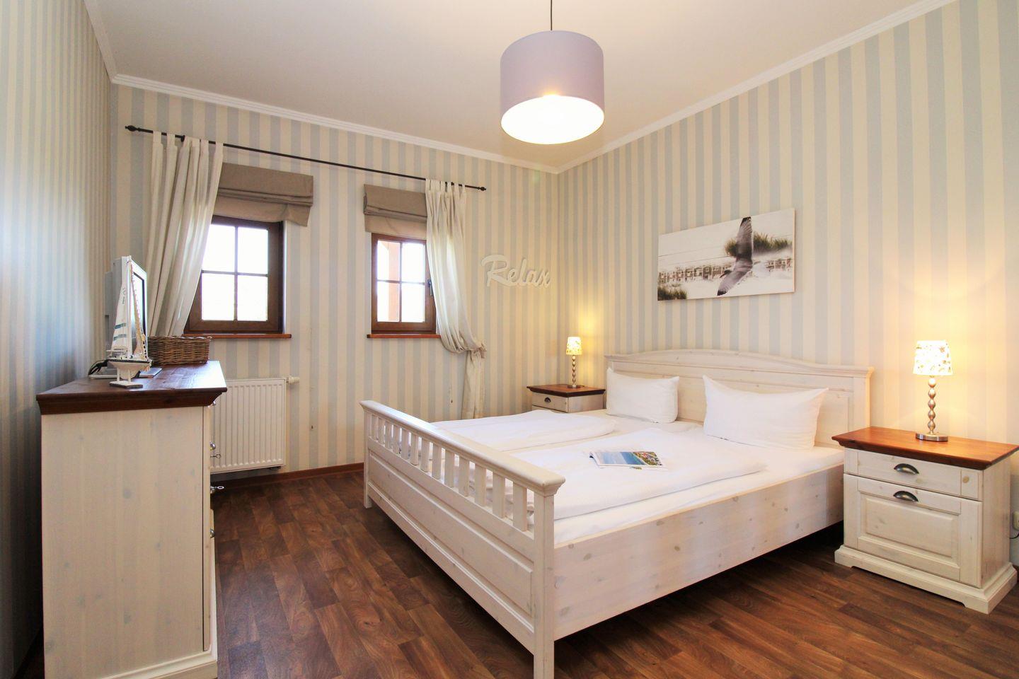 Das liebevoll eingerichtete und gemütliche 1. Schlafzimmer ist mit einem bequemen Doppelbett, Nachttischen, einer Kommode sowie einem geräumigen Kleiderschrank eingerichtet. Hier steht Ihnen ebenfalls ein Flatscreen-TV-Gerät zur Verfügung.