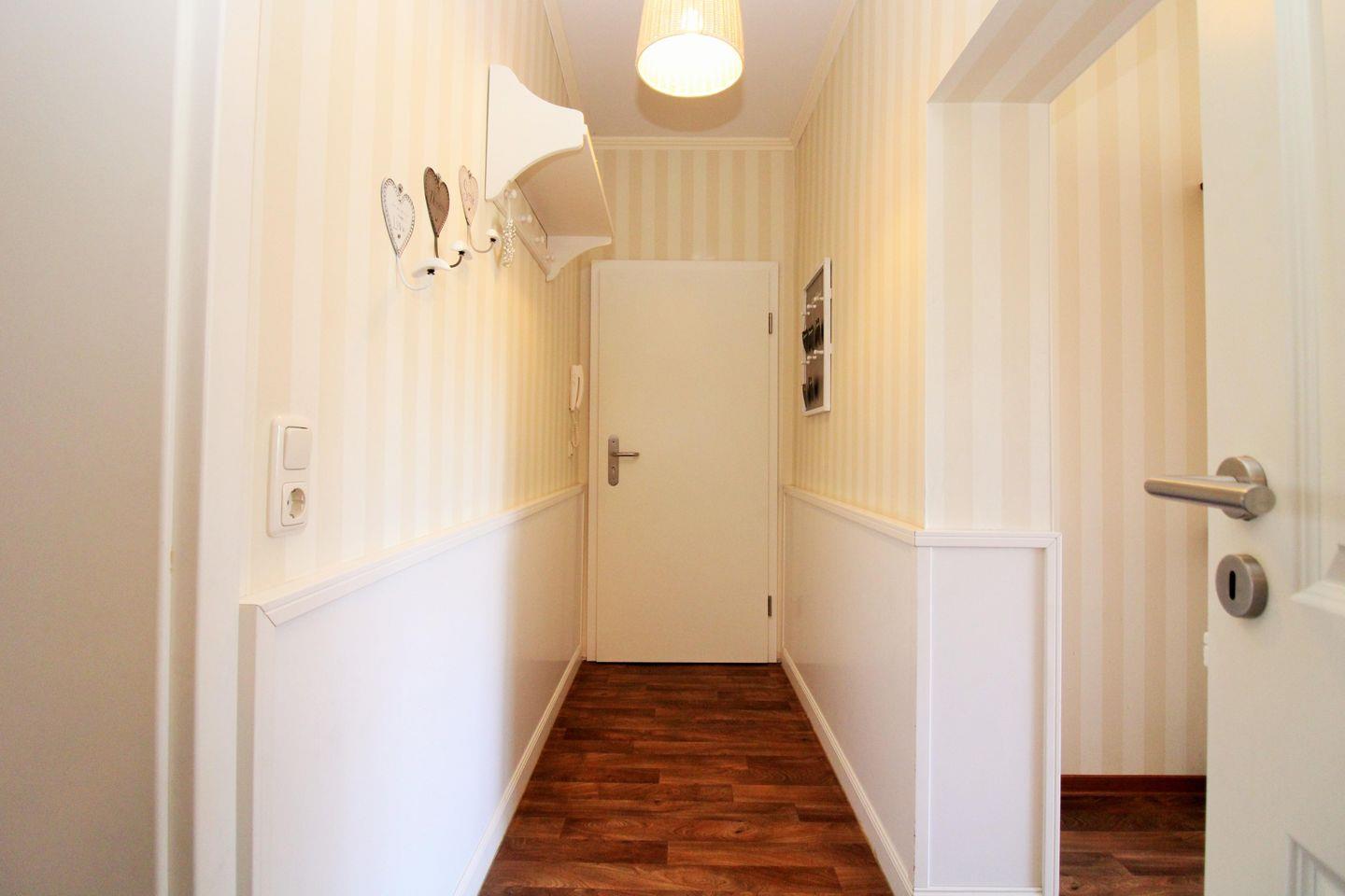 Vom Flur mit Garderobe erreichen Sie bequem alle Räume Ihrer Ferienwohnung – das 2. Schlafzimmer (Kinderzimmer) erreichen Sie über eine Tür durch das 1. Schlafzimmer.