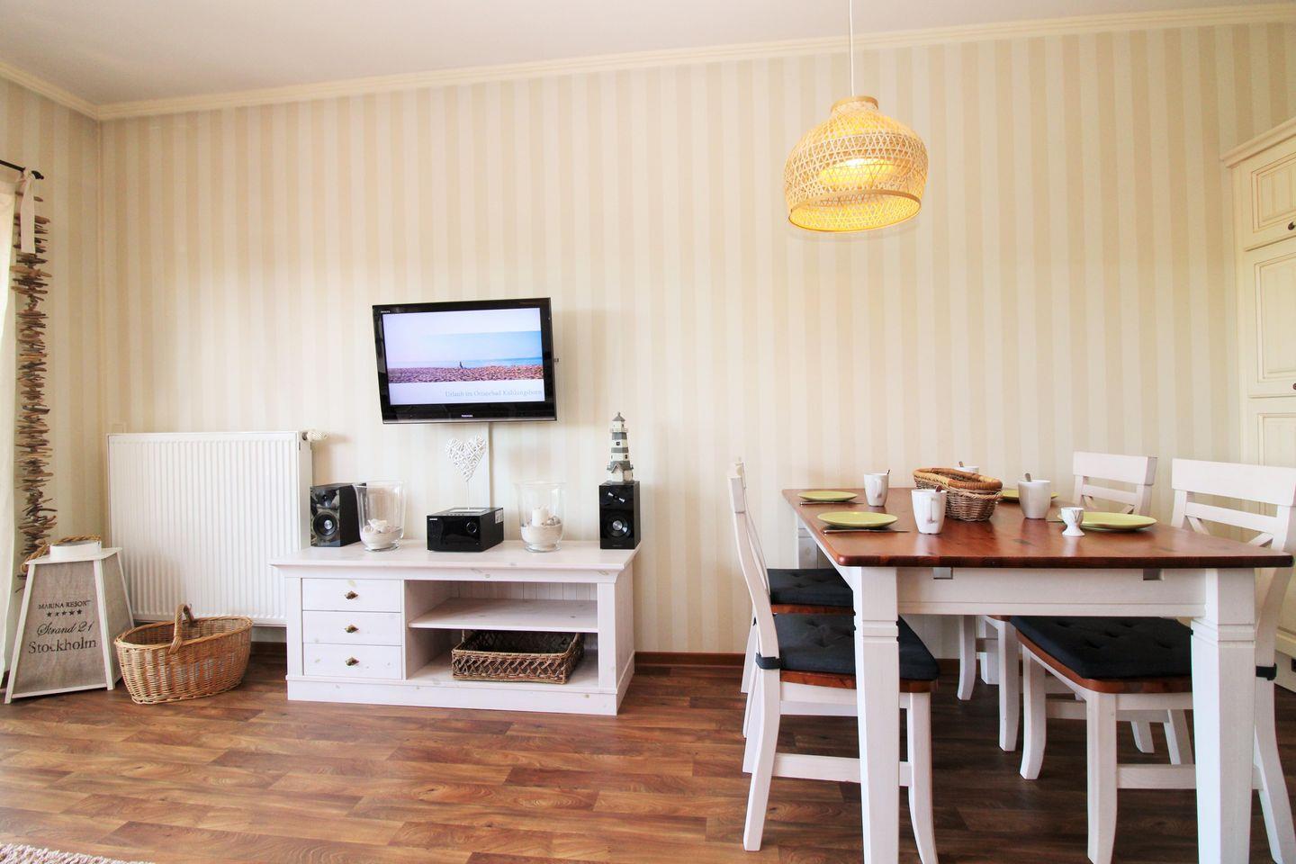 Zu Ihrer Unterhaltung stehen Ihnen in der Ferienwohnung 2 moderne Flatscreen-TV-Geräte (Wohn- und Schlafzimmer) sowie eine Stereo-Anlage mit Radio und CD-Player zur Verfügung. Darüber hinaus verfügt die Wohnung über kostenfreies WLAN.
