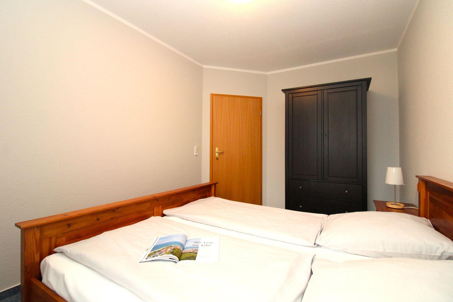 Das separate 2. Schlafzimmer verfügt ebenfalls über ein bequemes Doppelbett mit Nachttischen sowie einen geräumigen Kleiderschrank.