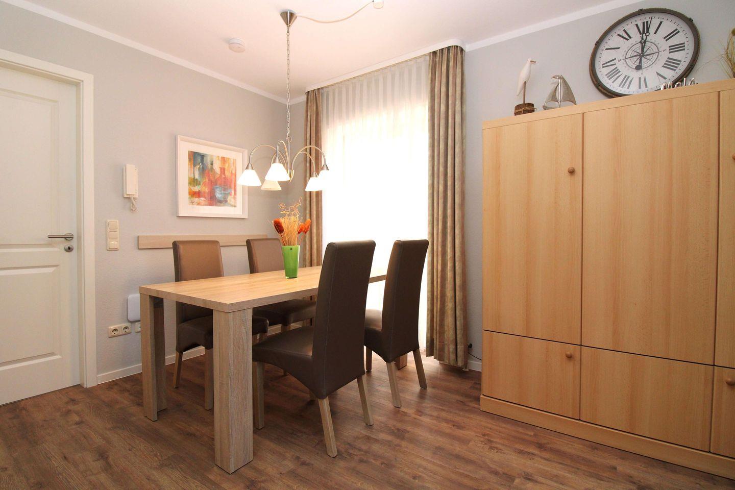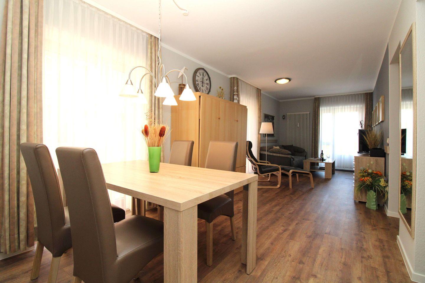 Die in unmittelbarer Strandnähe gelegene und 2024 neu renovierte, moderne und sehr schöne 2-Zimmer-Wohnung (ca. 58 m²) im 1. Obergeschoss bietet einen funktionalen Grundriss und ist komplett eingerichtet. Der Bodenbelag im Wohnzimmer und der Küche ist ein hochwertiger Vinyl-Designbelag, im Schlafzimmer Teppichboden, der Eingangsbereich sowie das Bad / WC sind gefliest.