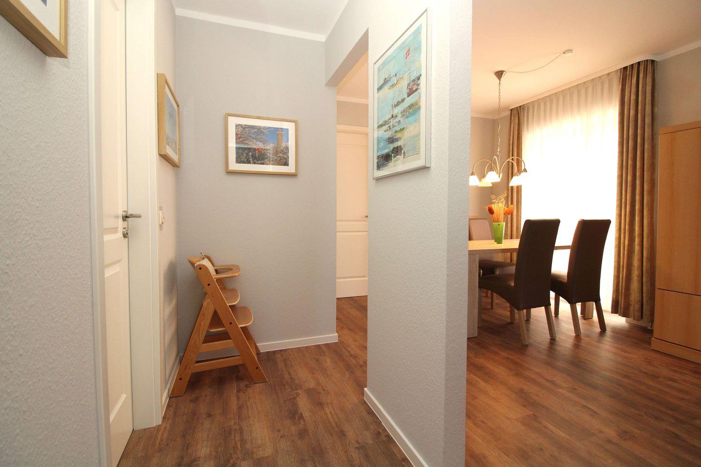 Ihre Schuhe und Jacken können Sie an der Garderobe (mit Spiegel) im Eingangsbereich der Wohnung unterbringen.