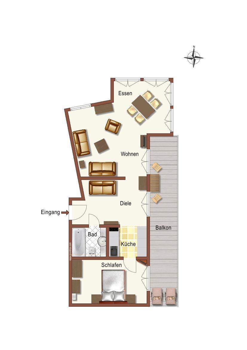 • für 2 Personen / ca. 60 m² / sehr großer Sonnenbalkon