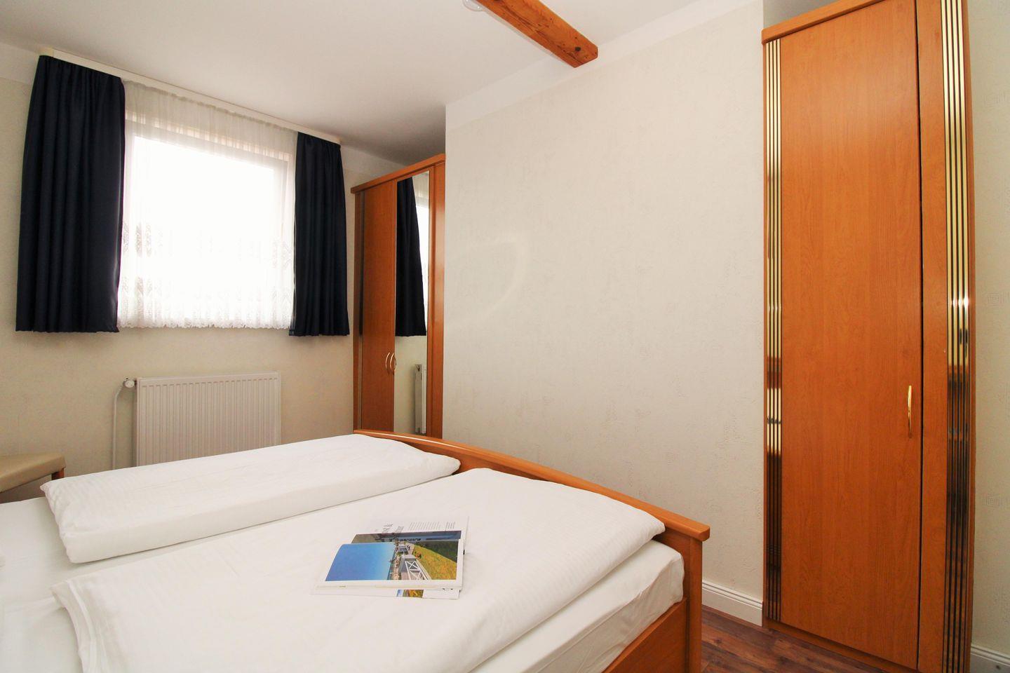 Das geräumige 1. Schlafzimmer ist mit einem bequemen Doppelbett, Nachttischen, 2 Kleiderschränken sowie 2 Stühlen eingerichtet.