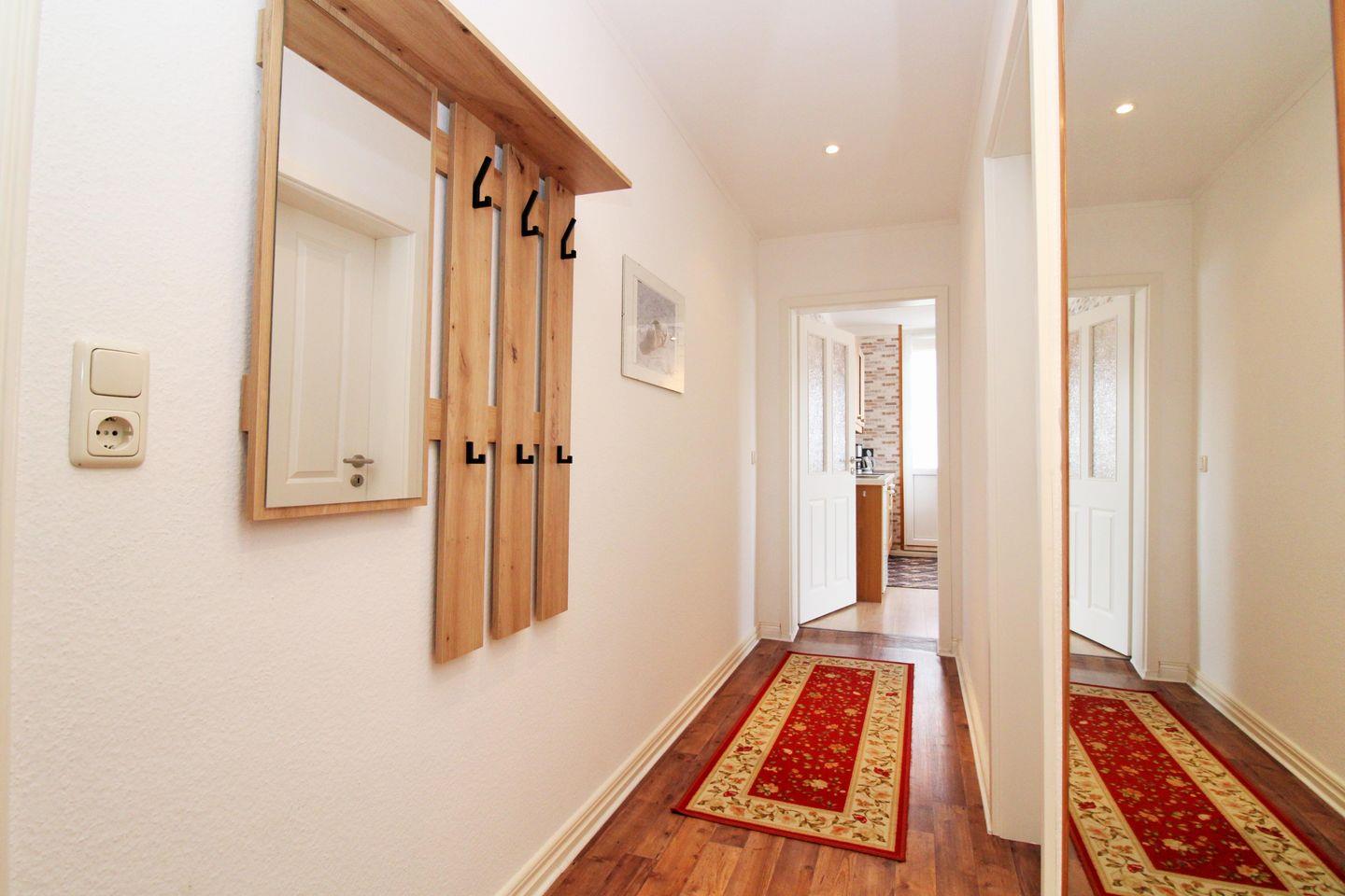Vom geräumigen Flur mit Garderobe, Spiegel und Sideboard erreichen Sie bequem alle Räume Ihrer Ferienwohnung.