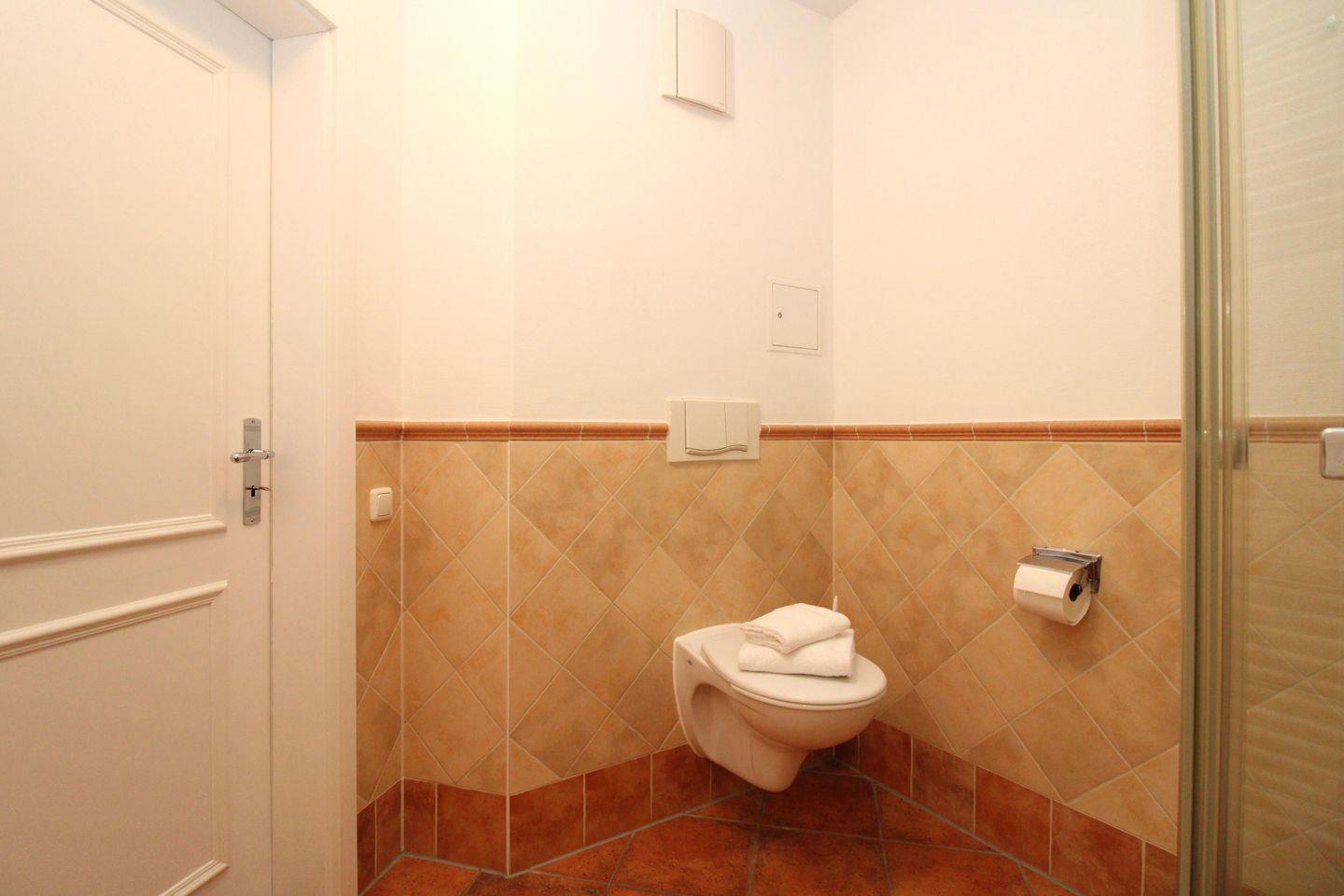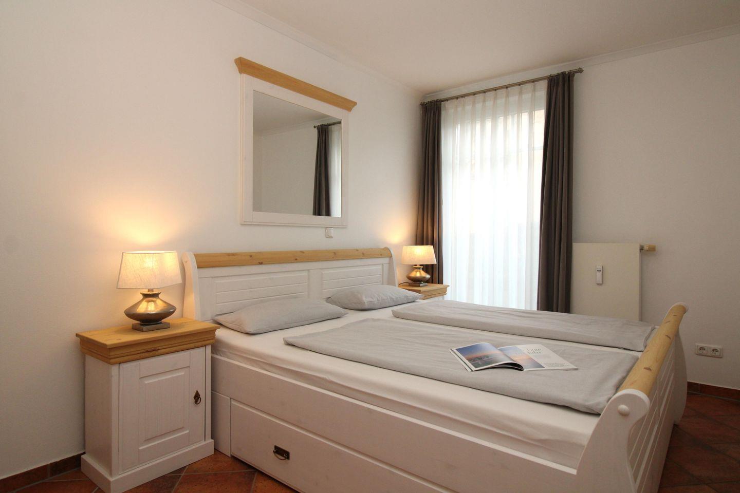 Das Schlafarrangement umfasst ein mit neuen Möbeln ausgestattetes Hauptschlafzimmer mit einem bequemen Doppelbett, Nachttischen und einem geräumigen Schrank sowie ein 2. Schlafzimmer, das ebenfalls im maritimen Stil gestaltet ist und über einen geräumigen Schrank und ein Etagenbett für zwei Personen verfügt. Für Kleinkinder stellen wir Ihnen bei Bedarf (gegen ein geringes Entgelt) zusätzlich auch gerne ein Kinderreisebett (ohne Matratze, Bettdecke, Kissen und Bezüge) sowie einen Kinderhochstuhl zur Verfügung.