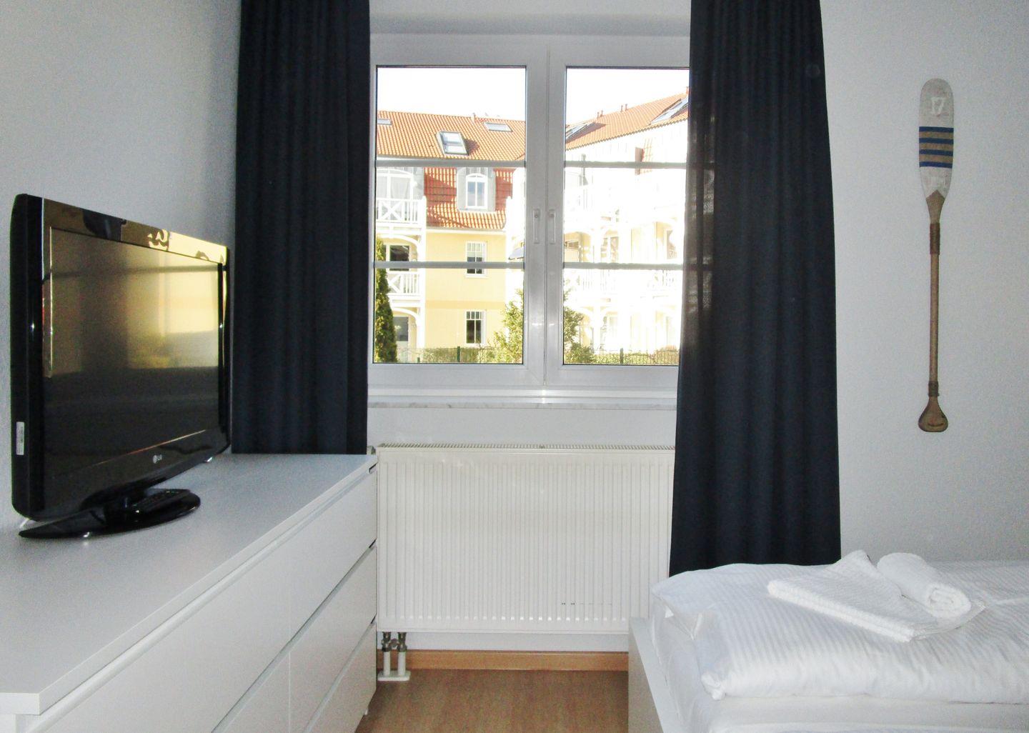 Das freundliche, helle und zusätzliche 2. Schlafzimmer verfügt ebenfalls über ein bequemes Doppelbett (mit 1,60 m Breite), Nachttische sowie eine geräumige Kommode. Hier steht Ihnen noch ein zusätzliches TV-Gerät zur Verfügung.