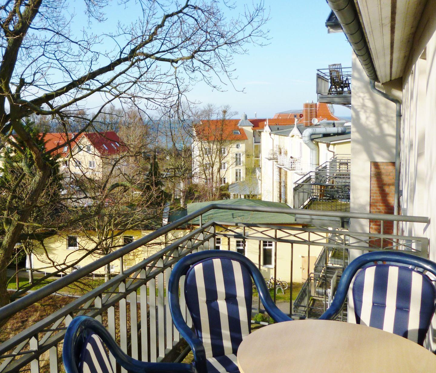 Das freundliche, geräumige und sehr gemütliche Wohn-/Esszimmer verfügt über eine separate Sitzgruppe mit bequemer Couch, Sessel und Couchtisch, einen separaten Esstisch mit 4 Stühlen sowie ein Sideboard. Vom Wohnzimmer aus haben Sie direkten Zugang zu dem nach Westen ausgerichteten Balkon mit Balkonmöbeln und seitlichem Blick auf die nahe Ostsee. Hier sitzen Sie entspannt beim Frühstück oder können abends bei einem guten Glas Wein die lauen Sommernächte genießen …!