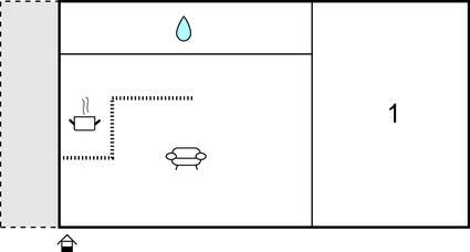 Badeværelse (nr. 1) - WC. Varmt og koldt vand. Bruser