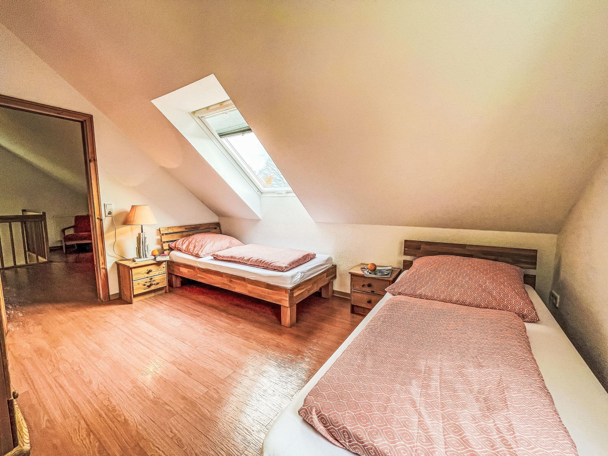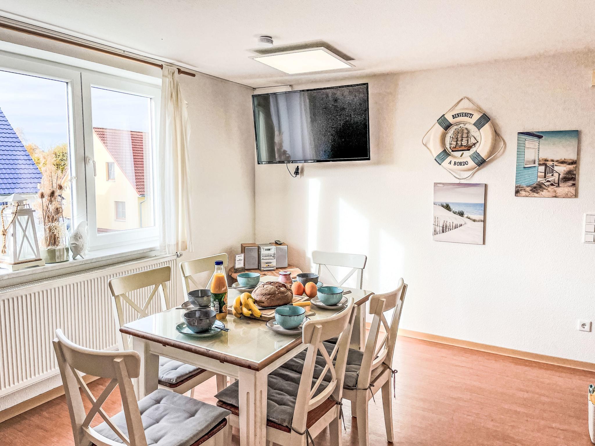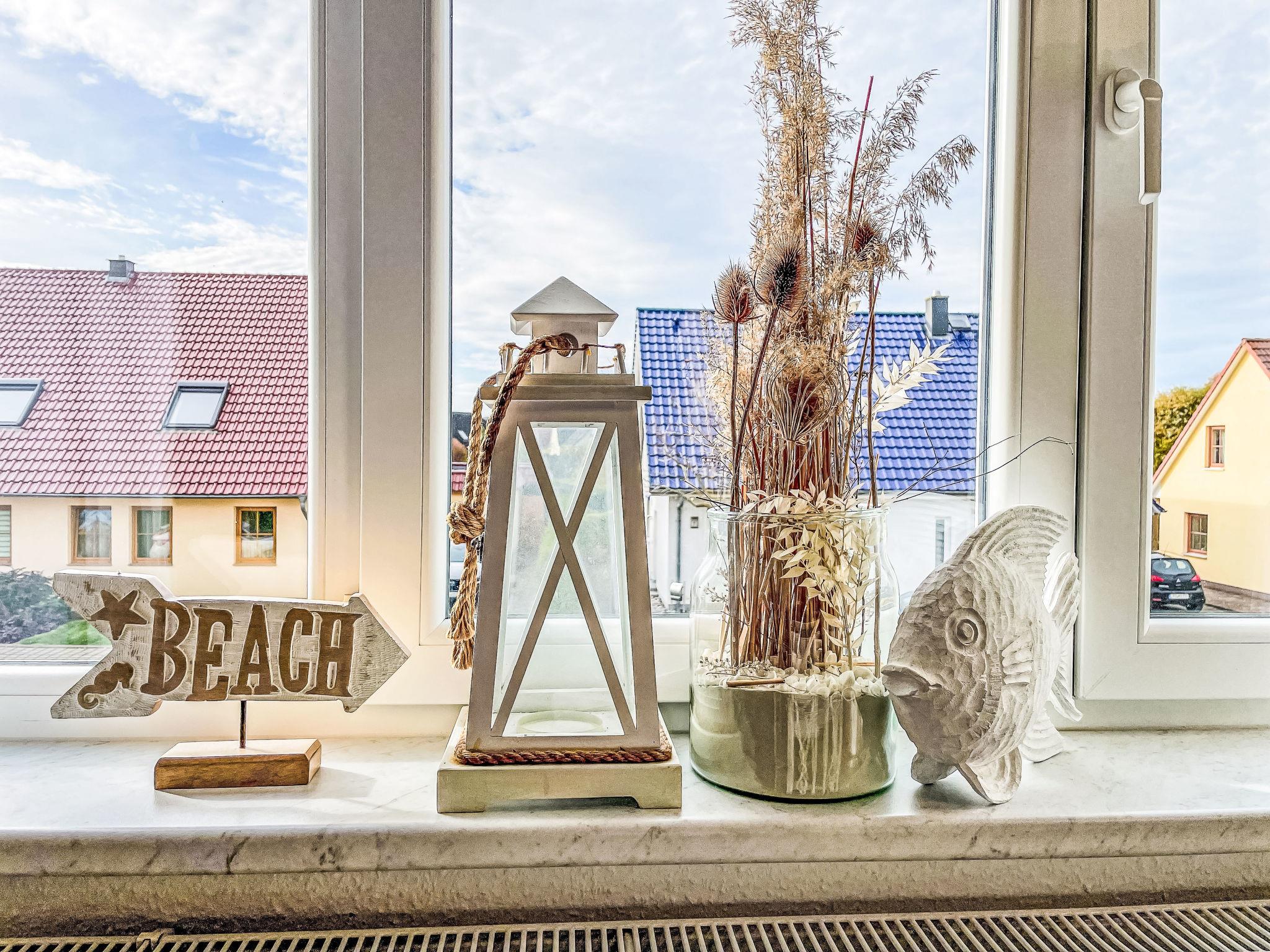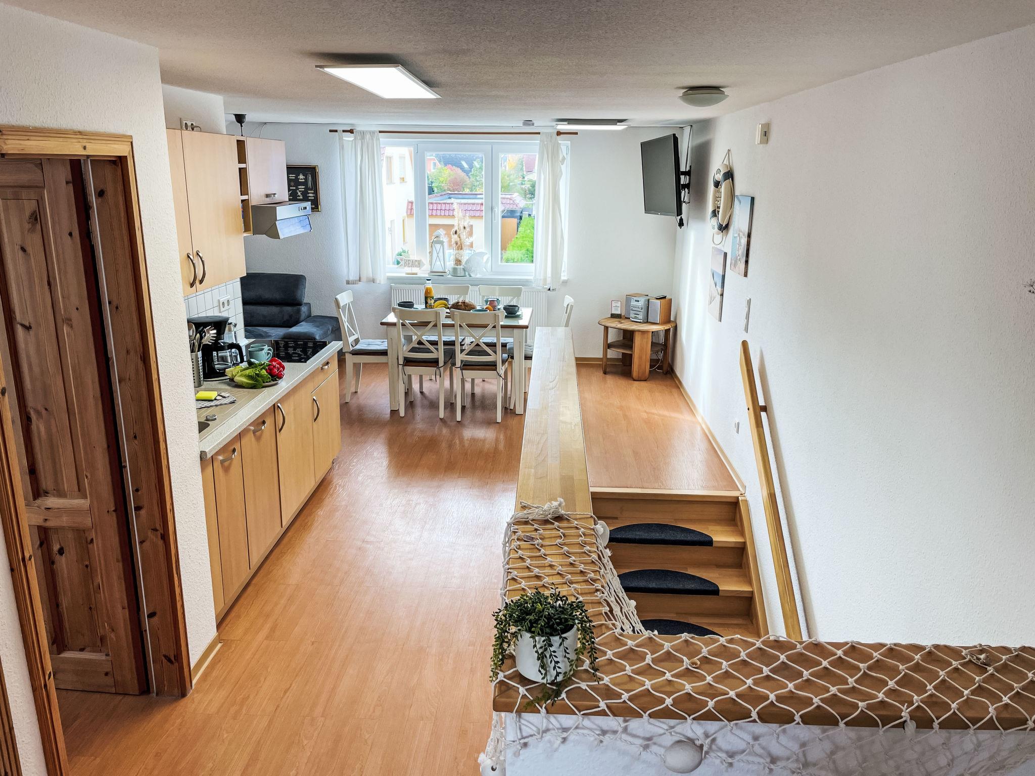 "Möwenblick", 3-room apartment 69 m2 on 2 levels. Bright, partly with sloping ceilings, beautiful and cosy furnishings: upper floor: living/dining room with dining nook and satellite TV (flat screen), radio. 1 room with 1 double bed (180 cm, length 200 cm). Open kitchen (dishwasher, 4 ceramic glass hob hotplates, toaster, kettle, electric coffee machine). Shower/WC. Top floor: open walk-through room with 1 double sofabed (140 cm, length 200 cm). 1 room with 1 double bed (180 cm, length 200 cm). Gas heating. Patio. Terrace furniture. Facilities: Internet (WiFi, free). Parking (1 car) at the house. Please note: non-smokers only. Smoke alarm.