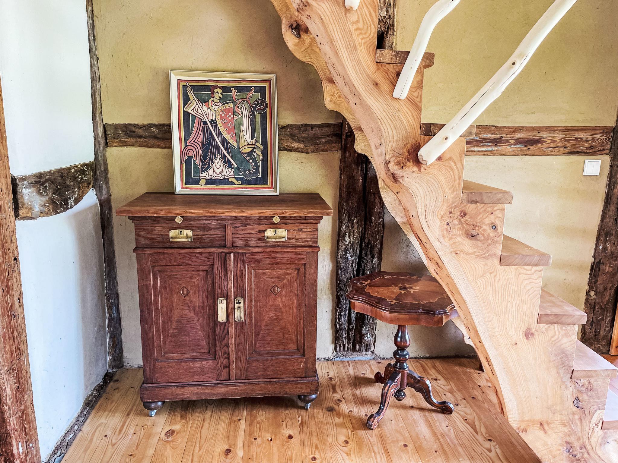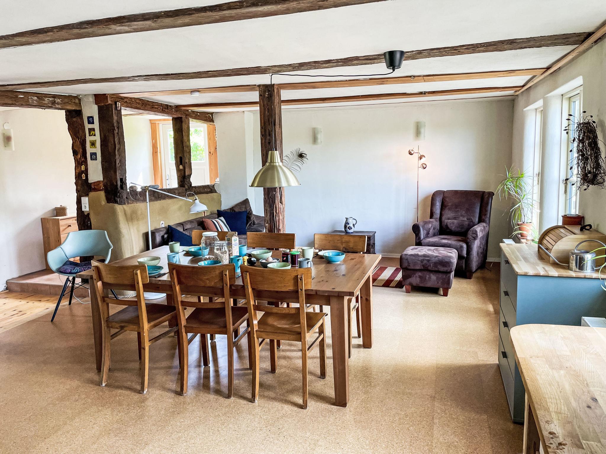 Alt Karin: Rustic, comfortable cottage "Eschengrund", 3 storeys, built in 1900, renovated in 2024, surrounded by trees, meadows and fields. Below Alt Karin, on the outskirts, 200 m from the centre of Alt Karin, in a quiet, sunny position on a slope, 200 m from the edge of the forest, 12 km from the sea, 1 km from the lake, 12 km from the beach, in the countryside. For shared use: natural state property 5'000 m2 with lawn and plants, beautiful garden to relax. Fireplace (sandbox). In the house: central heating system. Stepped path (3 steps) to the house. Parking at the house. Shop 10 km, grocery 50 m, restaurant 6 km, bus stop "Neubukow Bahnhof" 8.3 km, sandy beach 14 km. Children's playground 200 m. Nearby attractions: Fledermauskeller Alt Karin 300 m, Strände Kühlungsborn/Rerik 14 km, Bad Doberaner Münster 16 km, Freizeitbad Wonnemar 30 km, Rostock und Wismar 30 km. Please note: car recommended. Suitable for families. The owner does not accept any youth groups. Since April 2025 there has been fast fiber optic internet in the house.