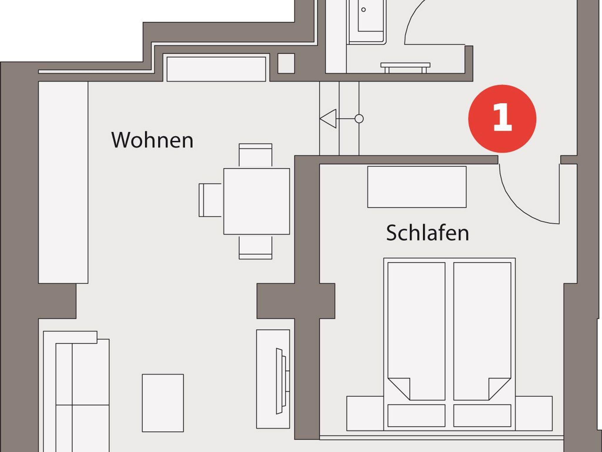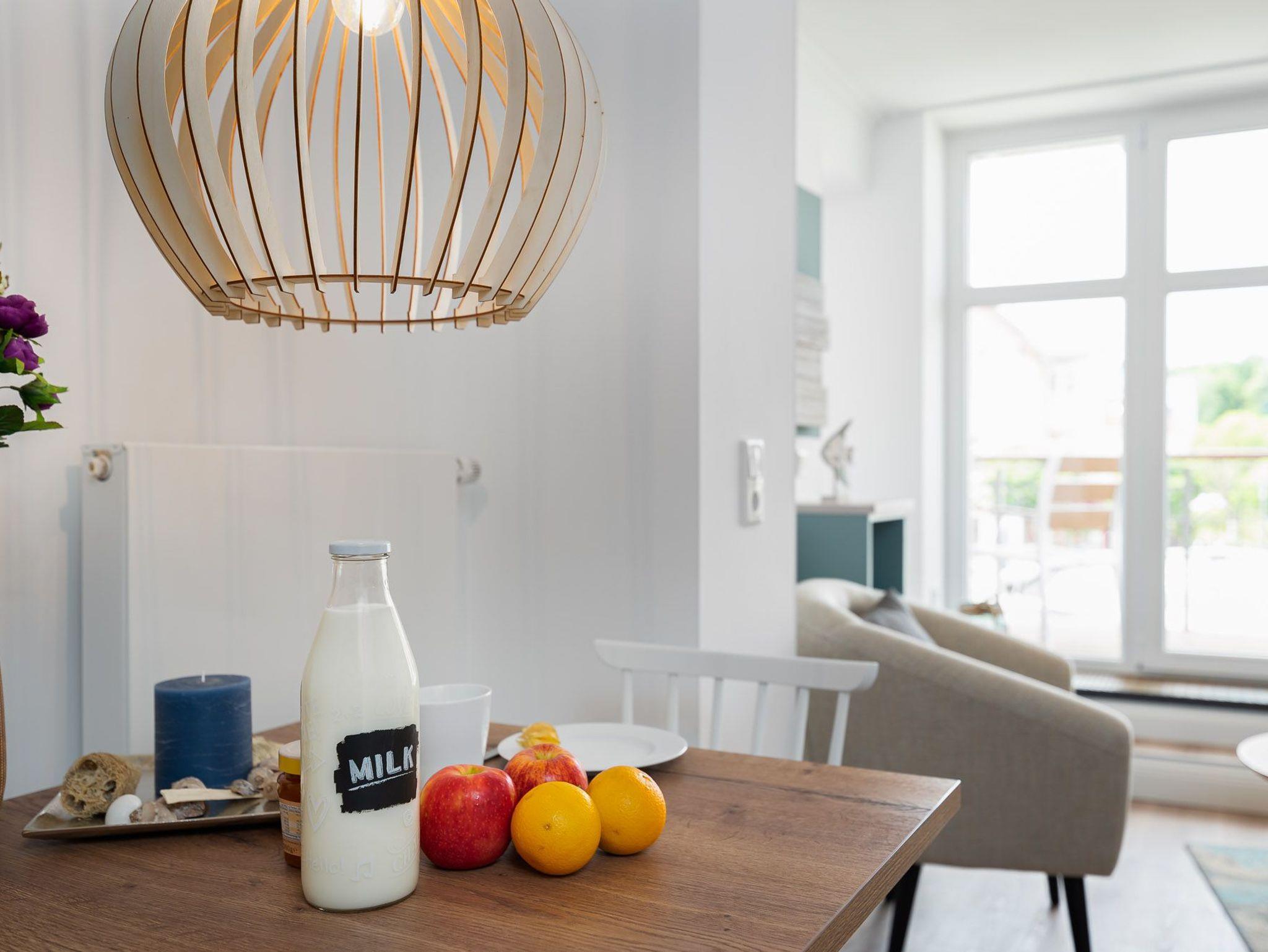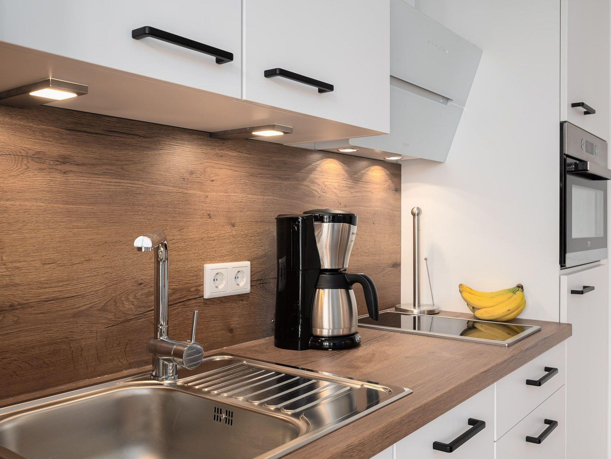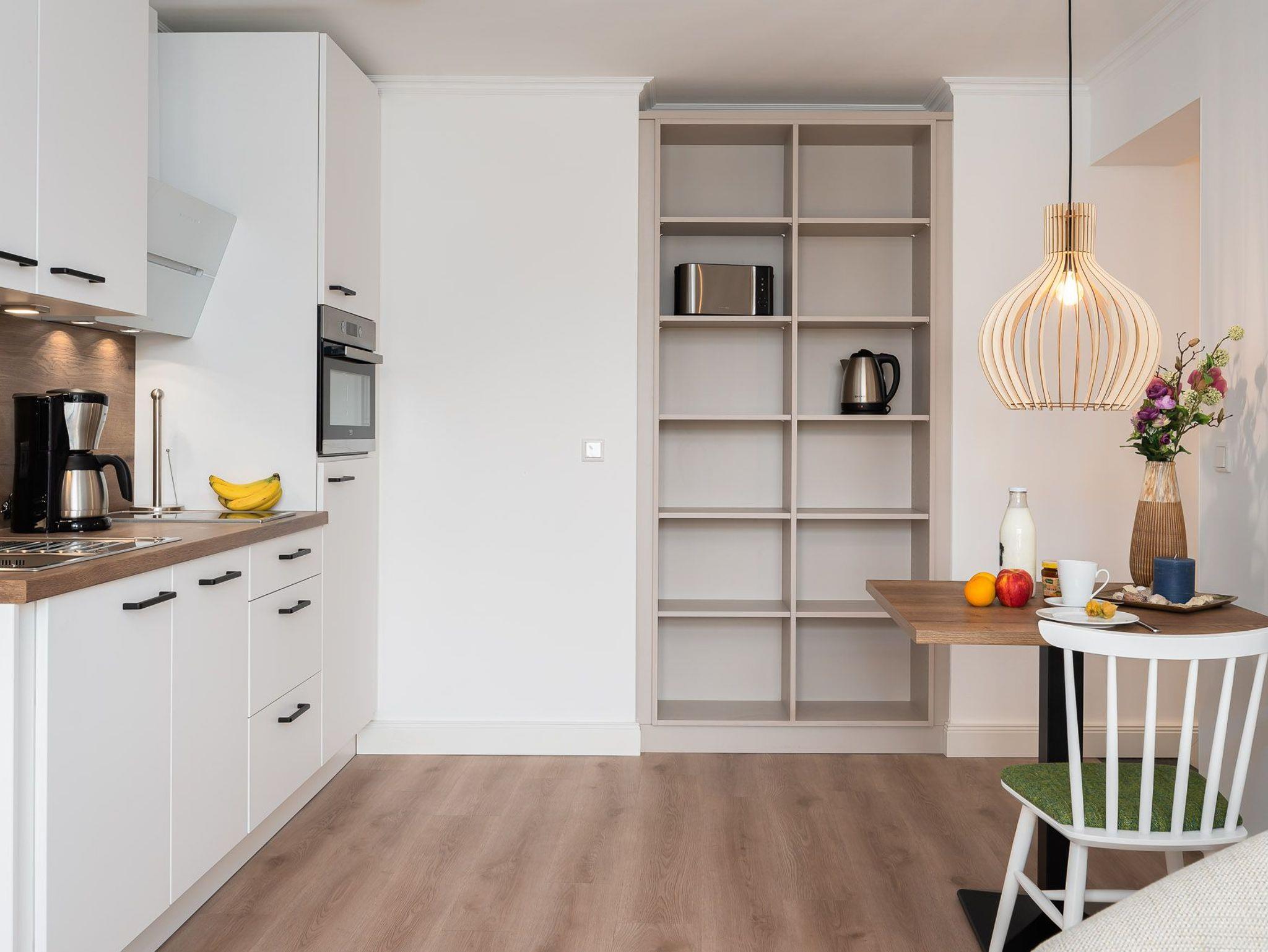 Das Bad verfügt über eine Dusche, einem Haartrockner und einem Handtuchtrockner. Zu Ihrem Apartment gehört ebenfalls ein großer und lichtdurchfluteter Wohn- und Essbereich mit offener Küche.