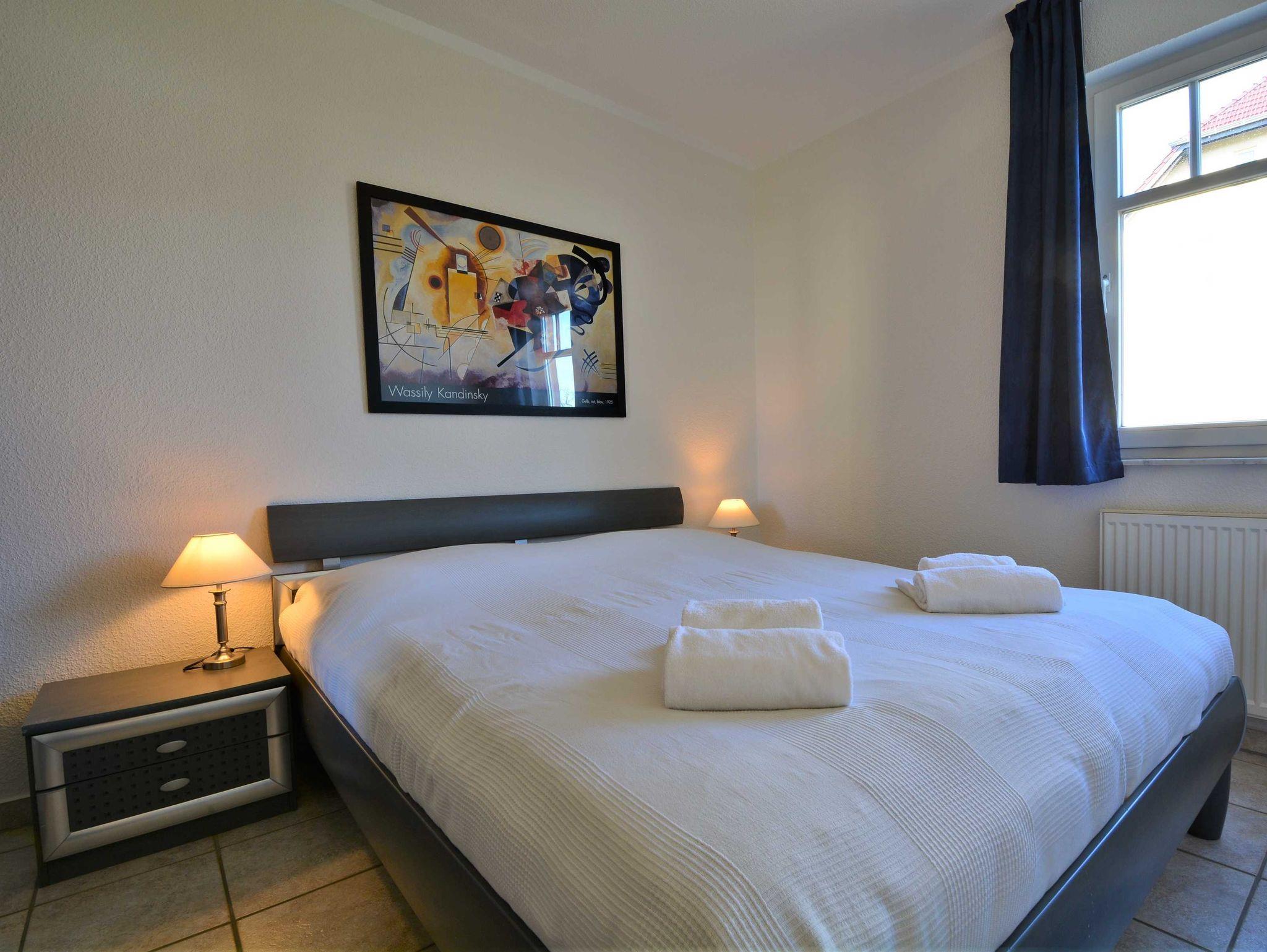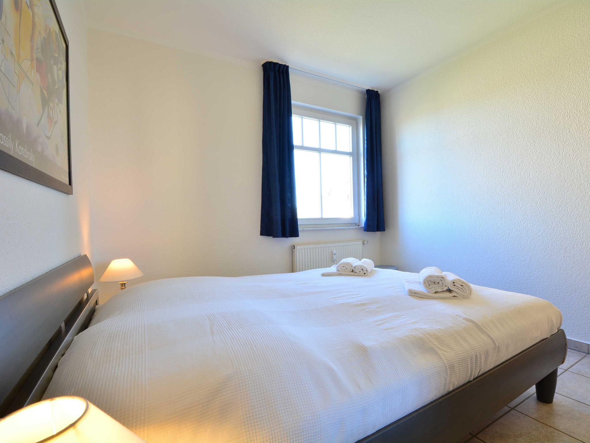 Im ersten Schlafzimmer lädt Sie ein komfortables Doppelbett (2 x 80cm x 200 cm) zur Nachtruhe ein. Der großzügige Kleiderschrank mit Ganzkörperspiegel bietet genügend Platz für Ihre Urlaubsgarderobe. Das zweite Schlafzimmer ist für Sie mit zwei Einzelbetten (jeweils 90cm x 200cm) versehen und bietet ebenfalls einen Zugang zum Balkon. Das Bad mit Dusche und WC vervollständigt das Gesamtbild dieser Wohnung.
