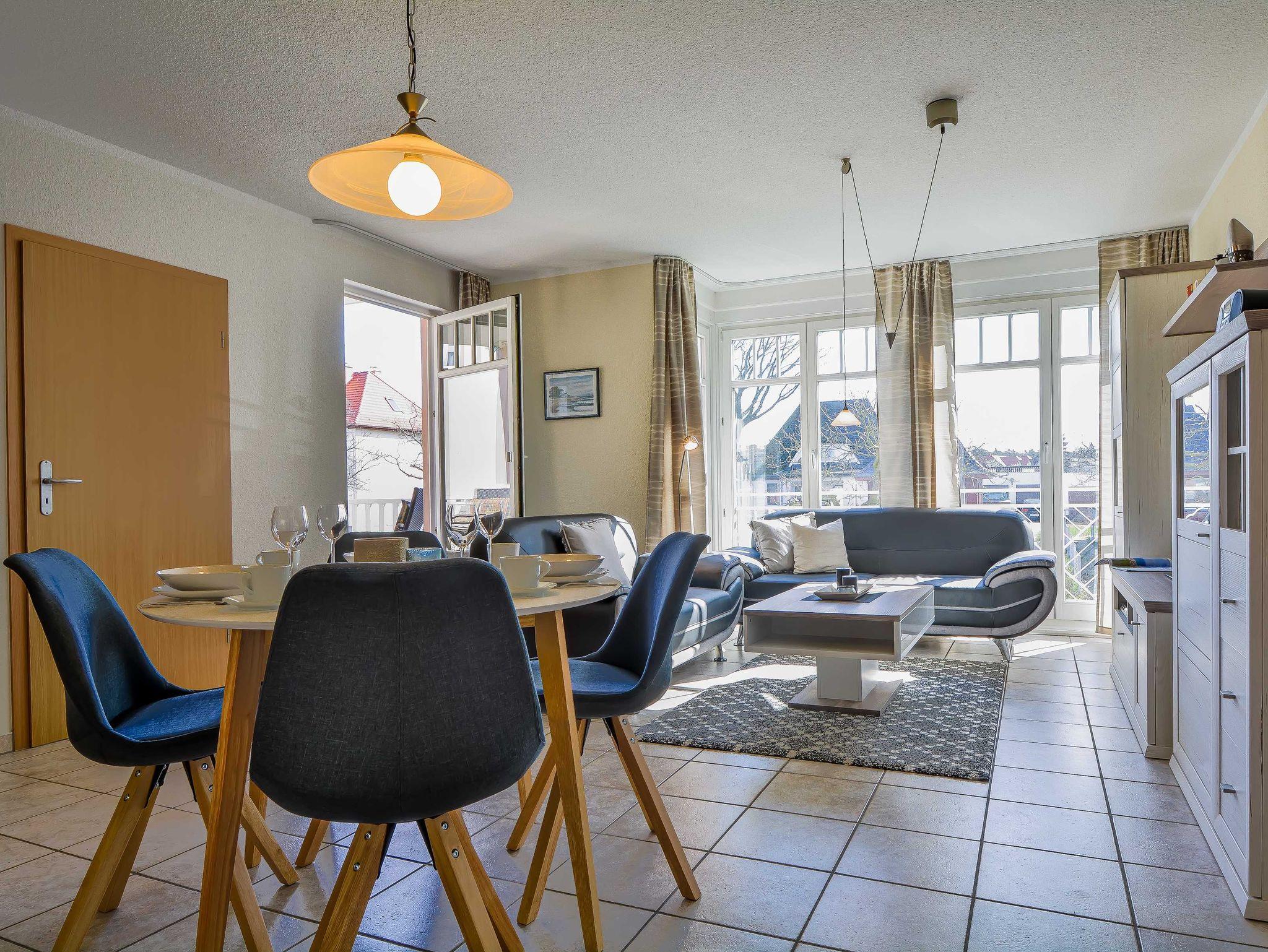 Herzlich willkommen in der Ferienwohnung Nr. 7 im Haus Bernstein! Die liebevoll und modern eingerichtete 3-Raum-Ferienwohnung befindet sich im ersten Obergeschoss des Hauses und verfügt über einen kleinen Balkon in Nord-Ost-Richtung. Mit einer Größe von 53 qm bietet die Wohnung mit einem Wohn- und Essbereich mit Küchenzeile, zwei Schlafzimmern und einem Duschbad viel Platz für einen erholsamen Ostseeurlaub.
