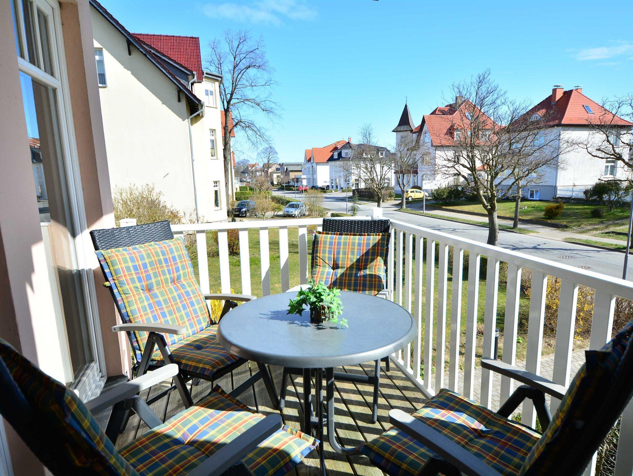 Vom Wohnbereich betreten Sie den möblierten Balkon, der nach Norden und Osten ausgerichtet ist. Hier können Sie Ihr Frühstück in der Morgensonne genießen oder einfach Sonne tanken und relaxen.