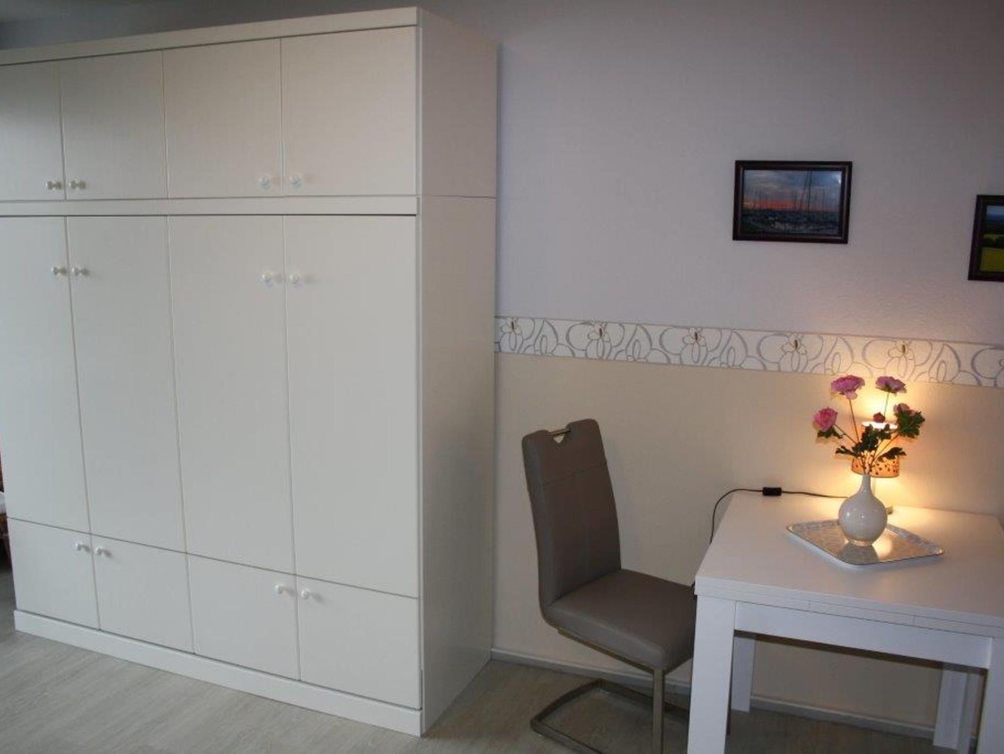 Einrichtung entspricht nicht mehr dem heute üblichen Standard. Schrank, Nachttische, Stühle, Tisch und Beleuchtung gehören auf den Sperrmüll, WLAN und Spülmaschine fehlen!