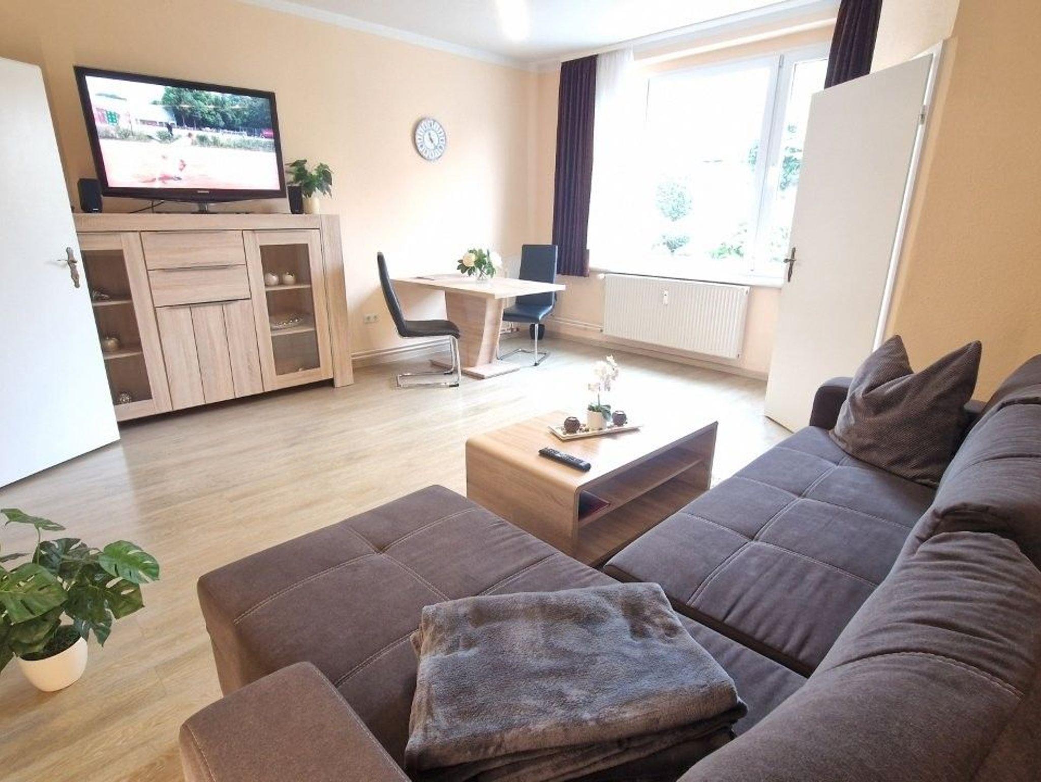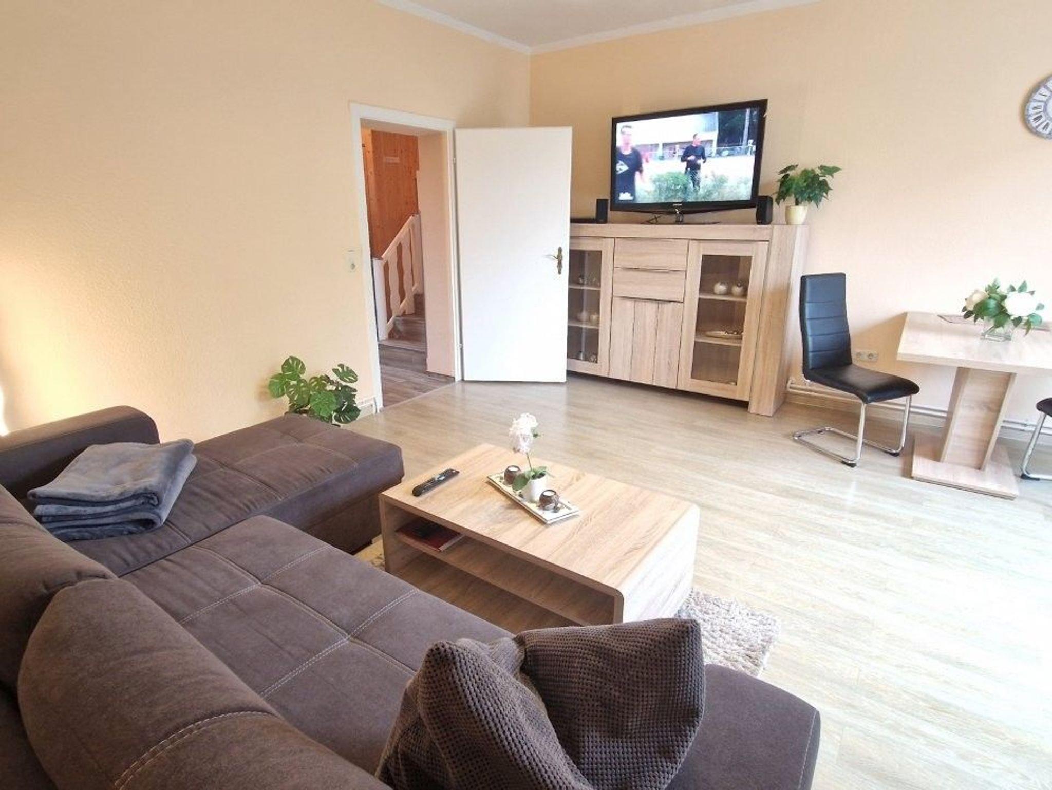 - Wohnbereich mit gemütlicher Couch sowie 43-Zoll-Flachbild-TV und Essecke