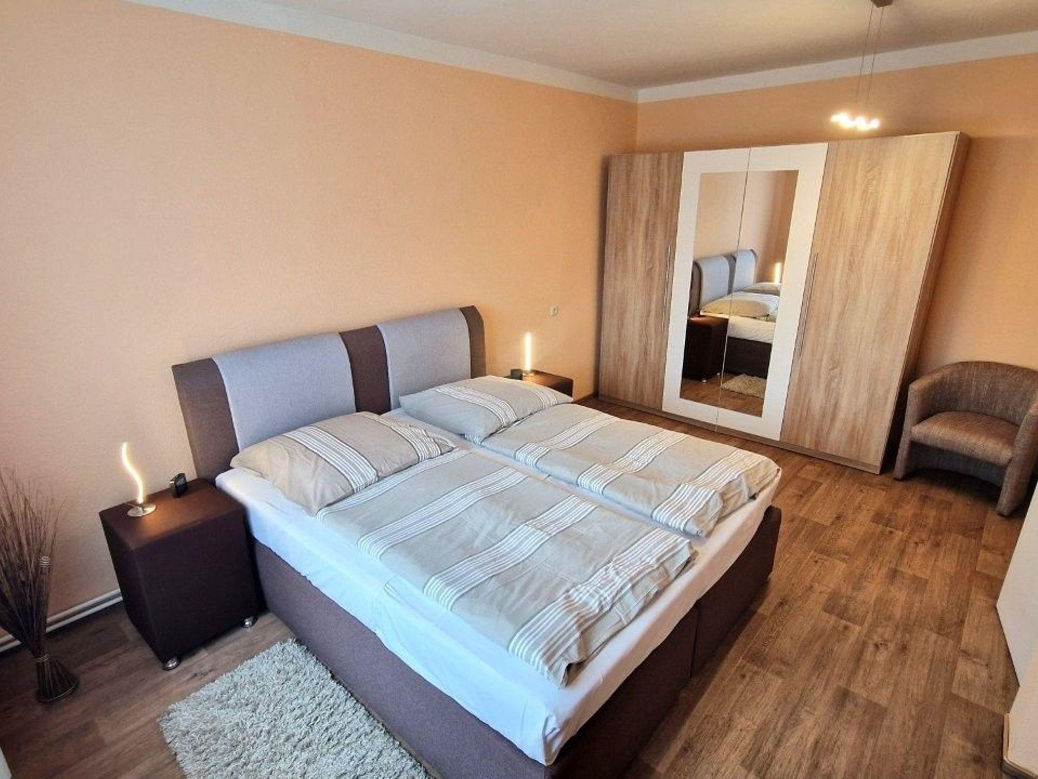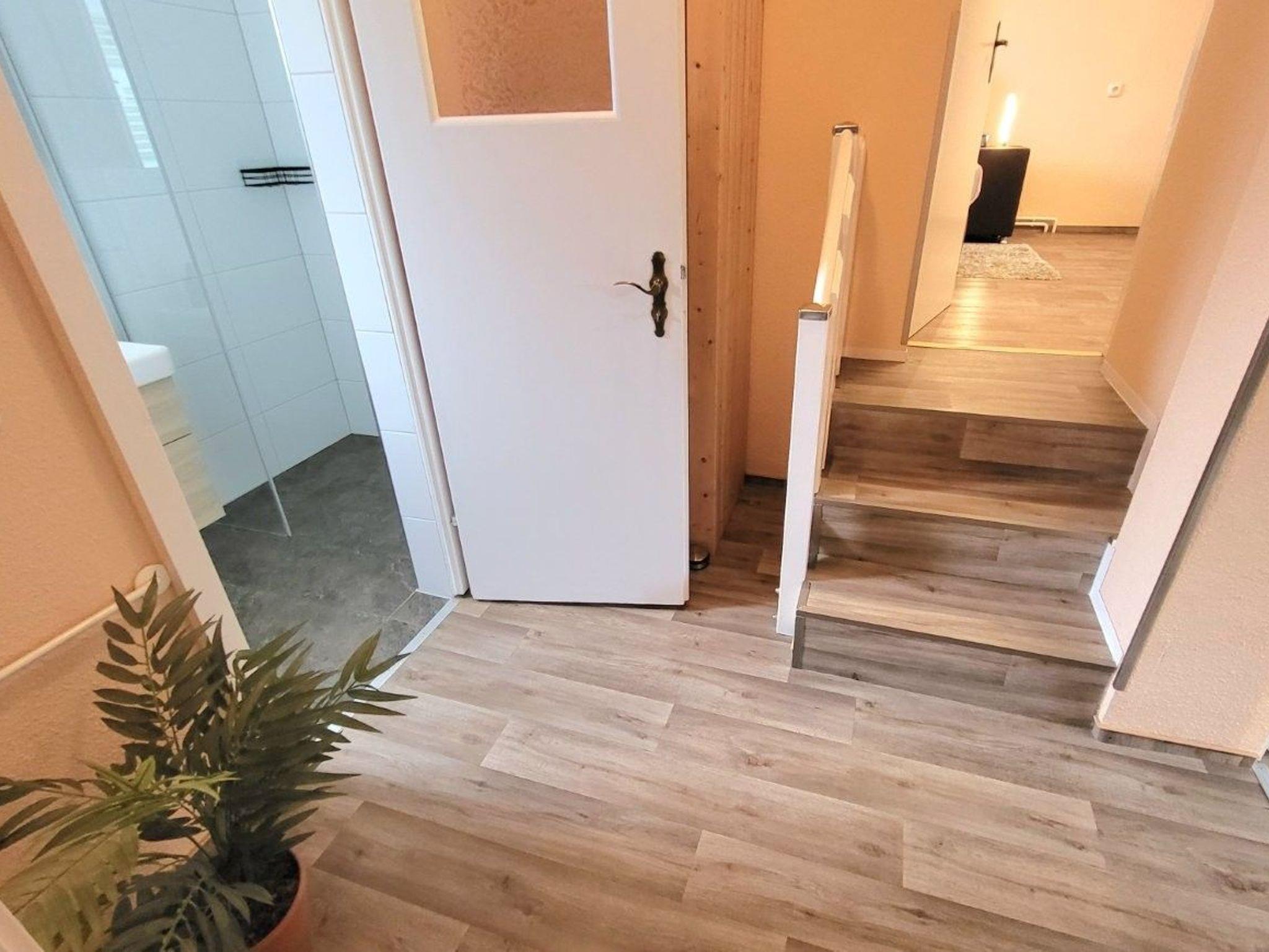 - Schlafzimmer mit Doppelbett (1,80m x 2,00 m) über 3 Stufen zu erreichen