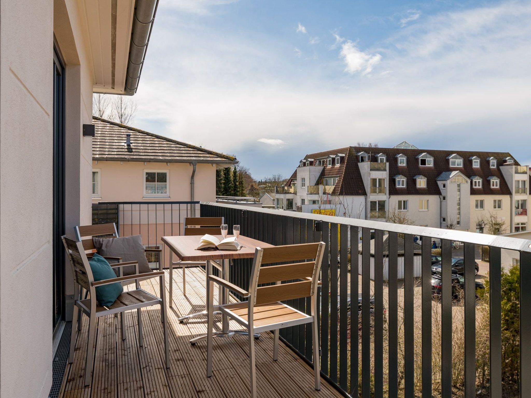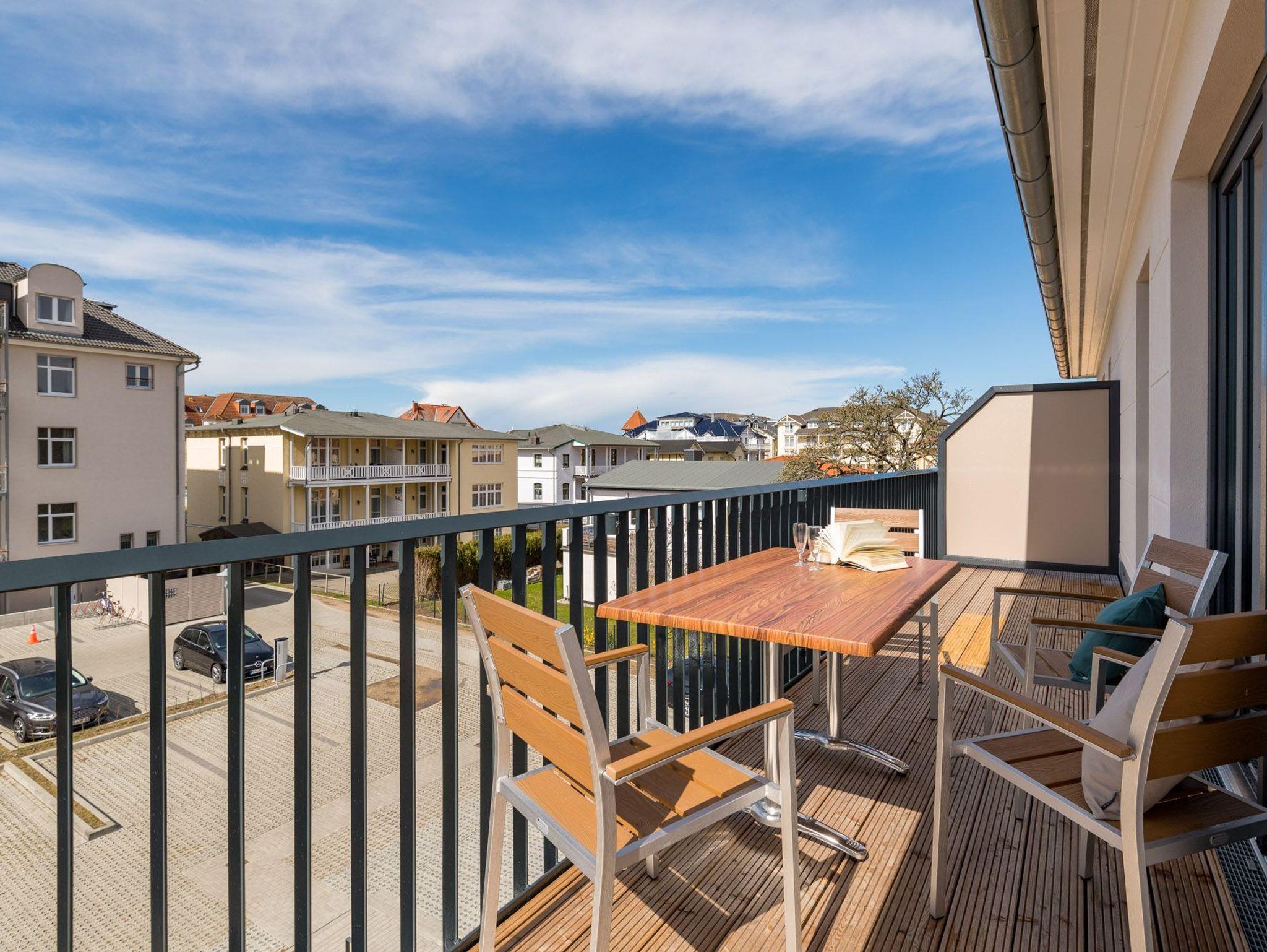 Das Einzimmer-Apartment bietet genügend Platz für 4 Personen. Außerdem verfügt es neben seiner Wohnfläche von ca. 56 qm auch über einen Balkon mit Balkonmöbeln.