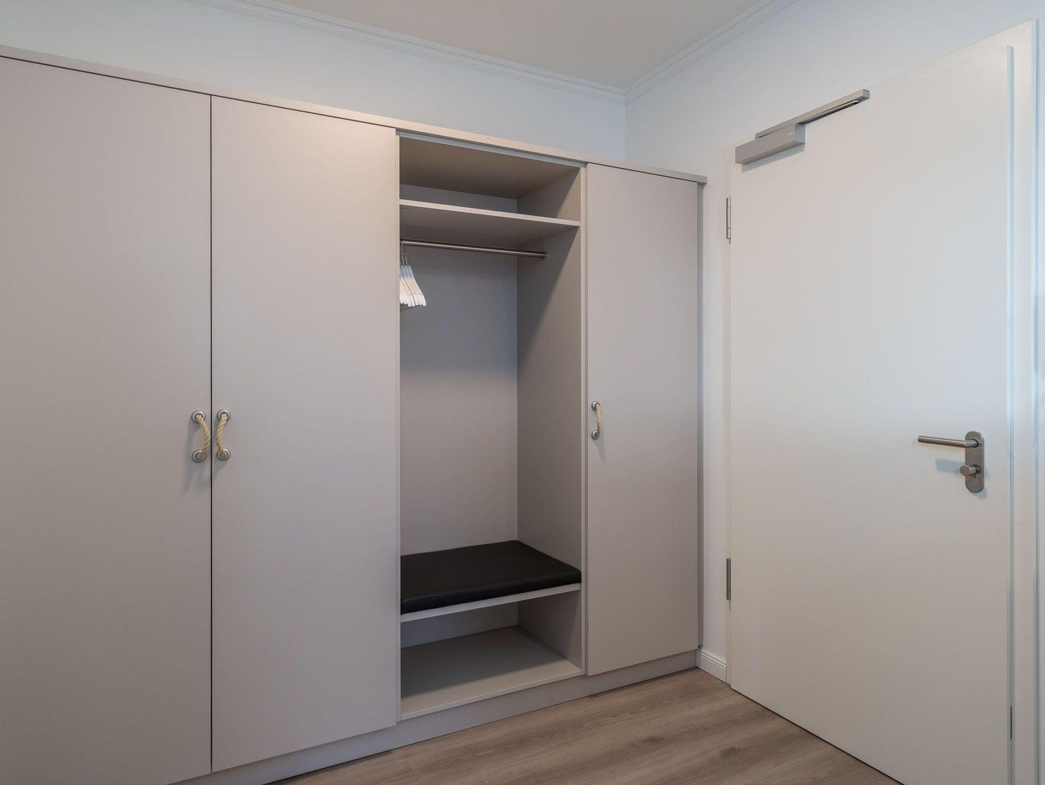 Der Schlafbereich verfügt über ein 1,80 x 2,00 m Bett, sowie über einen Kleiderschrank und ein TV-Gerät. Die zweite Schlafmöglichkeit ist ein bequemes Schlafsofa mit einer Liegefläche von 1,30 x 1,95 m. Für unsere kleinen Gäste können ein Kinderreisebett und ein Kinderhochstuhl bereitgestellt werden (kostenpflichtig zu buchbar).