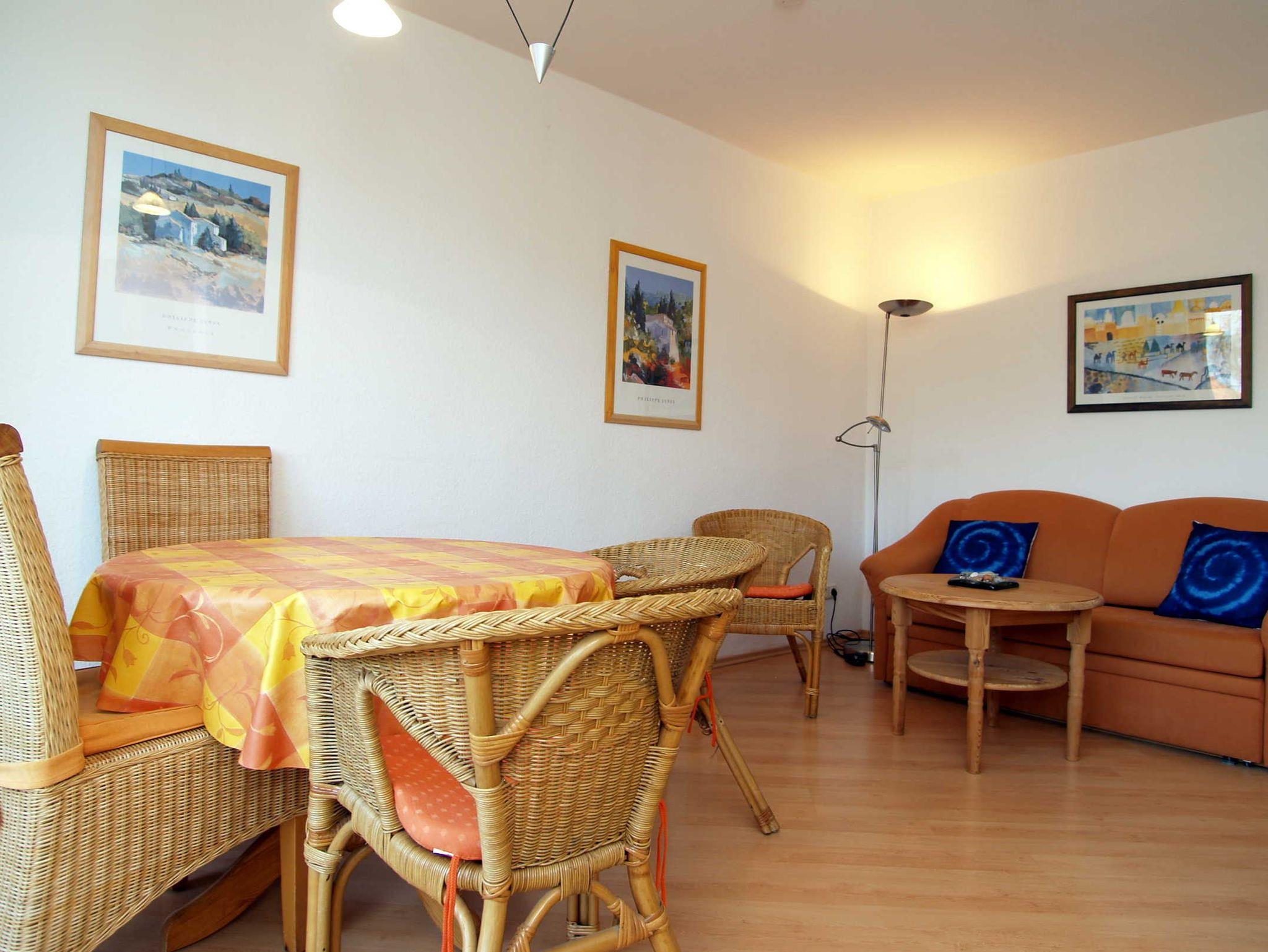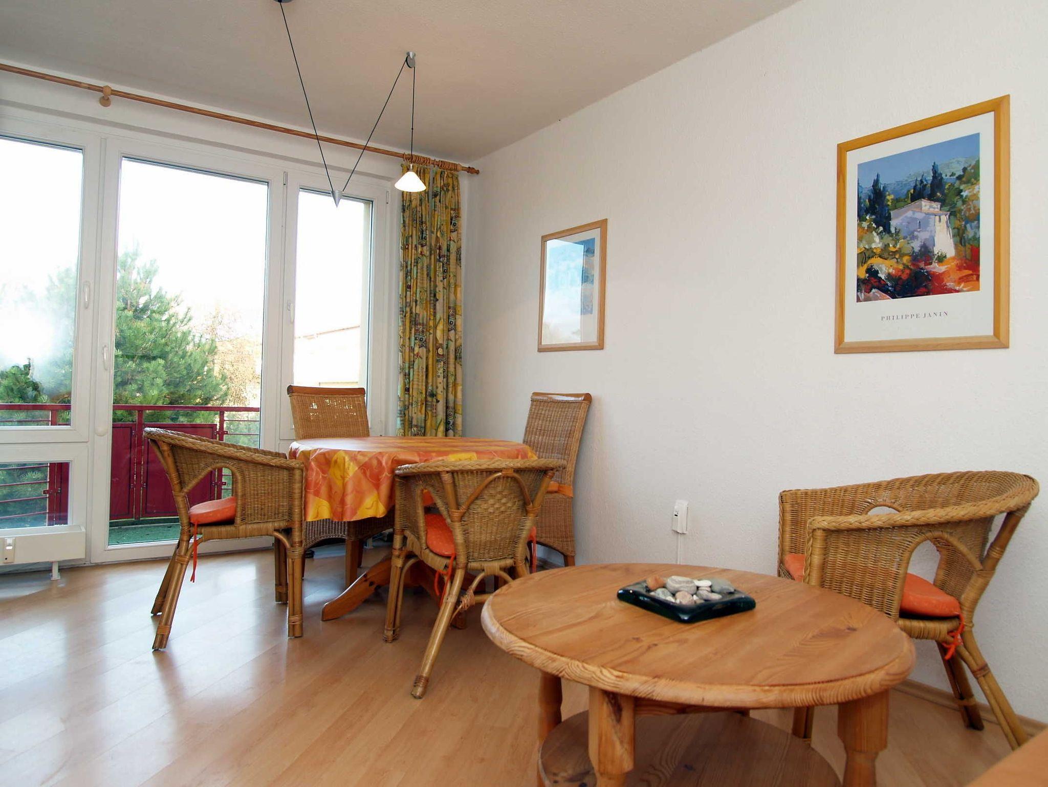 Herzlich willkommen in der Whg. Nr. 13 in der Residenz Dünengarten. Die hell und freundlich eingerichtete 2-Raum-Ferienwohnung befindet sich im 1. Obergeschoss des Hauses. Auf 48 qm Wohnfläche können hier 2 bis 4 Personen erholsame Urlaubstage genießen. Es empfangen Sie ein heller offener Wohn-und Essbereich mit einer Küchenzeile, ein Schlafzimmer, ein Duschbad sowie ein Balkon mit Ausrichtung nach Norden (Seeseite).