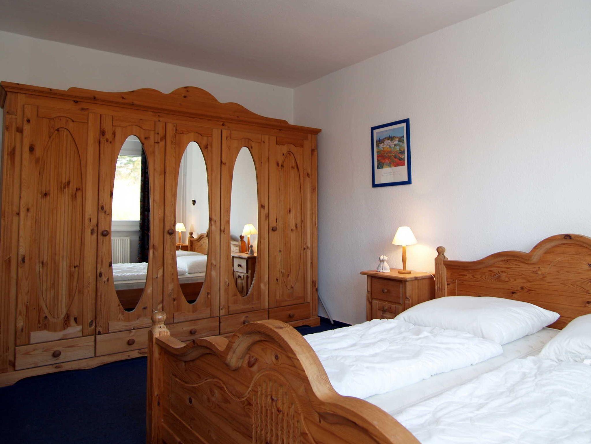 Im Schlafzimmer lädt Sie ein komfortables Doppelbett (2 x 90cm x 200cm) zur Nachtruhe ein. Der großzügige Kleiderschrank mit Ganzkörperspiegel bietet genügend Platz für Ihre Urlaubsgarderobe. Als Sichtschutz bzw. zum Verdunkeln sind im Schlafzimmer und im Vorhänge angebracht.