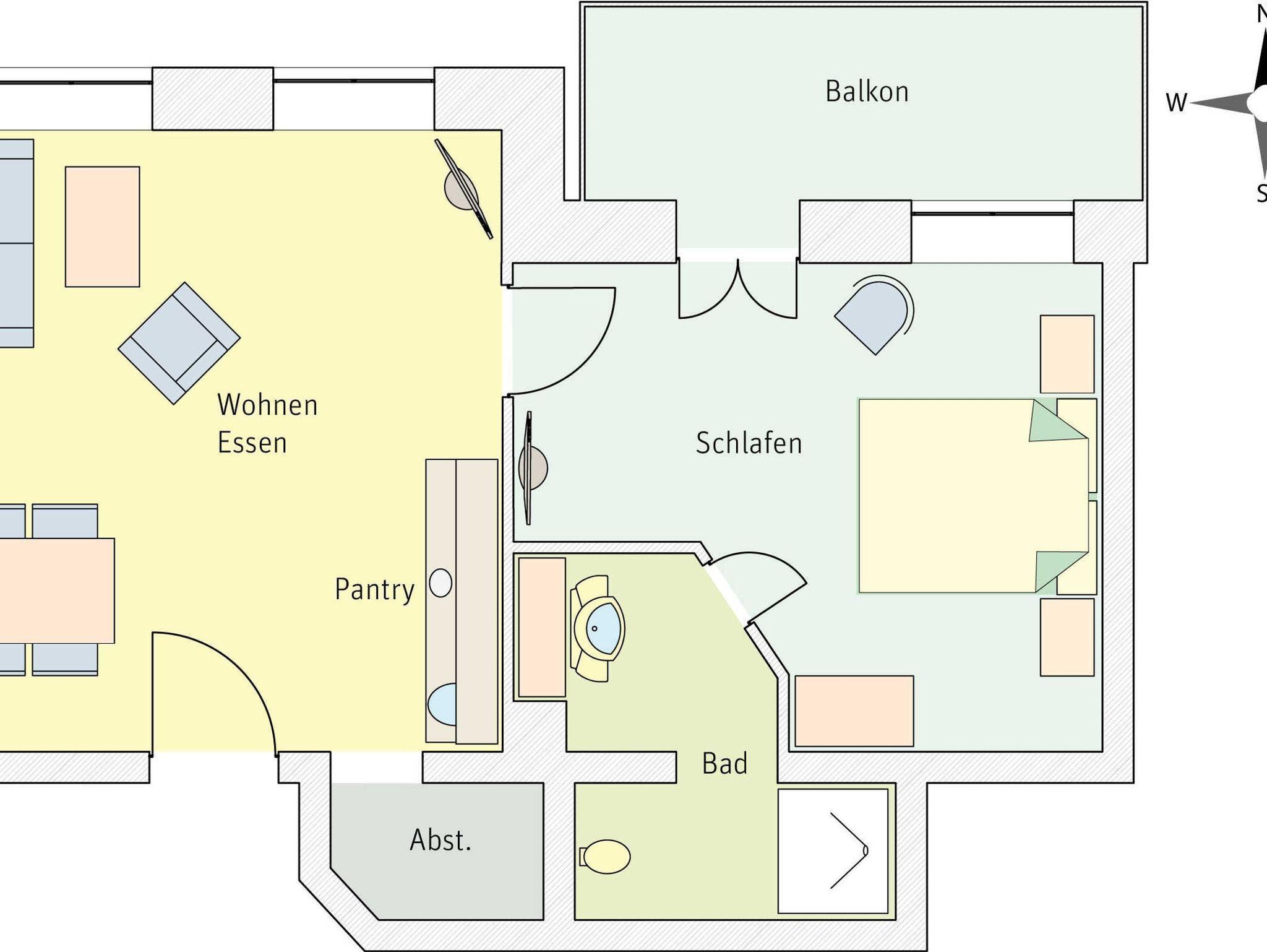 Das Appartement ist modern und geschmackvoll eingerichtet und