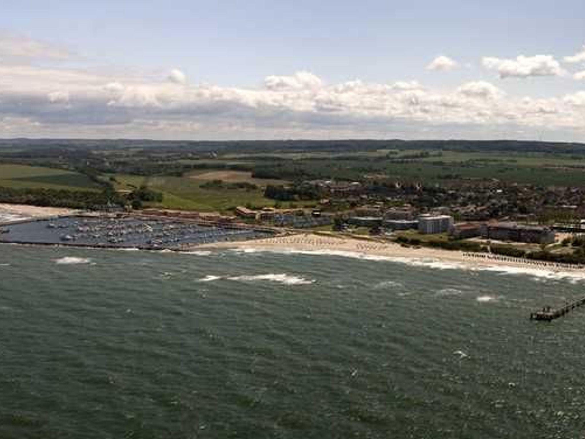 Von der Terrasse aus gelangen Sie in wenigen Schritten zum Hafen ? oder quer über die Promenade direkt zum feinsandigen Badestrand, der hier 100 m breit ist. Ideal für Familien und Großeltern!