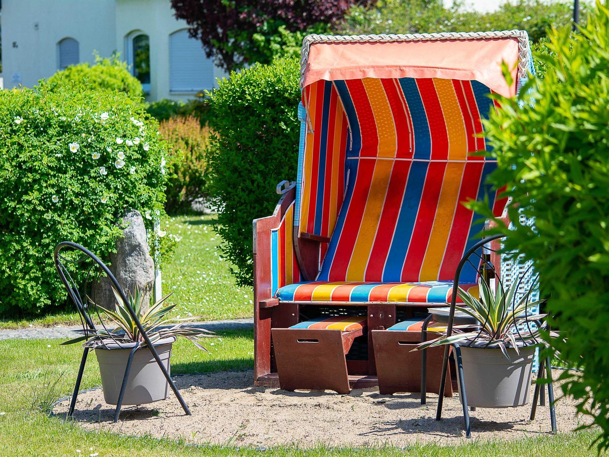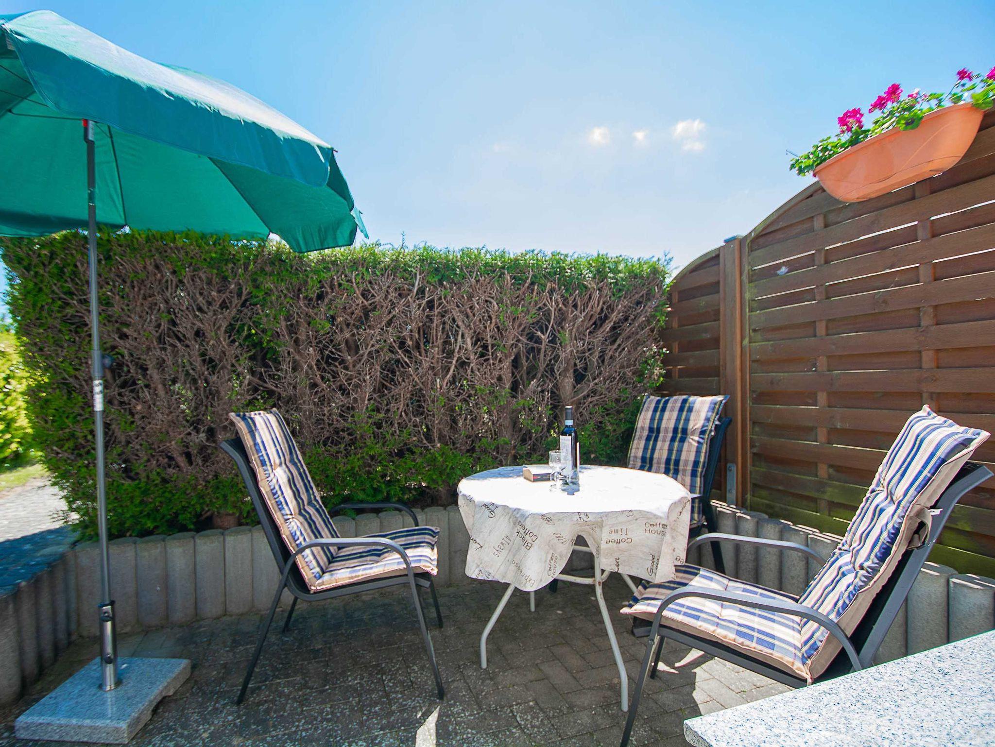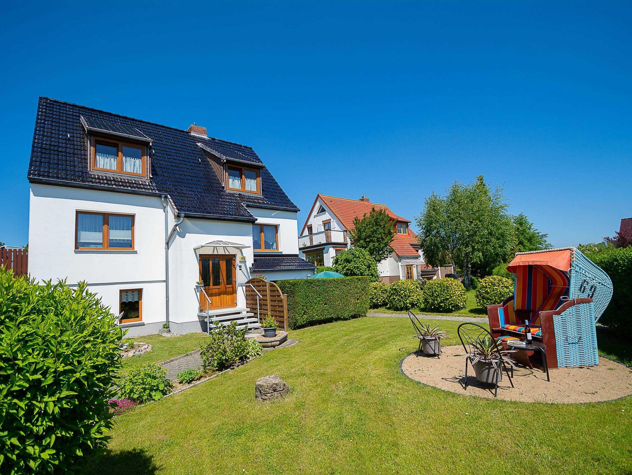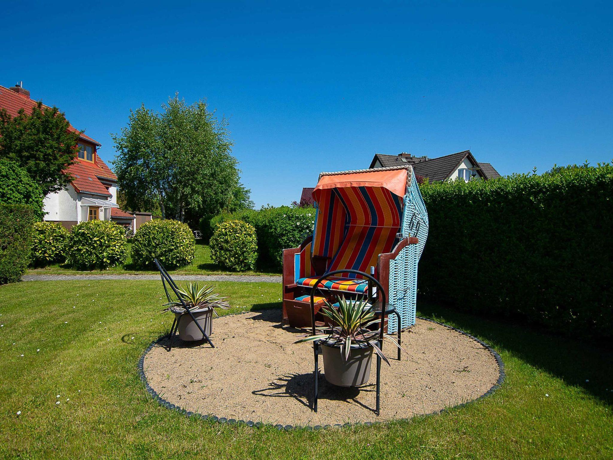 Sie wohnen in einer 52 m² großen 2-Raum-Ferienwohnung, die sich im Parterre eines Wohnhauses befindet. Die 48qm große Wohnung ist über einen separaten Eingang zu erreichen und verfügt über einen geräumigen Wohnbereich mit Couchgarnitur, Flachbild-TV, Radio und Essplatz. Der Schlafraum ist ausgestattet mit einem Doppelbett und Kleiderschrank sowie einem zusätzlichem Beistellbett für die 3. Person. Eine separate Küchenzeile als Pantry und ein Sanitärbereich mit Dusche gehören zur Ausstattung. Die gemütliche und geschützte Terrasse auf der Ostseite lädt bei Morgensonne zum Frühstück im Freien und abends zur Entspannung ein. Ebenfalls auf der Ostseite im Vorgarten befindet sich ein weiterer gemütlicher Sitzbereich mit Kühlungsborns beliebtesten Strandmotiv: einem Strandkorb. Hier können Sie windgeschützt entspannte Stunden in der Sonne verbringen.