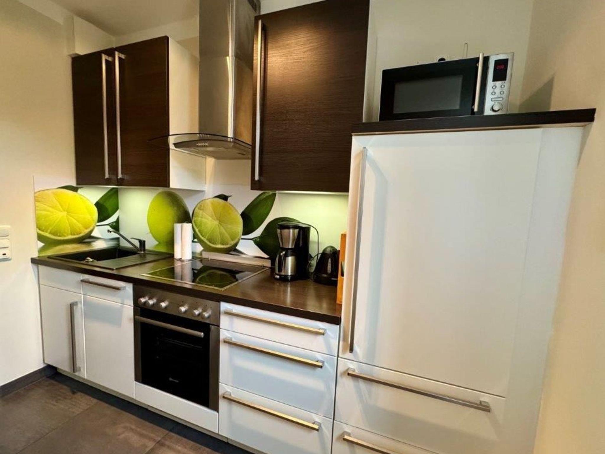 - Küche - Herd mit Backröhre, Mikrowelle, Kühlschrank und Geschirrspüler