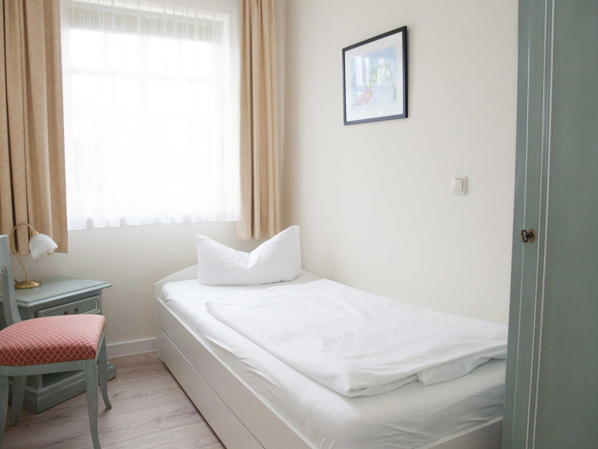 Gästezimmer mit kleinem Kleiderschrank und Bett mit Ausziehfunktion