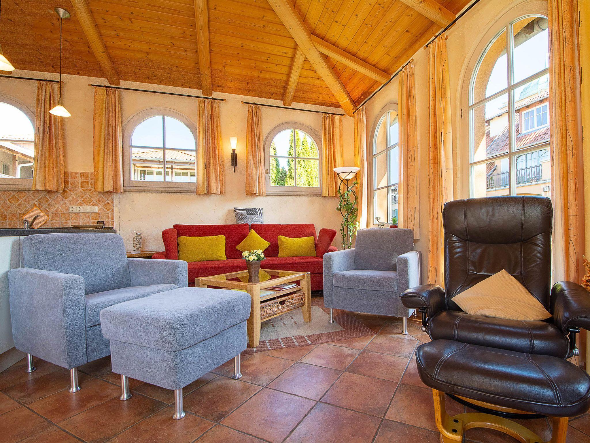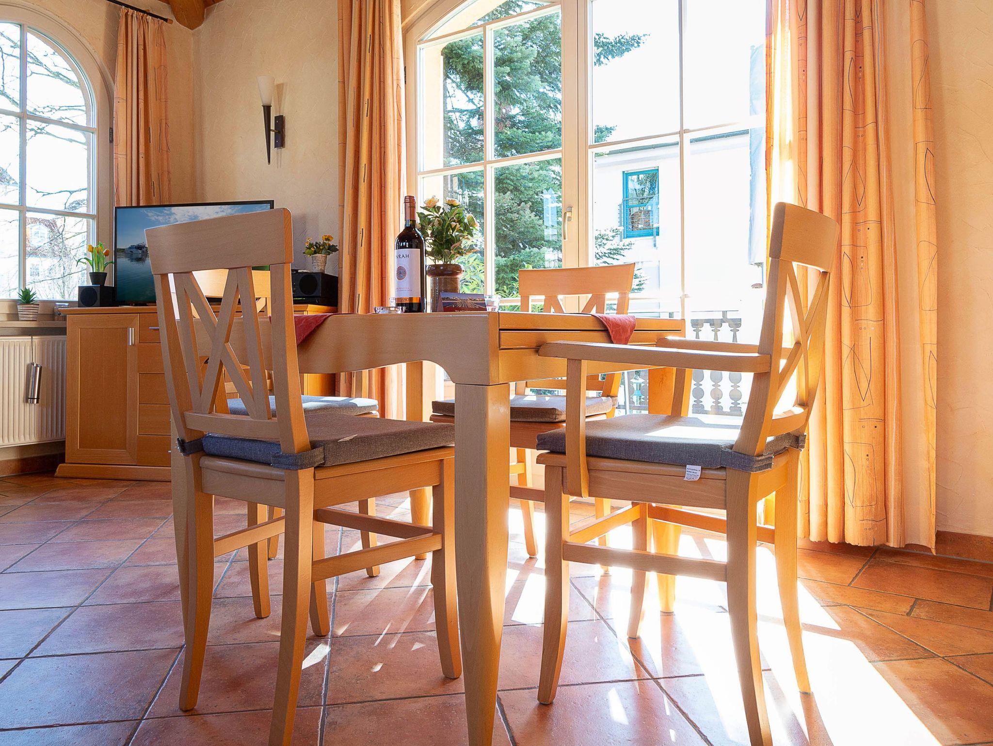Hier kann der perfekte Urlaub starten! Herzlich Willkommen in der Residenz Laguna! Hier, im ersten Obergeschoss befindet sich die Wohnung 39. Sie betreten das Appartement über den großzügigen Südbalkon. Auf etwa 70 qm erstreckt sich die liebevoll eingerichtete 3-Raum-Ferienwohnung, die für bis zu 4 Personen geeignet ist. Der helle offene Wohnraum begrüßt Sie mit zahlreichen Fenstern, die eine Menge Licht und eine tolle Aussicht auf die merditerrane Wasserlandschaft im Innenhof bieten. Ausgestattet ist das Wohnzimmer mit einer gemütlichen Couchgarnitur, einem Esstisch für 4 Personen, ein Flachbild-TV sowie einer Stereoanlage. Es schließt sich die offene Küchenzeile an, die mit allen wichtigen Küchengeräten und -utensilien, die Sie für Ihr perfektes Dinner benötigen, ausgestattet ist (Geschirrspüler, Herd, Mikrowelle, Kaffeemaschine etc.). Vom Wohnraum betreten Sie den möblierten Südbalkon, der zum Sonnenbaden, Relaxen oder zum Dinner einlädt. Die Wohnung ist komplett mit mediterranen Fliesen versehen und verfügt über zwei Schlafzimmer, von denen Sie ebenfalls die Aussicht auf die liebevoll gestaltete Wasserlandschaft im Innenhof genießen können. Das erste Schlafzimmer ist mit einem Doppelbett, Flachbild-TV sowie einem großen Kleiderschrank mit Ganzkörperspiegel ausgestattet. Das zweite Schlafzimmer verfügt über zwei Einzelbetten und einen kleine Kleiderschrank. Das geflieste Tageslichtbad mit Dusche und WC ervollständigt das Gesamtbild dieser Wohnung.