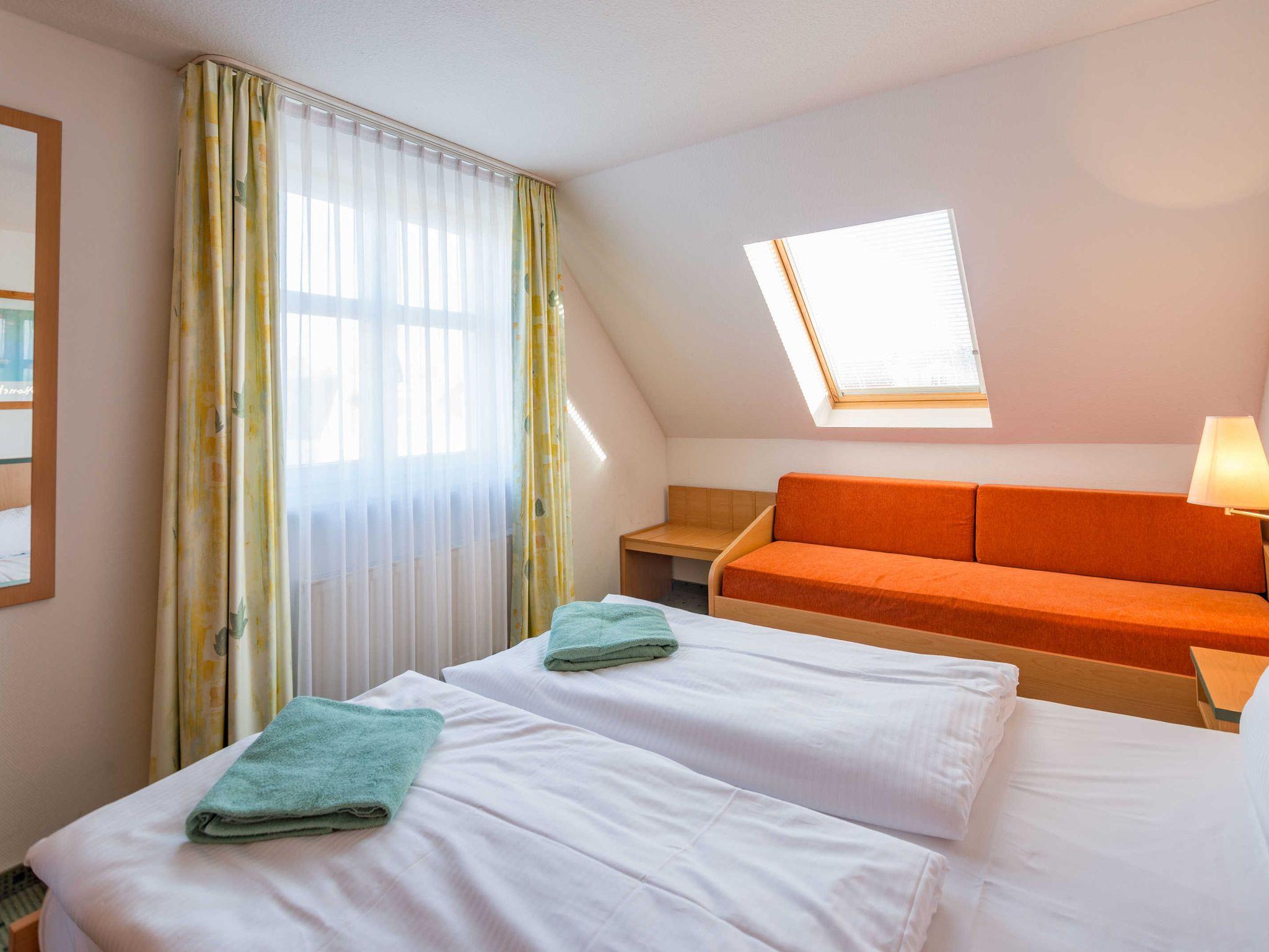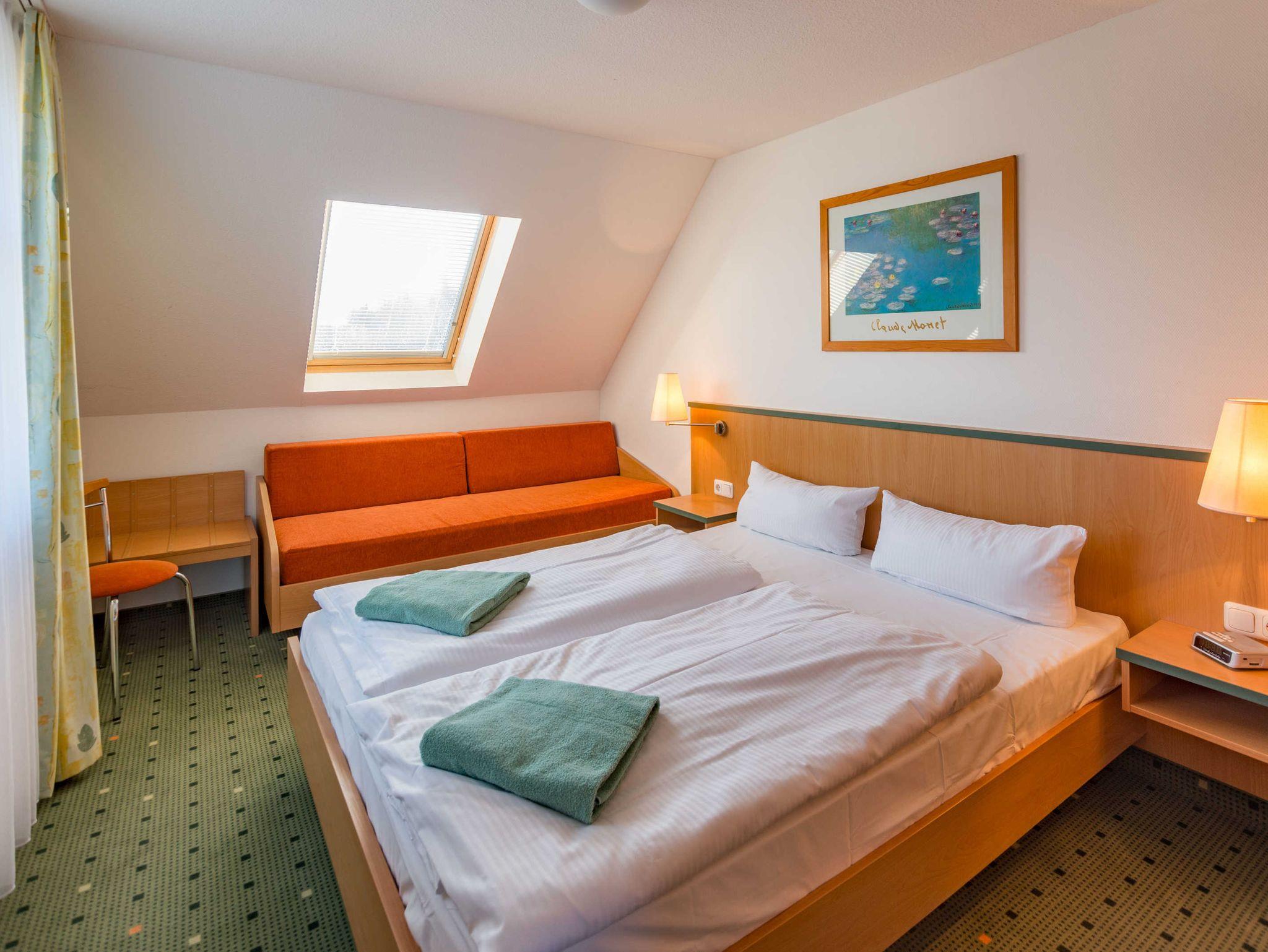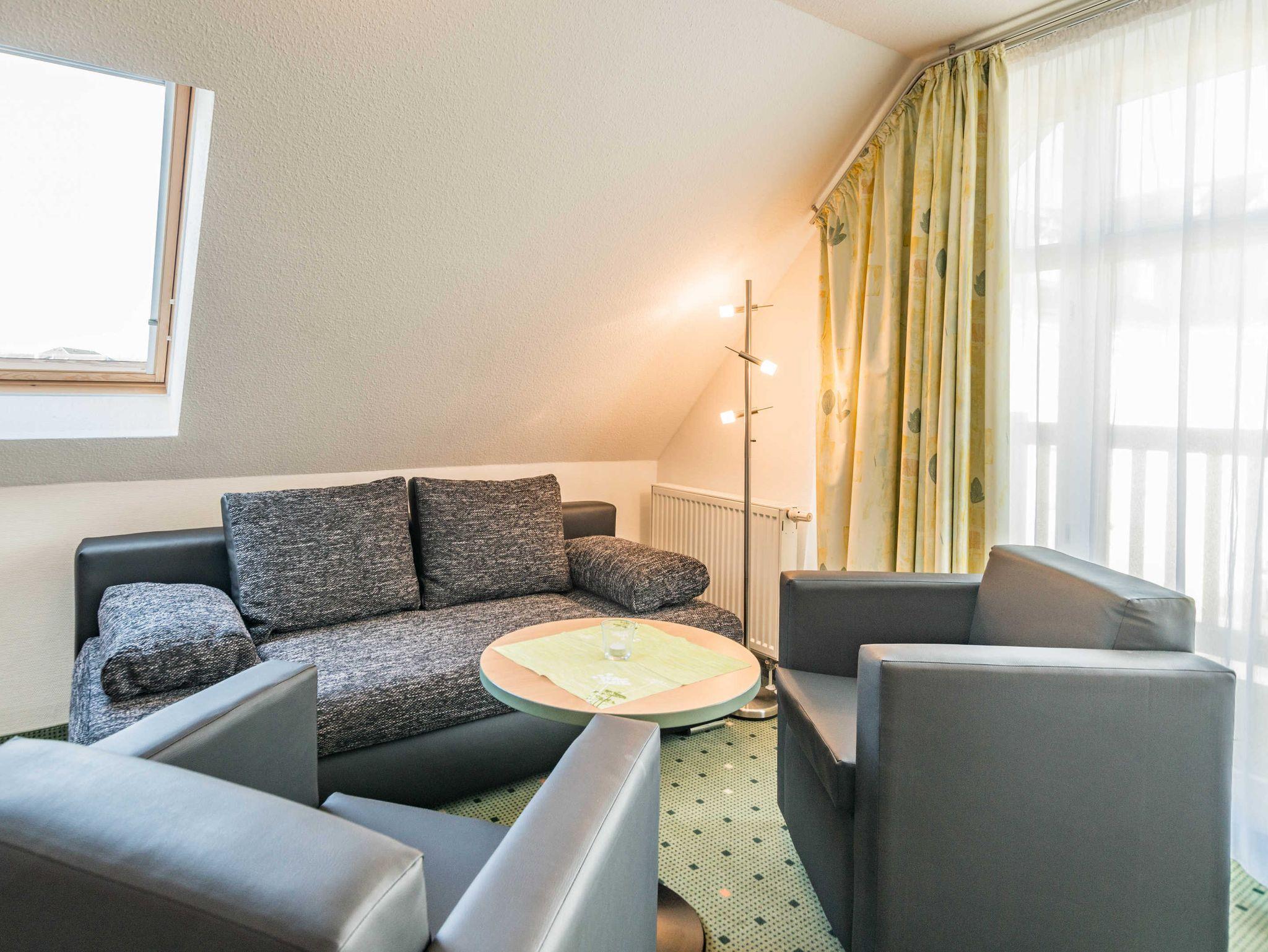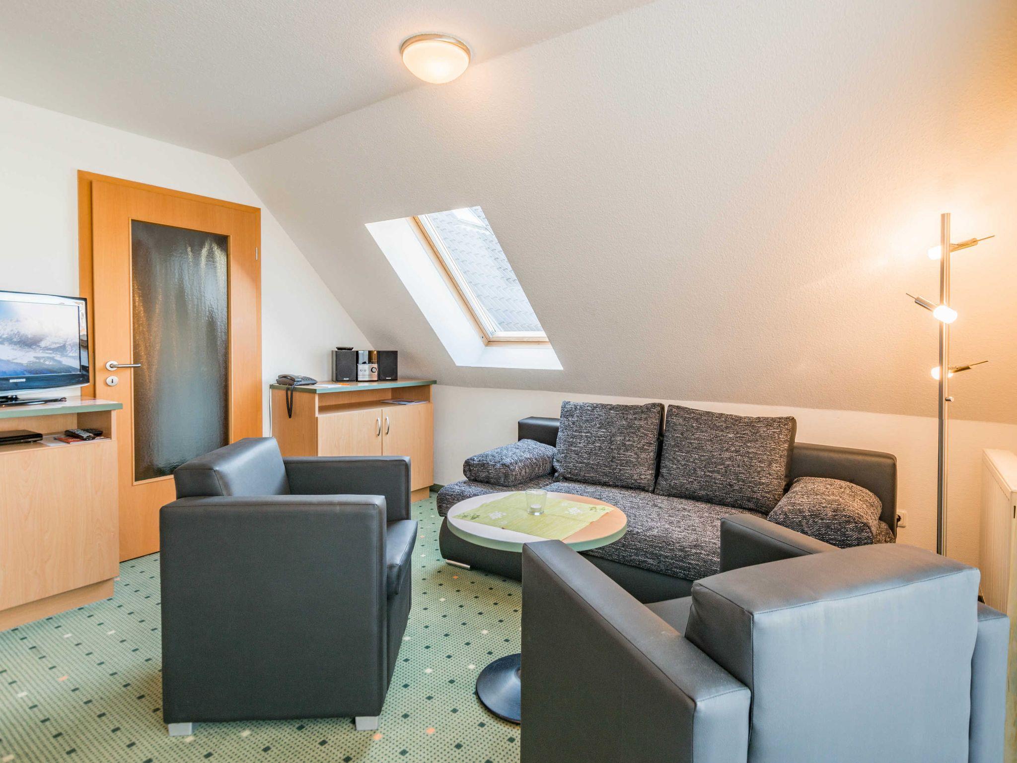 Das 2-Zimmer-Apartment mit Teppichboden befindet sich in der 3.Etage des Apartmenthauses Waldeck. Mit rund 50 m² Wohnfläche und einem Balkon zur Nordseite, besteht das geräumige Apartment aus einem Wohnzimmer mit Schlafcouch und einer voll ausgestatteten Küchenzeile mit Geschirrspülmaschine, Kühlschrank, Mikrowelle, Zwei-Platten-Cerankochfeld, Kaffeemaschine, Wasserkocher und einem Toaster. Das Schlafzimmer verfügt über ein Doppelbett und ein Einzelbett, darüber hinaus bietet es genügend Platz für ein Kinderbett. Im Badezimmer befindet sich eine Badewanne, ein Fön wird Ihnen zur Verfügung gestellt. Das Apartment ist für maximal 3 Erwachsene und insgesamt 4 Personen geeignet.