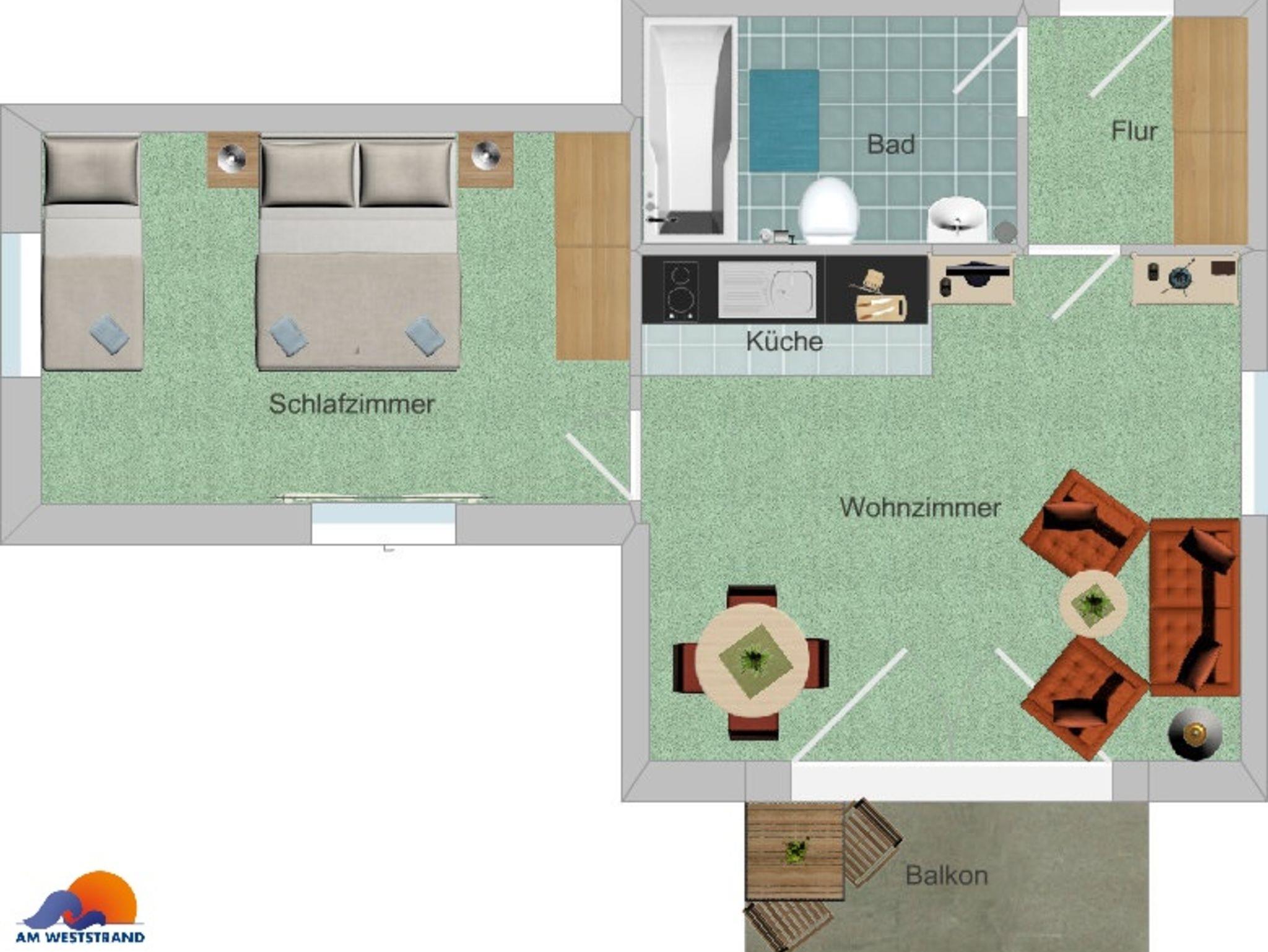 Am Weststrand Apartmenthaus Waldeck, 2-Zimmer-Apartment - B41